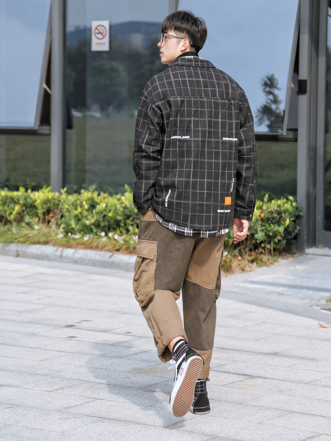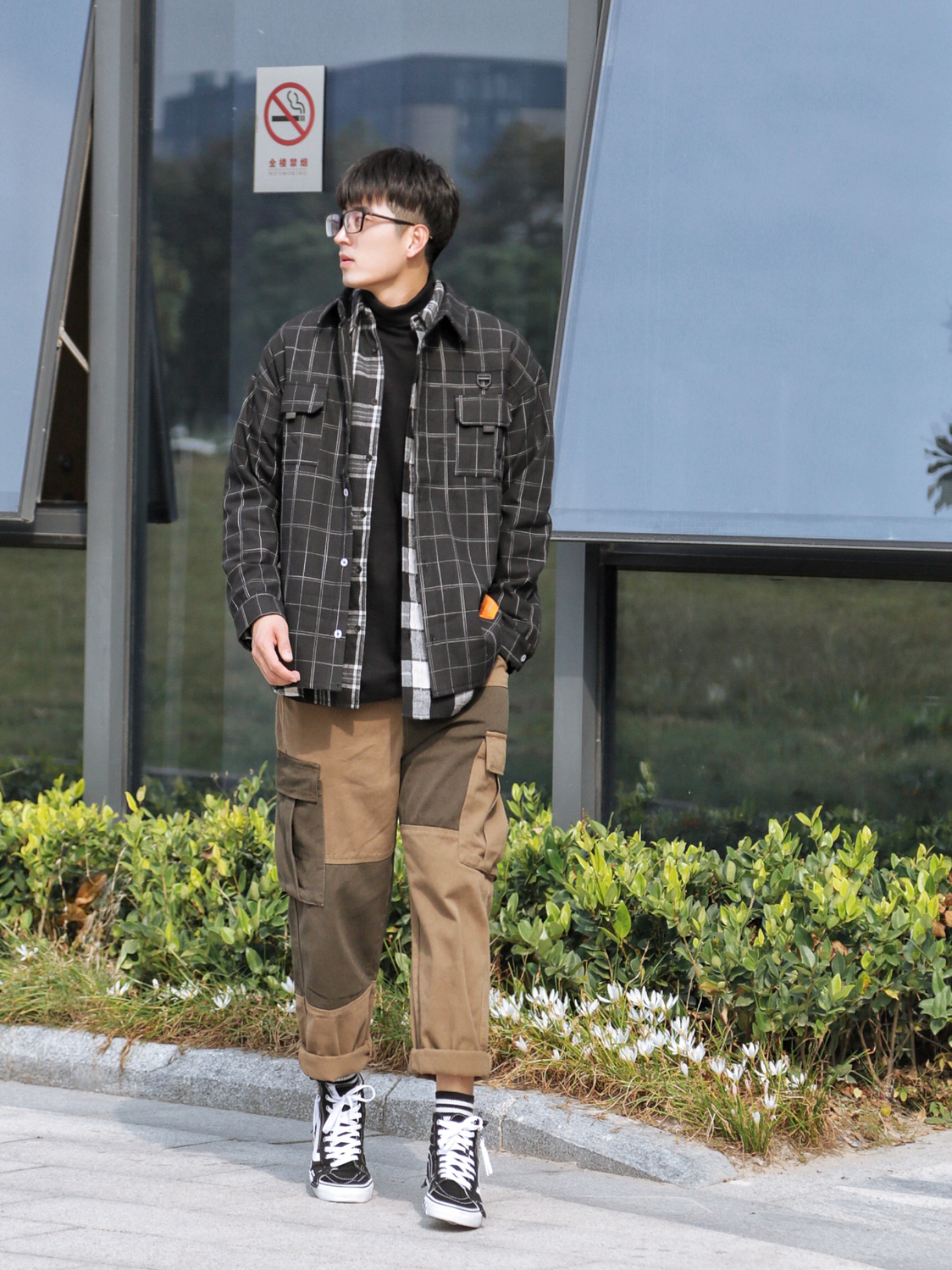 上个月就分享过这双鞋了,今天穿出来,分享一下球鞋穿搭指南。虽然入手一个月了,但今天我还是一直自己盯着鞋子看,找到反光的玻璃或镜子,就看看鞋子,即使从上往下看都好看,哈哈。鞋子真的是自己喜欢就好,这种解构系列的滑板鞋,我真的🖤…… — 今日男生秋季穿搭打卡: ·上衣:黑色工装加绒格子衬衫; ·内搭:黑白大小格子拼接衬衫; ·打底:黑色小高领; ·裤子:深卡其色拼接工装直筒裤; ·袜子:黑色白条纹长袜...