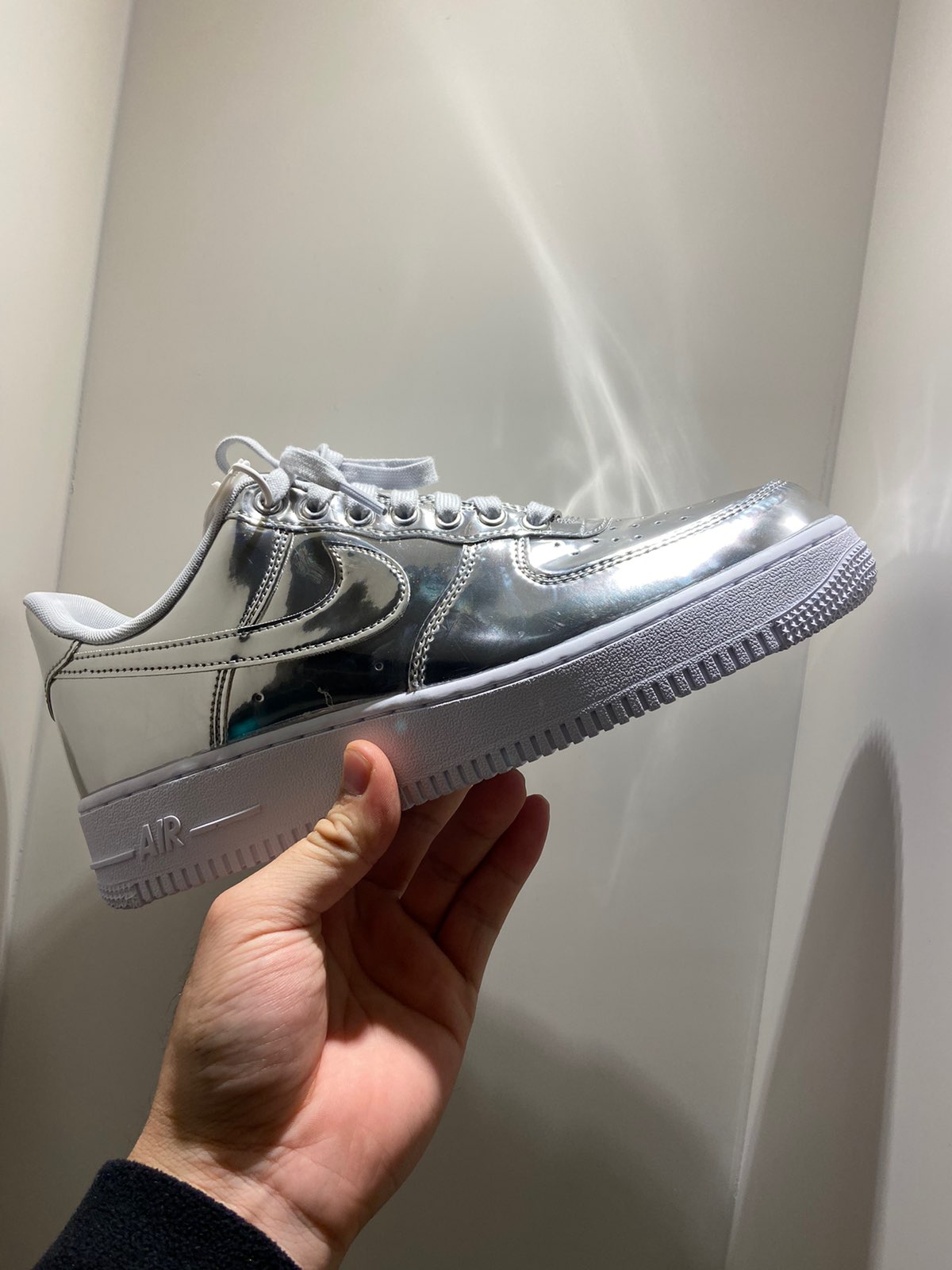 Nike Air Force 1 液态银 开箱 液态银这样高调的配色,在近来球鞋配色的使用确实不多。但是配色不常见不代表不好看,今天我们就开箱一双颜值颇高的液态银配色的球鞋----Nike Air Force 1 液态银。 这次鞋型 以 Air Force 1 SP 为蓝本,基本上没有什么大的改动,白色的鞋底配上液态银鞋身,虽然简单,可是效果也是非常出众。达到类似镜面的效果,让人不禁联想到...