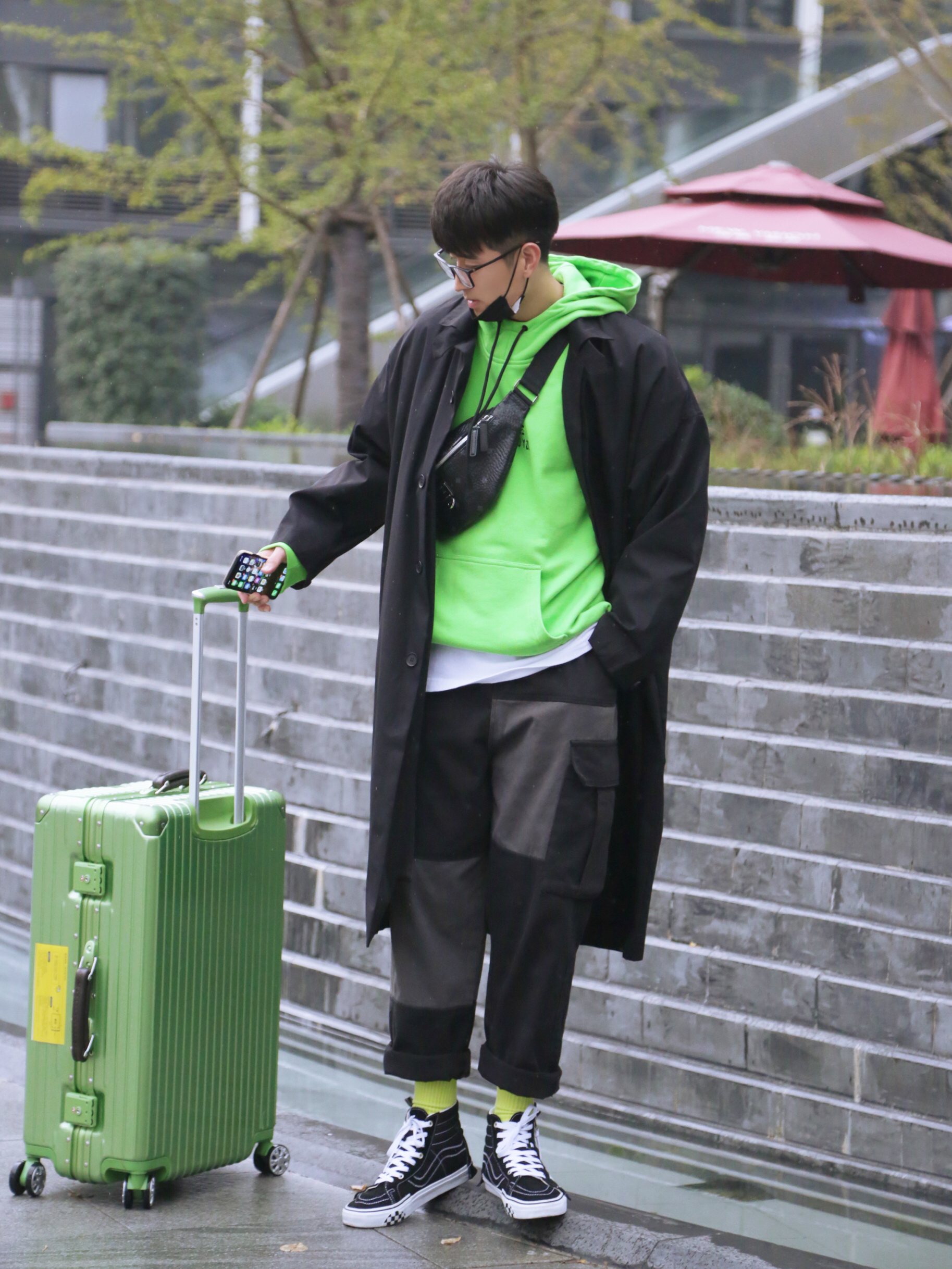看着自己穿得这一身绿,我想了好久,想给这套穿搭取个名字,结果想了半天没想出来,算了,那就不取名字了,纯分享吧! 今日男生冬季穿搭打卡: ·上衣:🖤九分袖黑色风衣🖤 ·内搭:💚荧光绿连帽卫衣💚 ·裤子:🖤黑色拼接工装裤🖤 ·袜子:💚果绿色字母潮袜💚 ·鞋子:🖤解构系列滑板鞋🖤 ·箱子:💚金属果绿行李箱💚 风衣,两种颜色比较喜欢,一种是今天穿的【黑色】,另一种是【卡其色】。过几天我再分享卡其色的。 ...