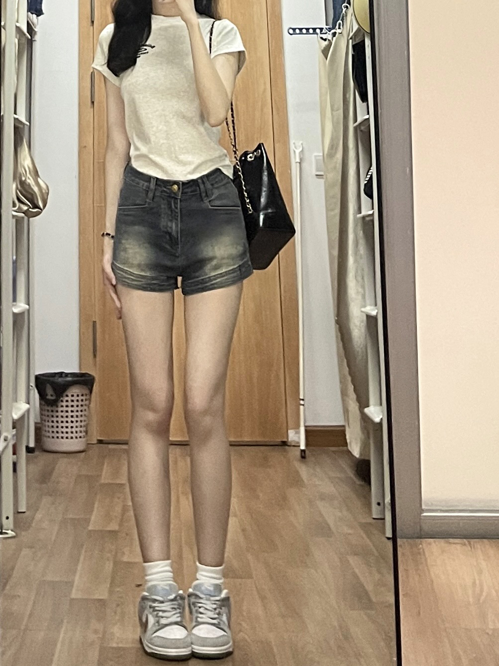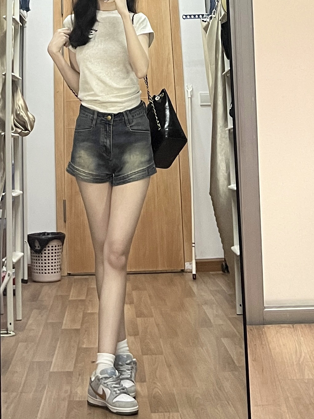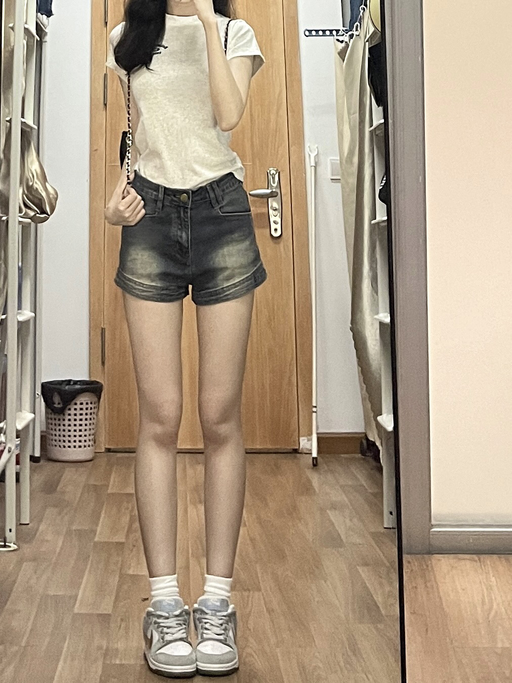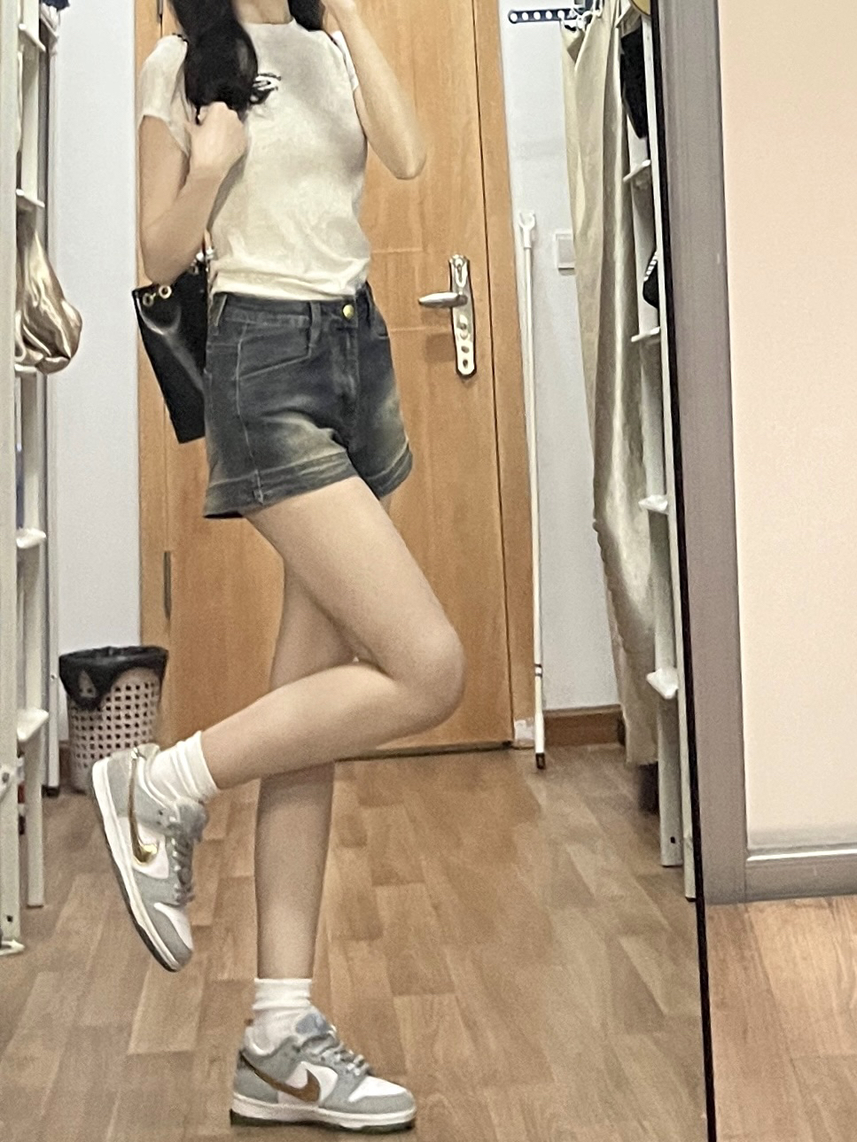 日常真的很爱穿短裤 简简单单就很好看 普通正肩t+牛仔短裤 好适合日常哦