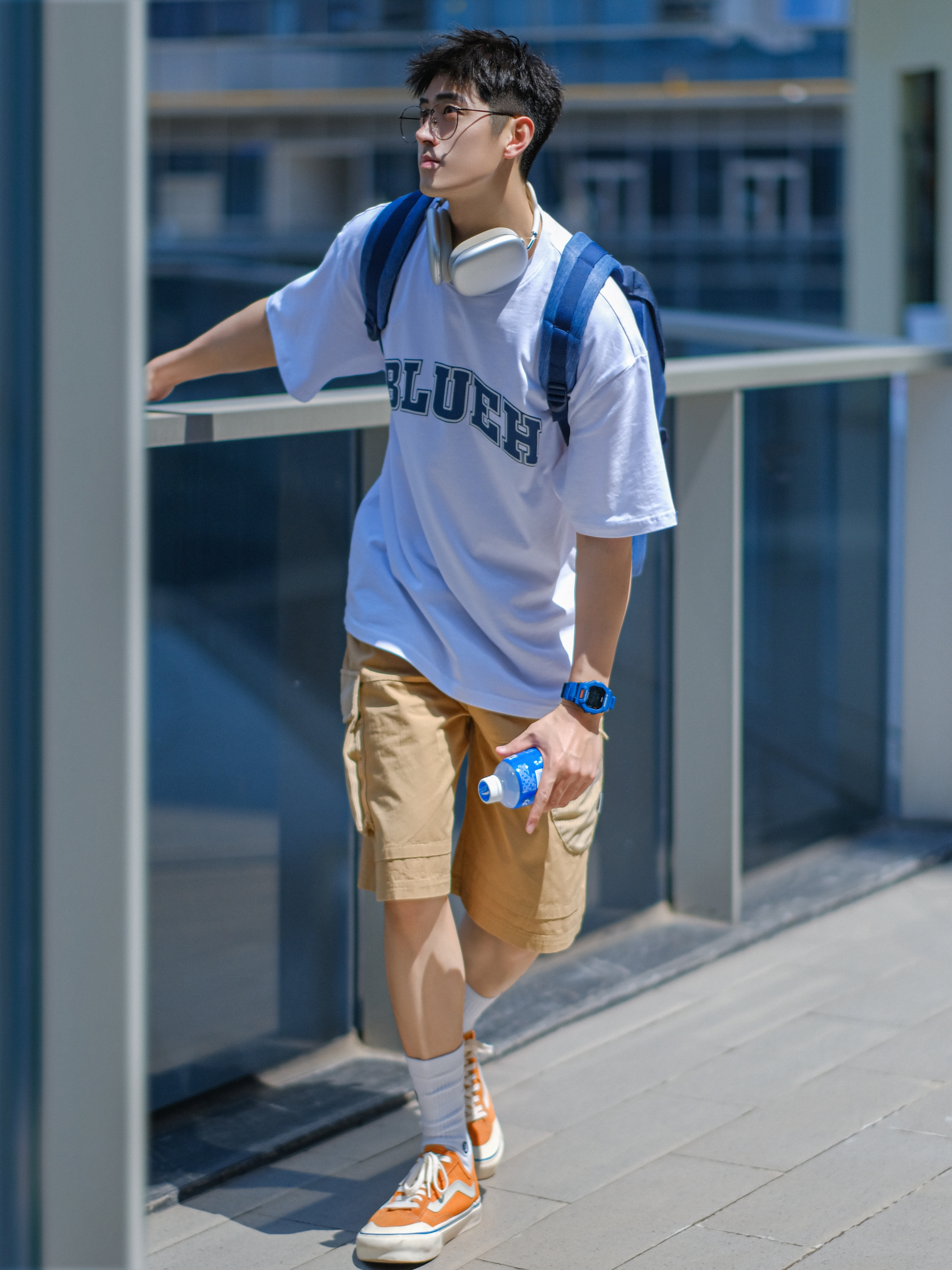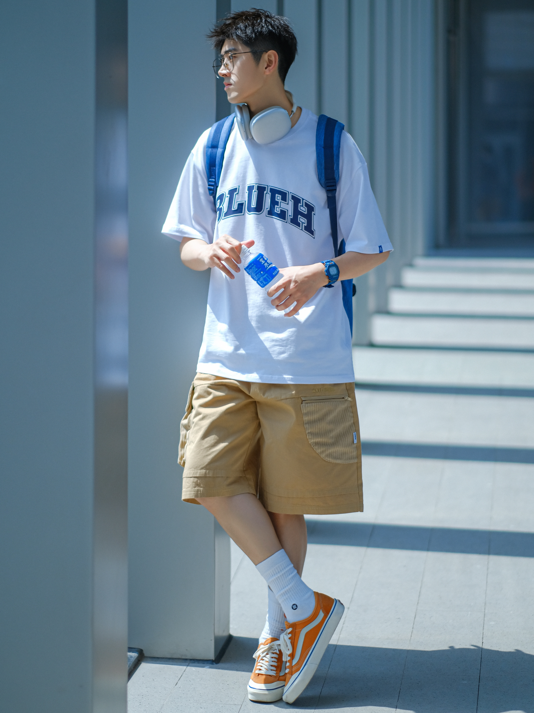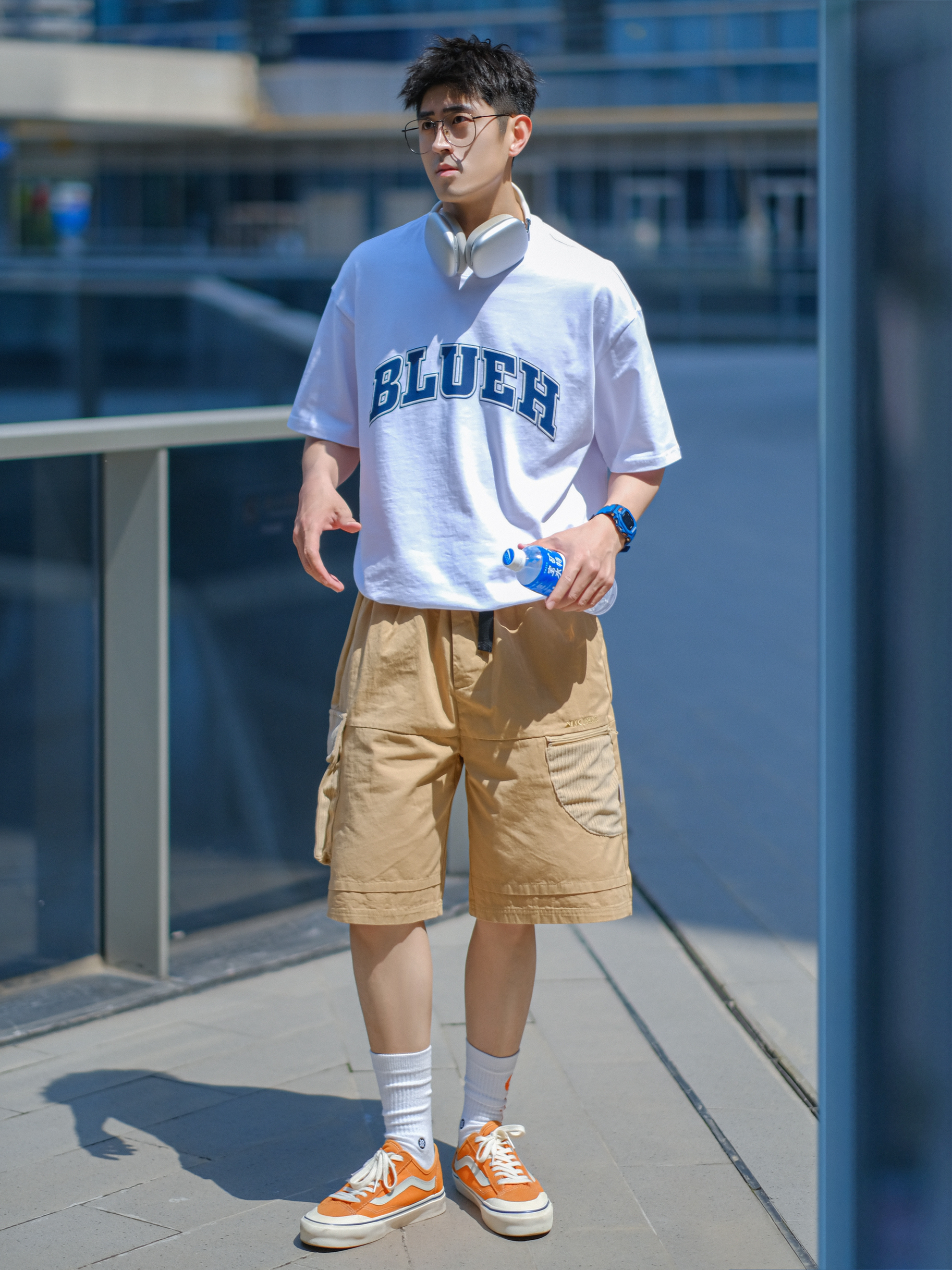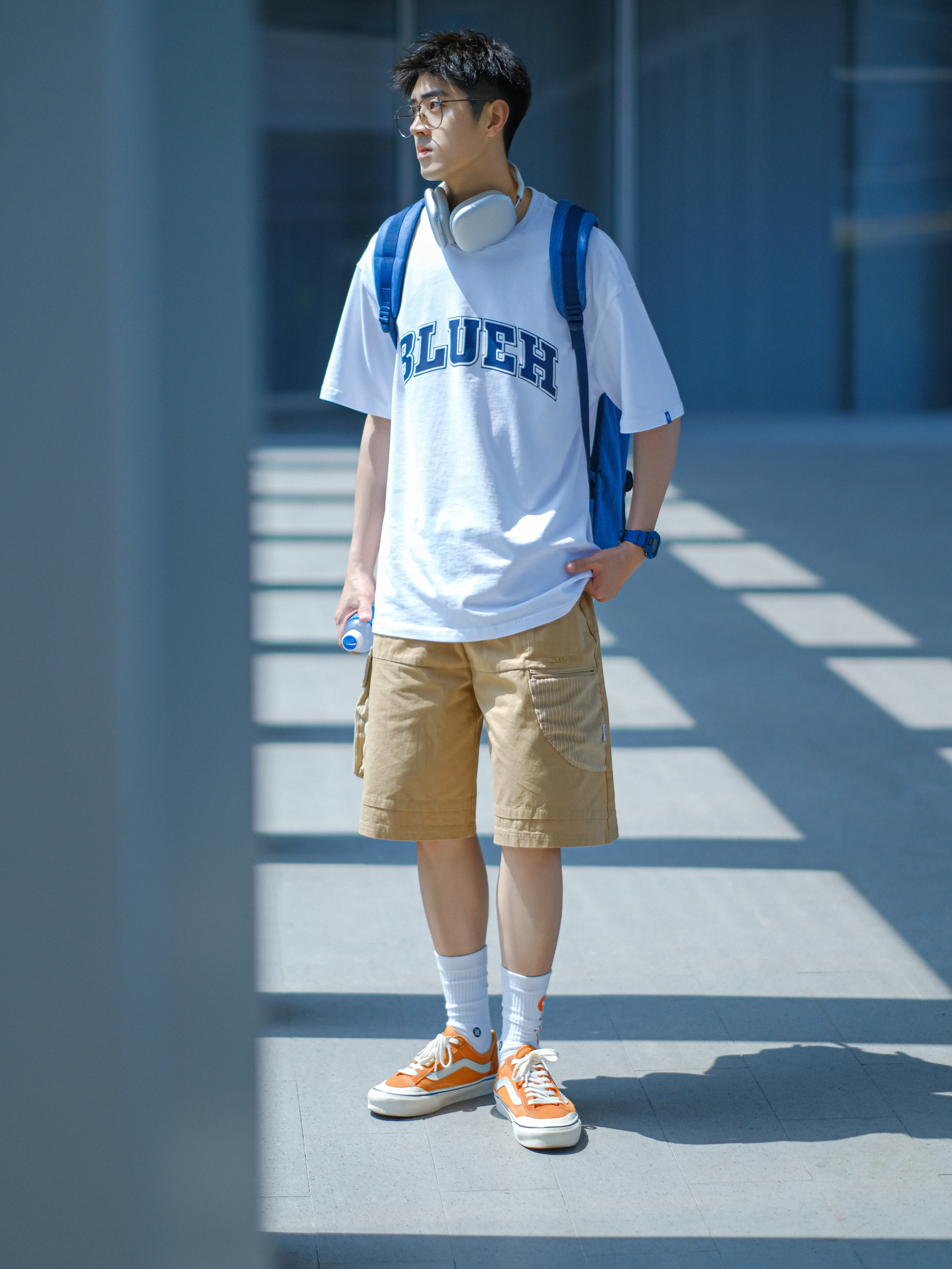🔹这几天有点热,感受到了夏天的气息。所以,今天分享一套夏季穿搭OOTD=“白T”+“工装短裤”!一整个“简约清爽”的少年感穿搭,好适合男生夏季穿搭!简简单单!舒舒服服!🌀💤…… — ⚠️本人身高|体重:176CM|62KG(🉑️参考) — 🎧:Airpods Max;✨ 👕:PD大人;✨ 🩳:PDesign;✨ 👟:VAN;✨ —