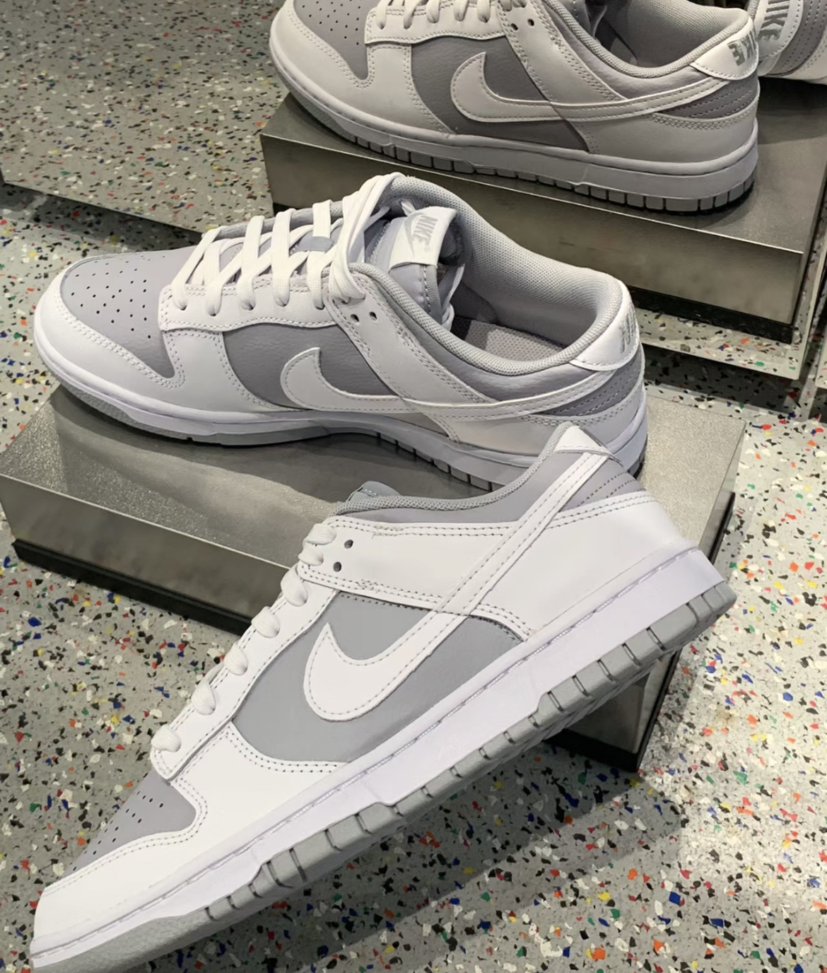 这双Dunk low的狼灰配色现在已经接近于原价啦,而且本身牛皮革的材质质感就很强! 高级的灰白色 搭配起来也毫不费力 越脏了越来越好看,其次就是这一双Nike blazer low 的白银配色! 板鞋届中的冷淡鞋款,鞋子小巧精致,颜色清新自然,女孩子穿了会显得简约大气,男孩子穿上那也是必须的帅气!
