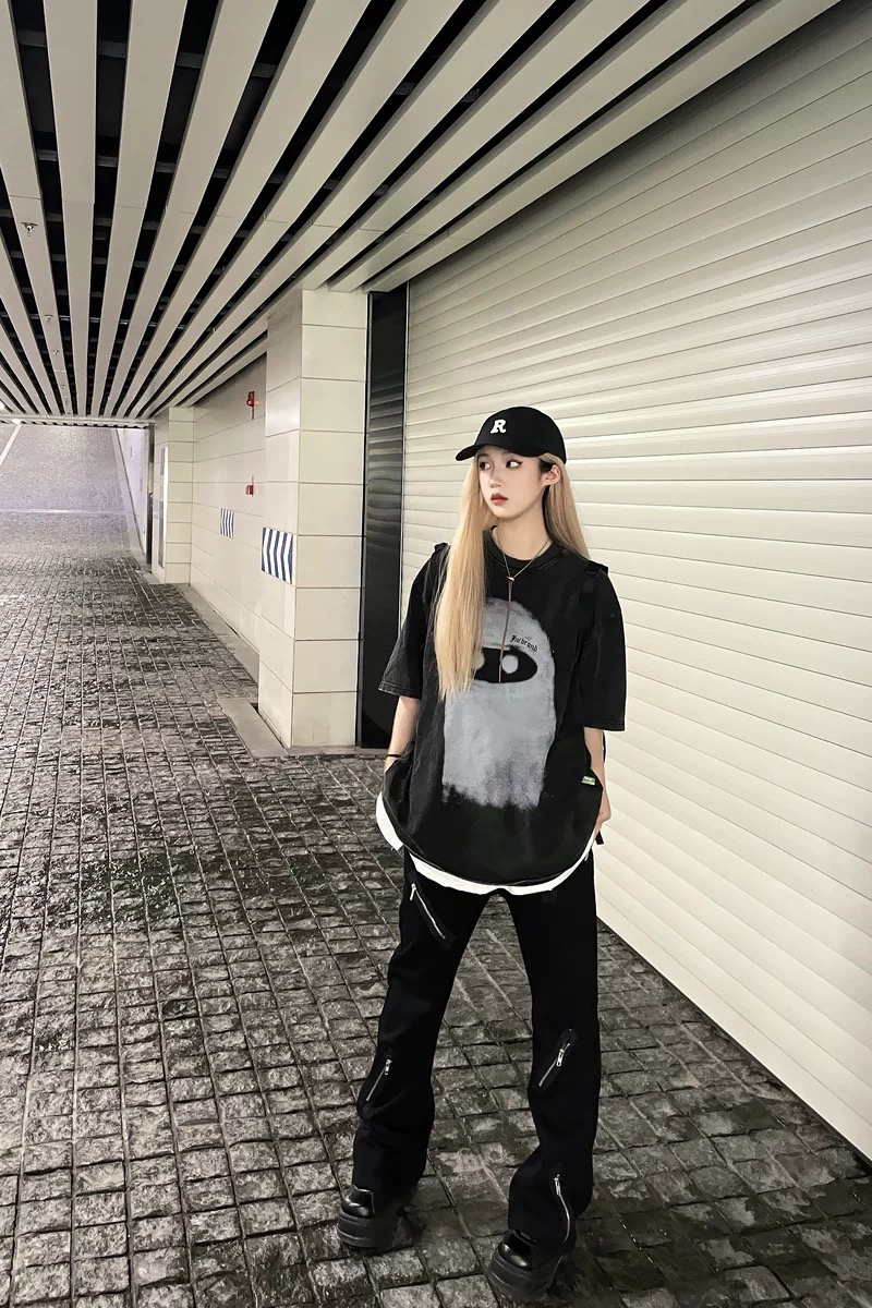 设计师理念设计多拉链牛仔裤,不挑身材,简约微喇版型,包容大部分体型身材,显得腿瘦且长,推荐!