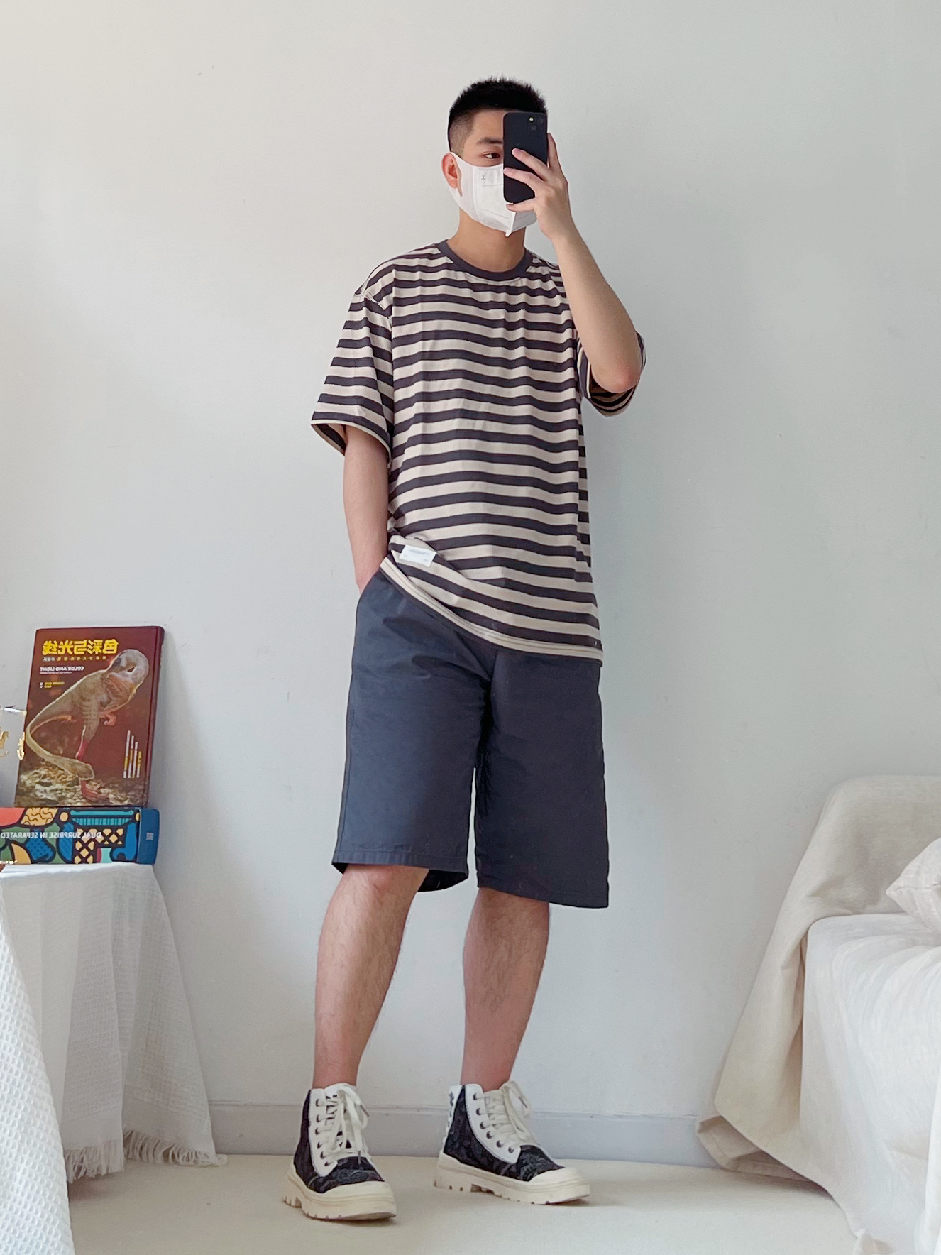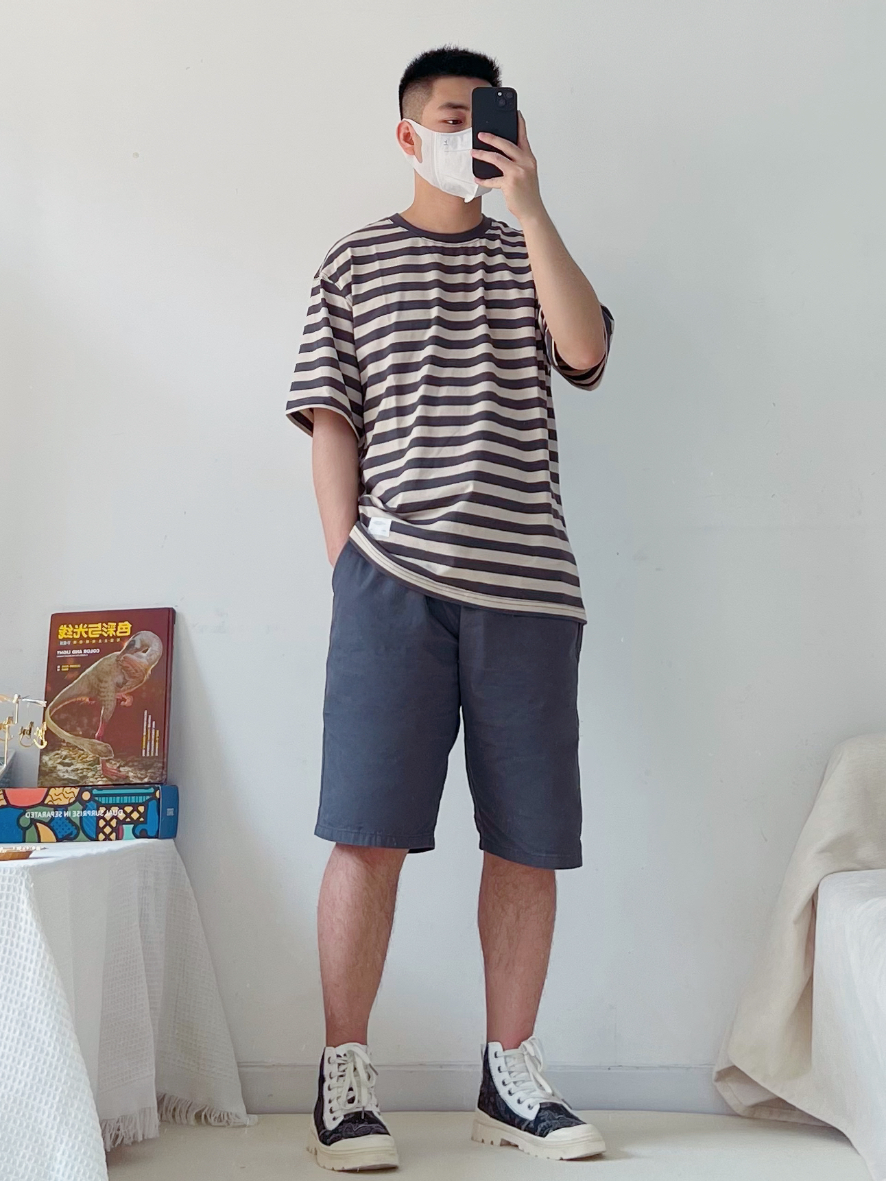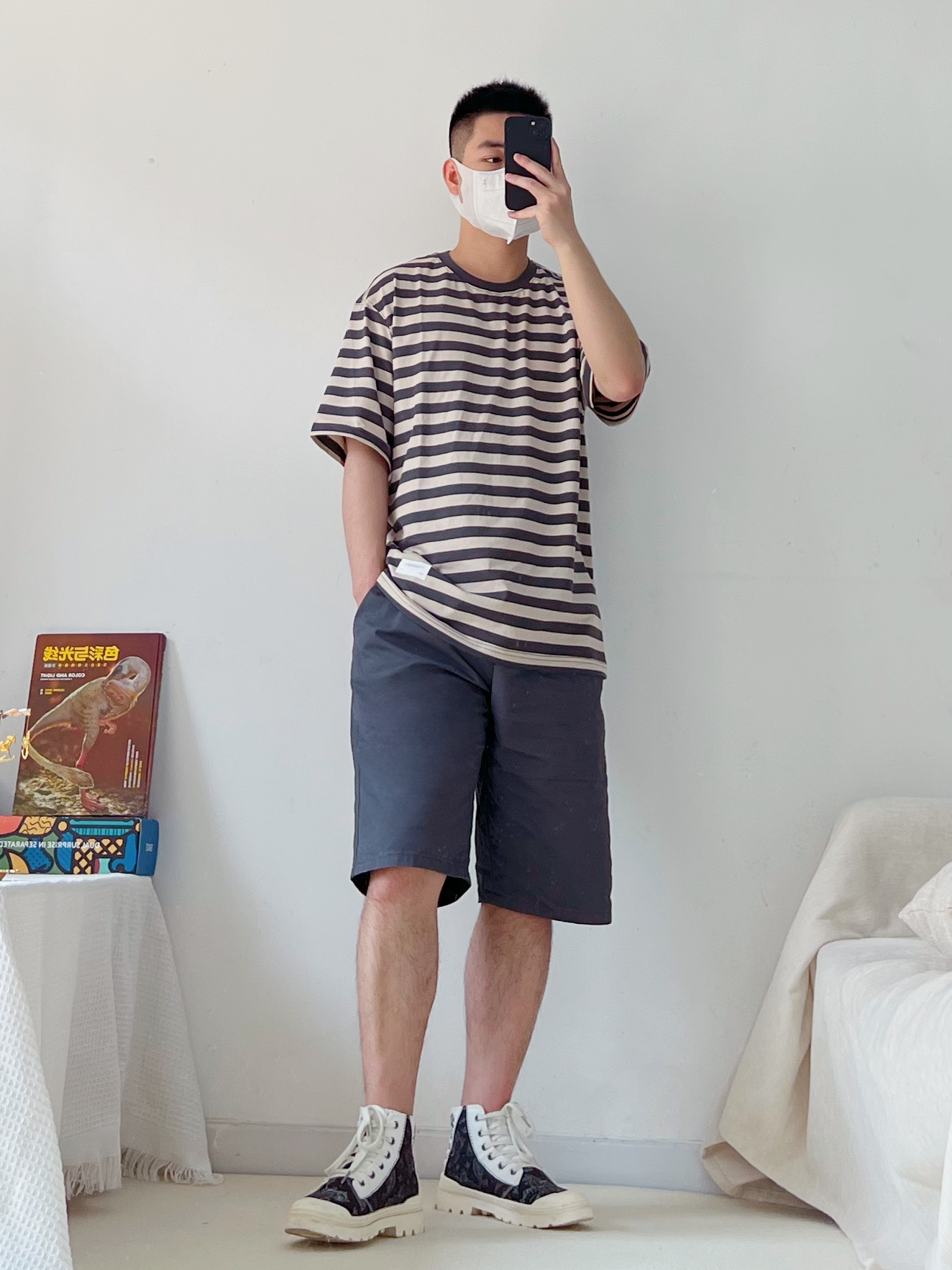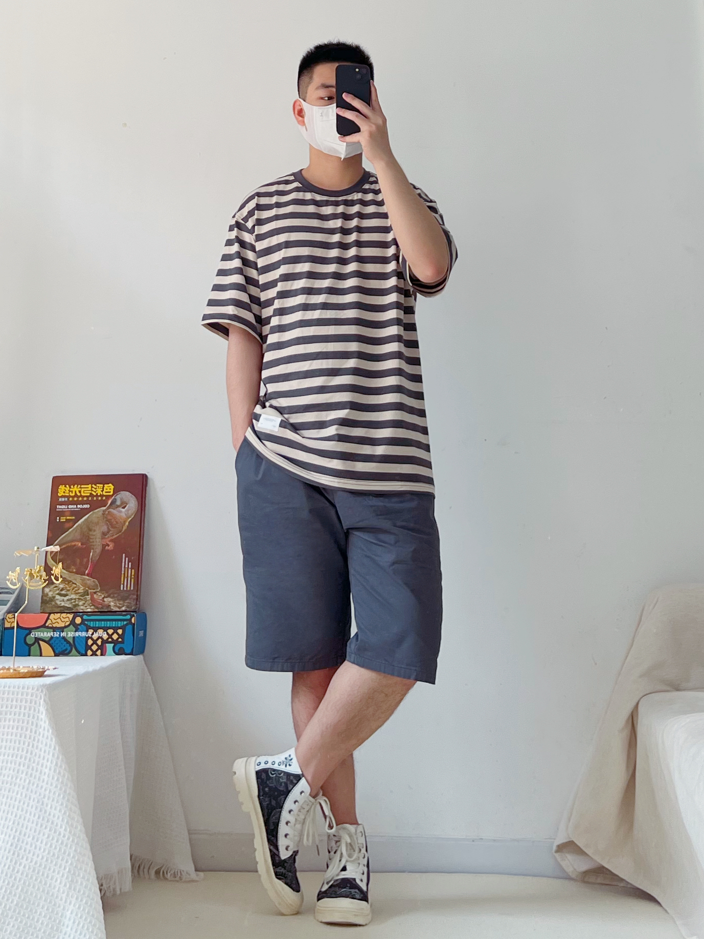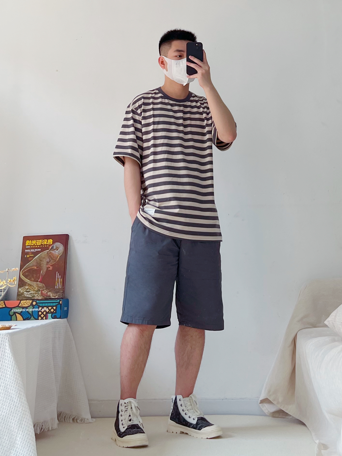 一身简约清爽开启夏天呀~ 每个男生夏季要有的一件条纹短袖,基础款,穿上满满的少年感✅ 搭配一条灰色短裤,清爽干净👍🏻