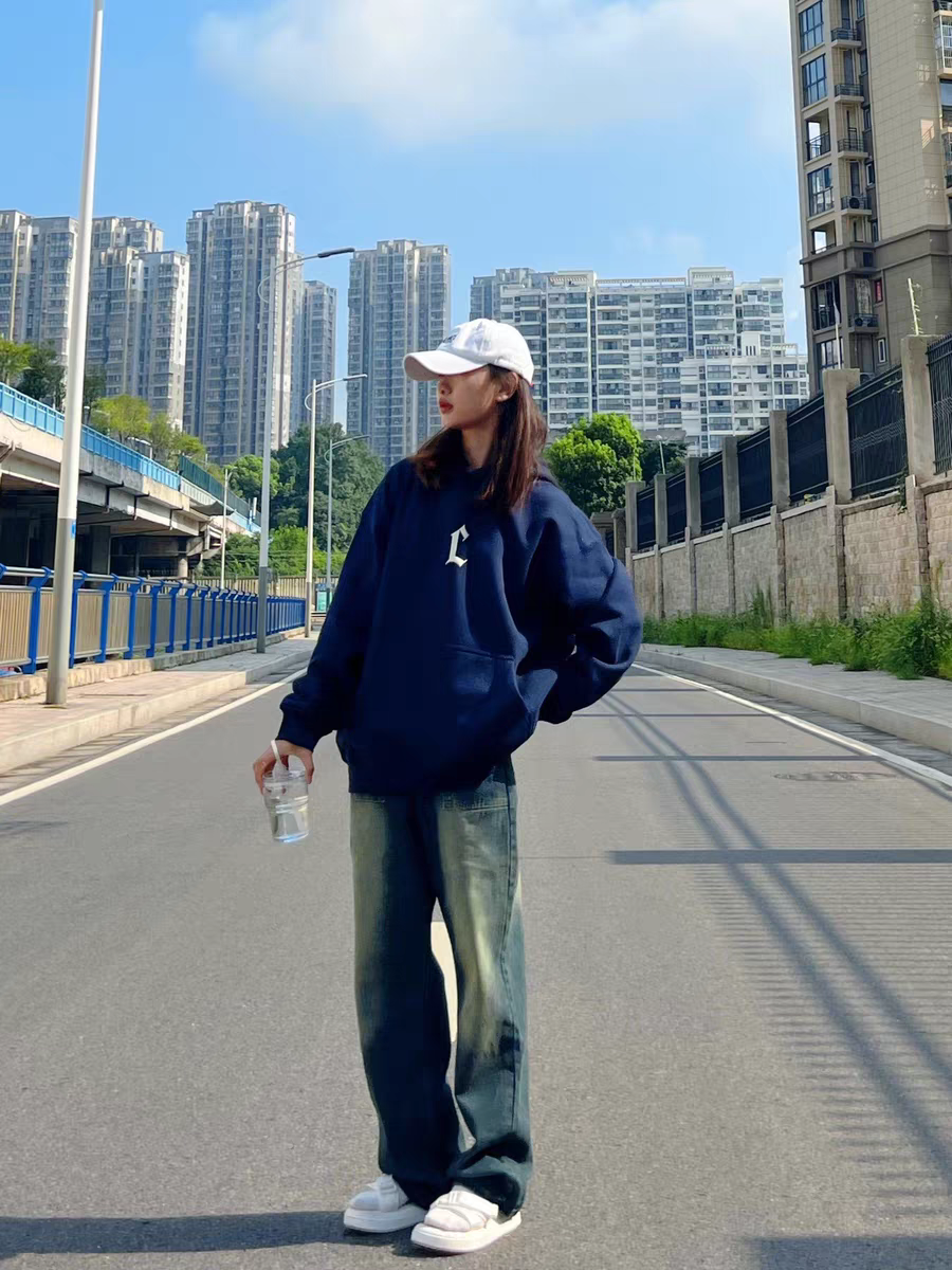 今天带来一套春季薄款卫衣穿搭!! - 衣服是深色的简约字母印花 胸前的印花美式高街 版型 宽松oversize风 / 裤子是浅蓝色的直筒牛仔裤 穿上后非常舒适 很显腿长 - 最后再搭配一双颜值非常顶的星星鞋点缀 脚感舒适还 有增高作用 一套下来很有春天的感觉