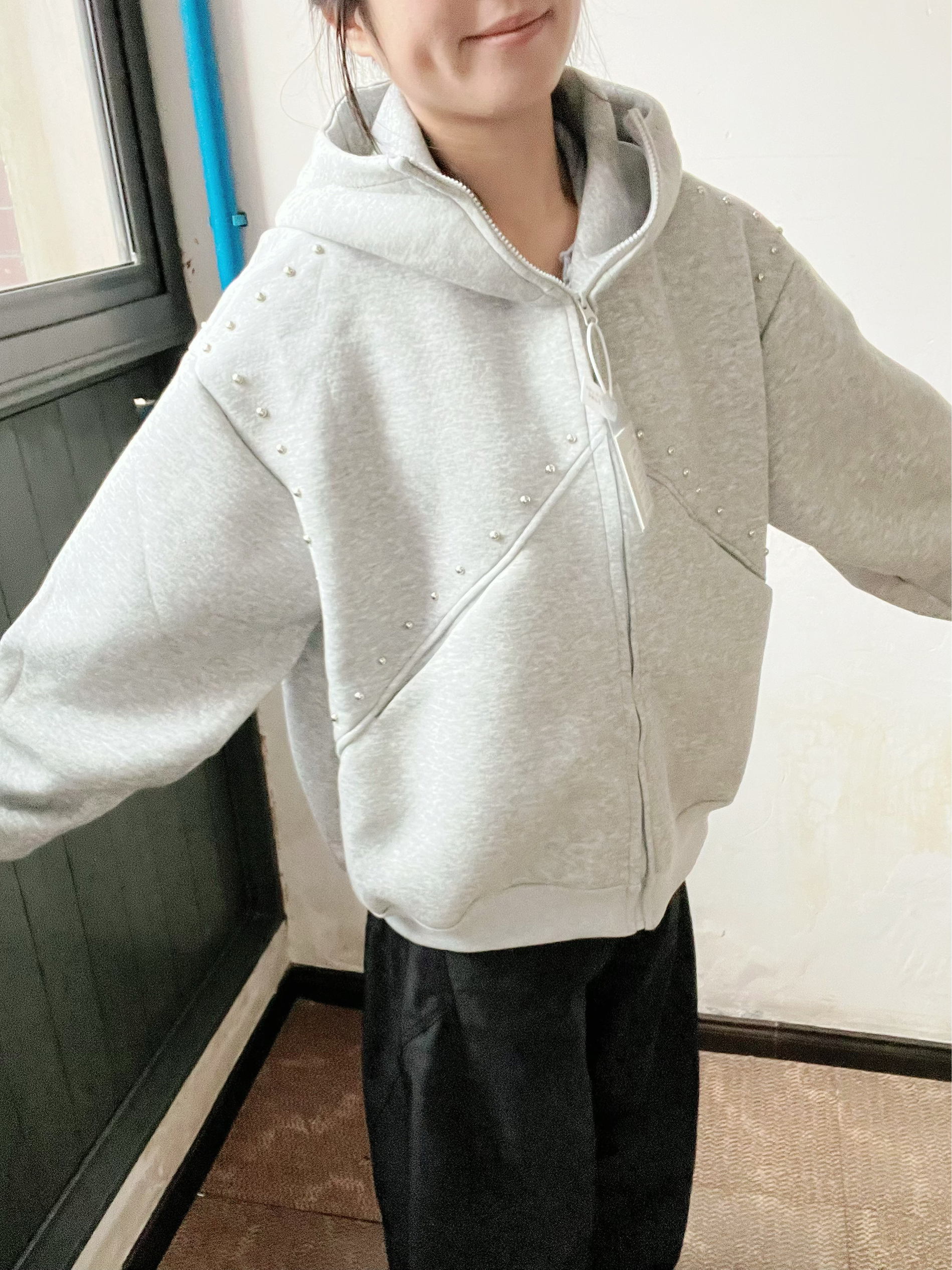 🌟果然北方的这个季节就是卫衣搭仔裤,咳咳~早晚还要加件棉服...北方的春风也是很得意的,刮的头发乱飞睁不开眼,所以连帽的卫衣必须安排上~ 🌟自带休闲感的卫衣,奶白色也是春季的百搭色,拉链款连帽衫更显随性帅气,搭配卡其色运动裤青春感十足。 🌟背上包包,马上有种去上高中的感觉~ (图片来自博主:阿璐)