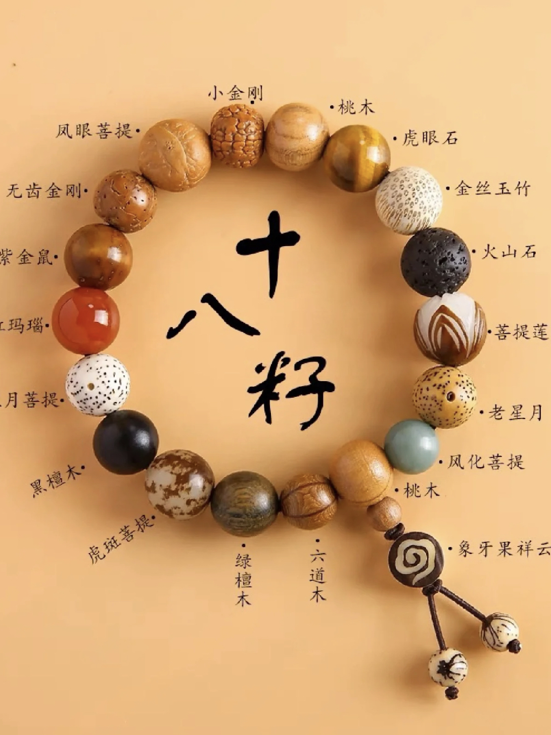 戴上太惊艳了,没想到祈福单品也可以这么好看!!! 每一粒都是独一无二的天然美貌 灵隐十八籽也就是菩提多宝十八籽 其中的“十八”还指代十八罗汉 是十八位永驻世间护持正法的阿罗汉 随身佩戴十八菩提手串可以起到辟邪护身,增加佩戴者福报的作用 除了自己珍藏还可以赠送好友以表情谊哦~ (图片来自博主@鹰击长空,侵删)
