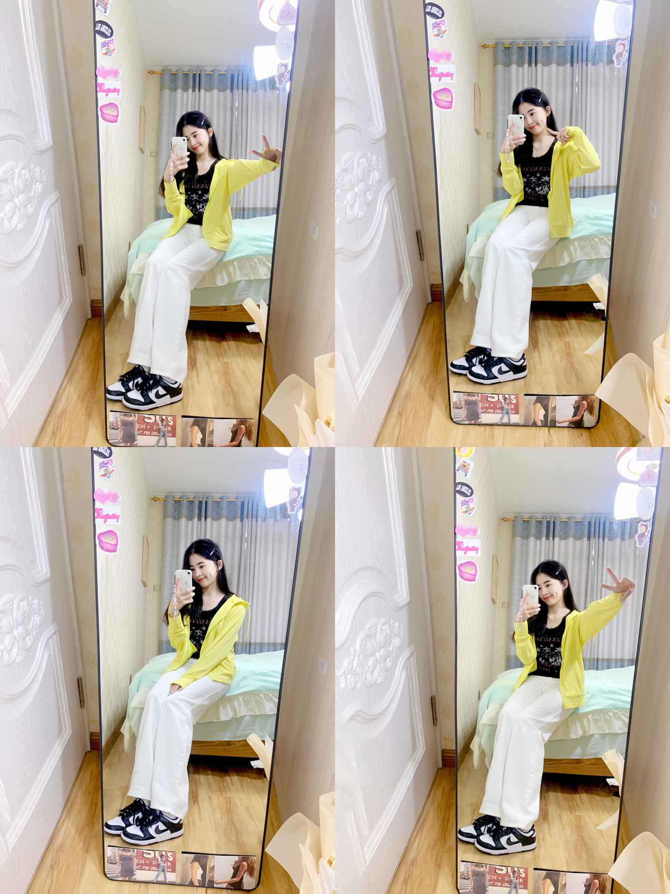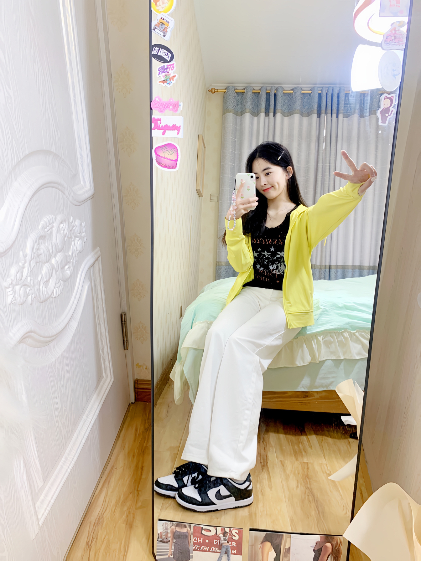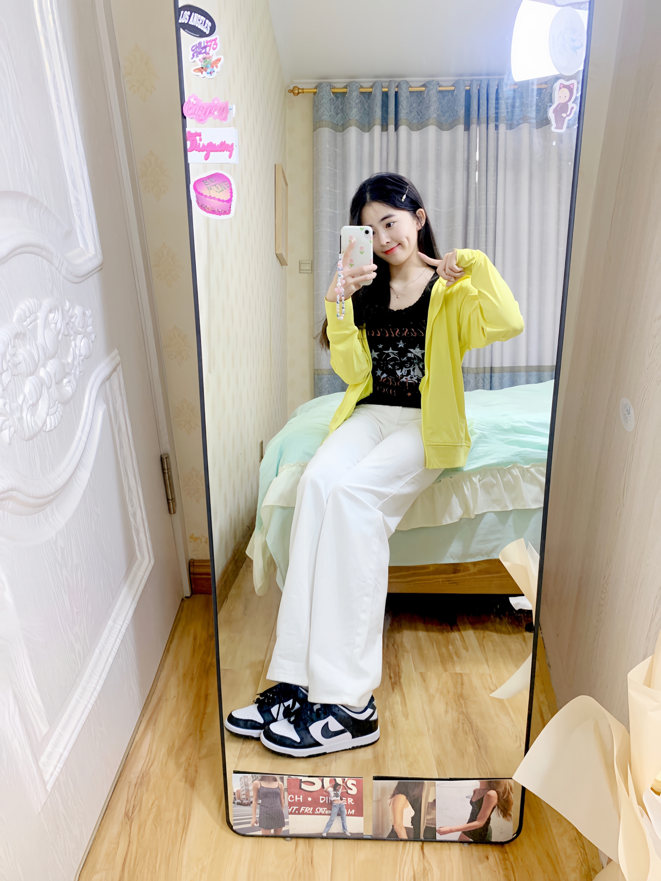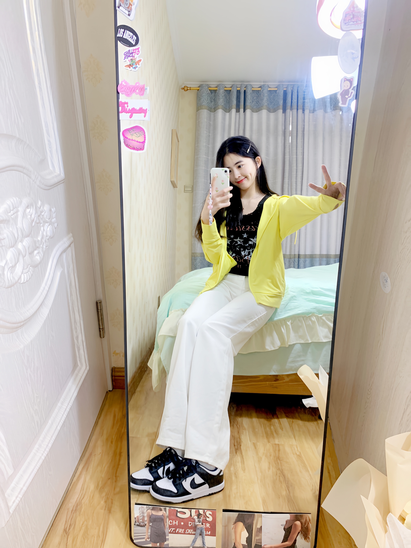 这套简直是春日的调色板呀!✨ 亮黄色的防晒衣💛 搭配干净滴白色直筒裤✨ 活力少女感就来啦💕! 真的太爱了~活力满满的感觉呀!!!