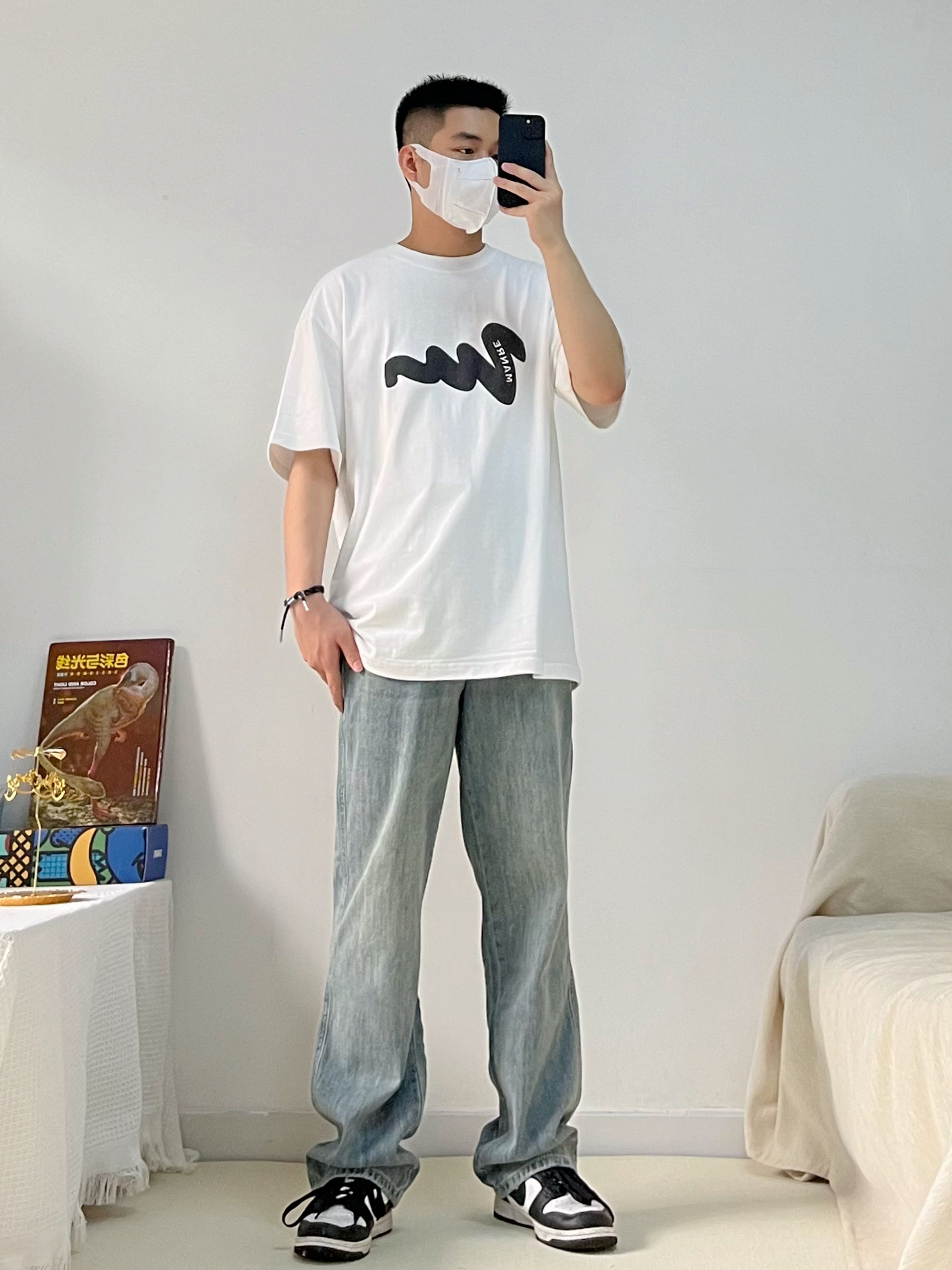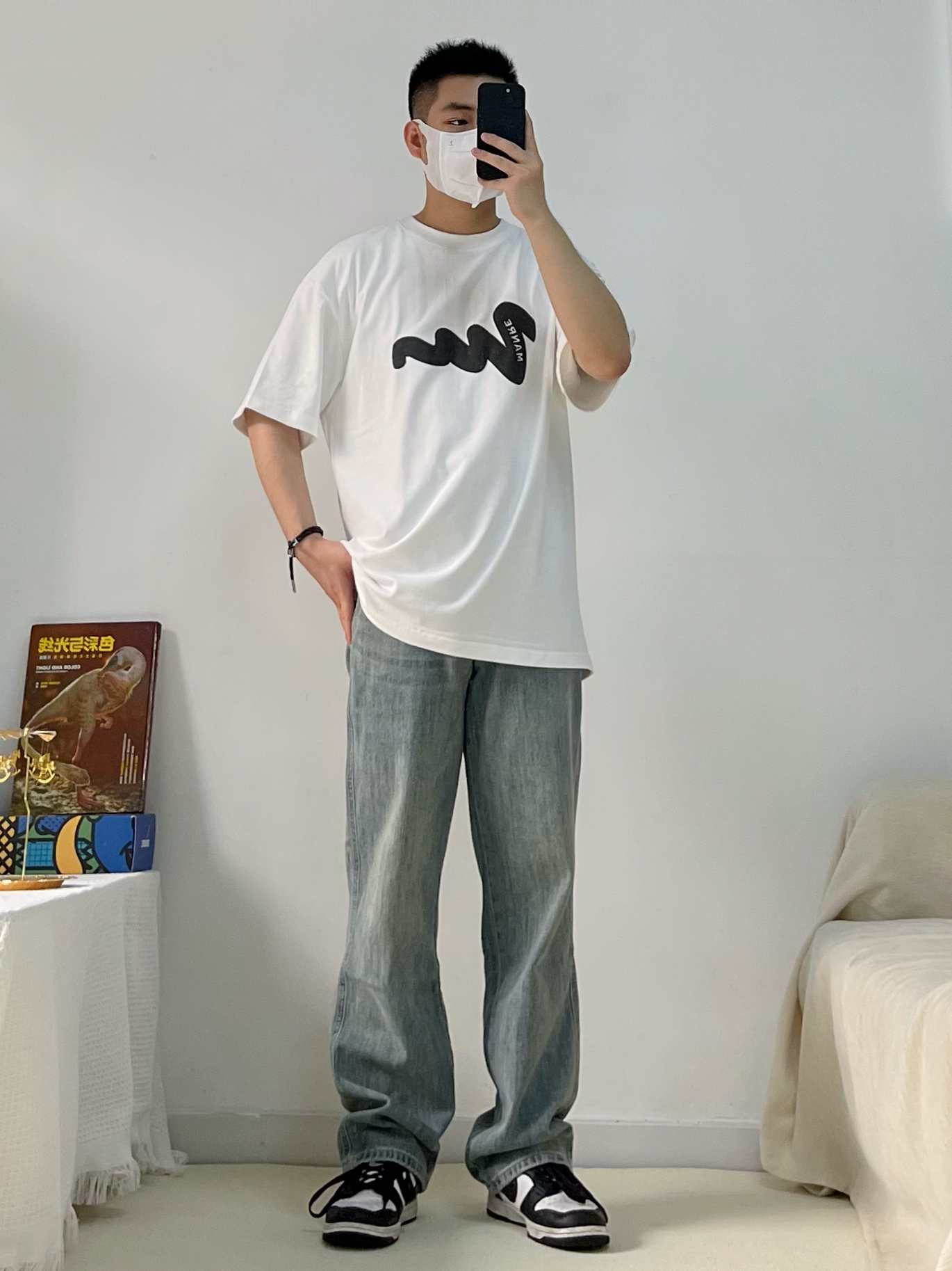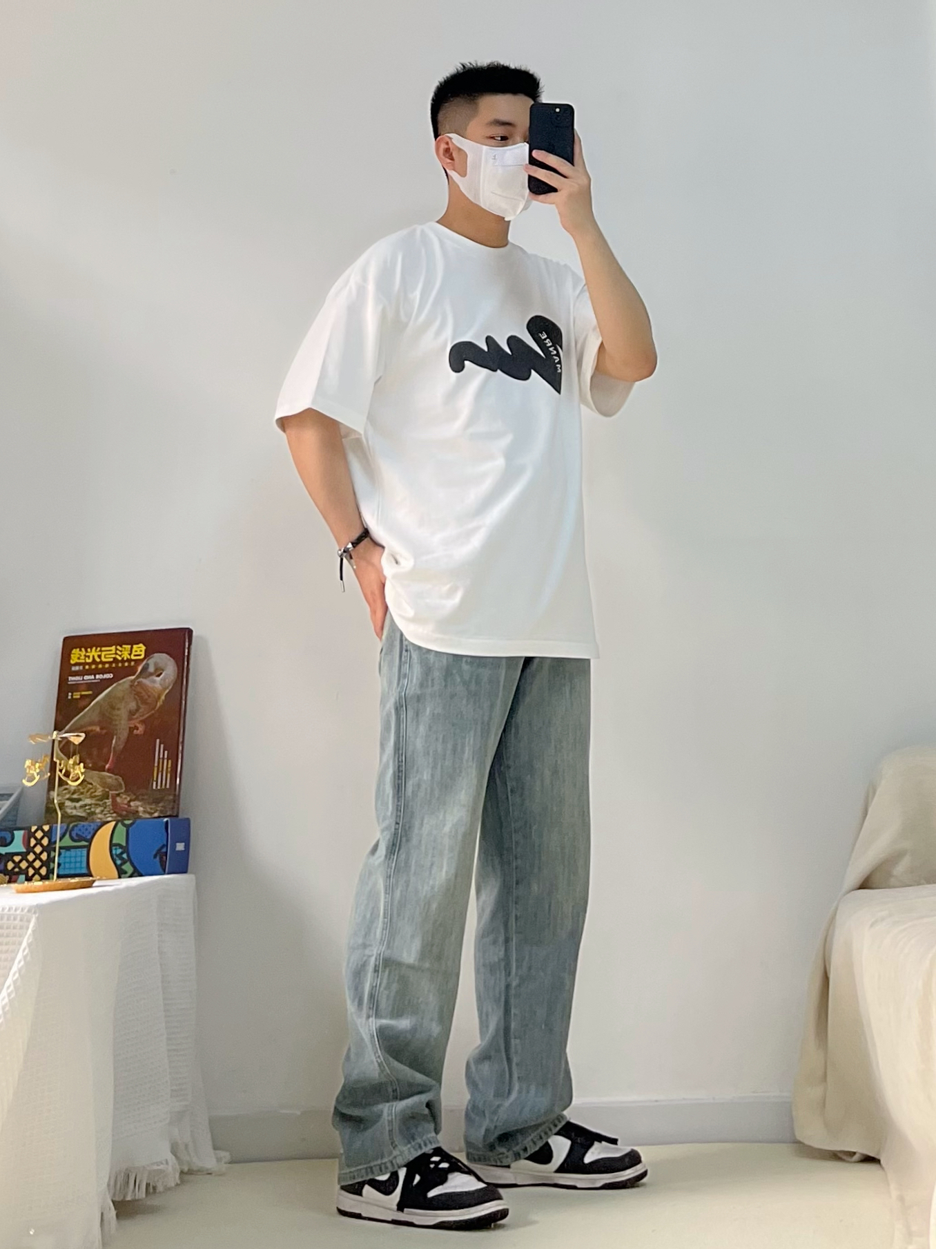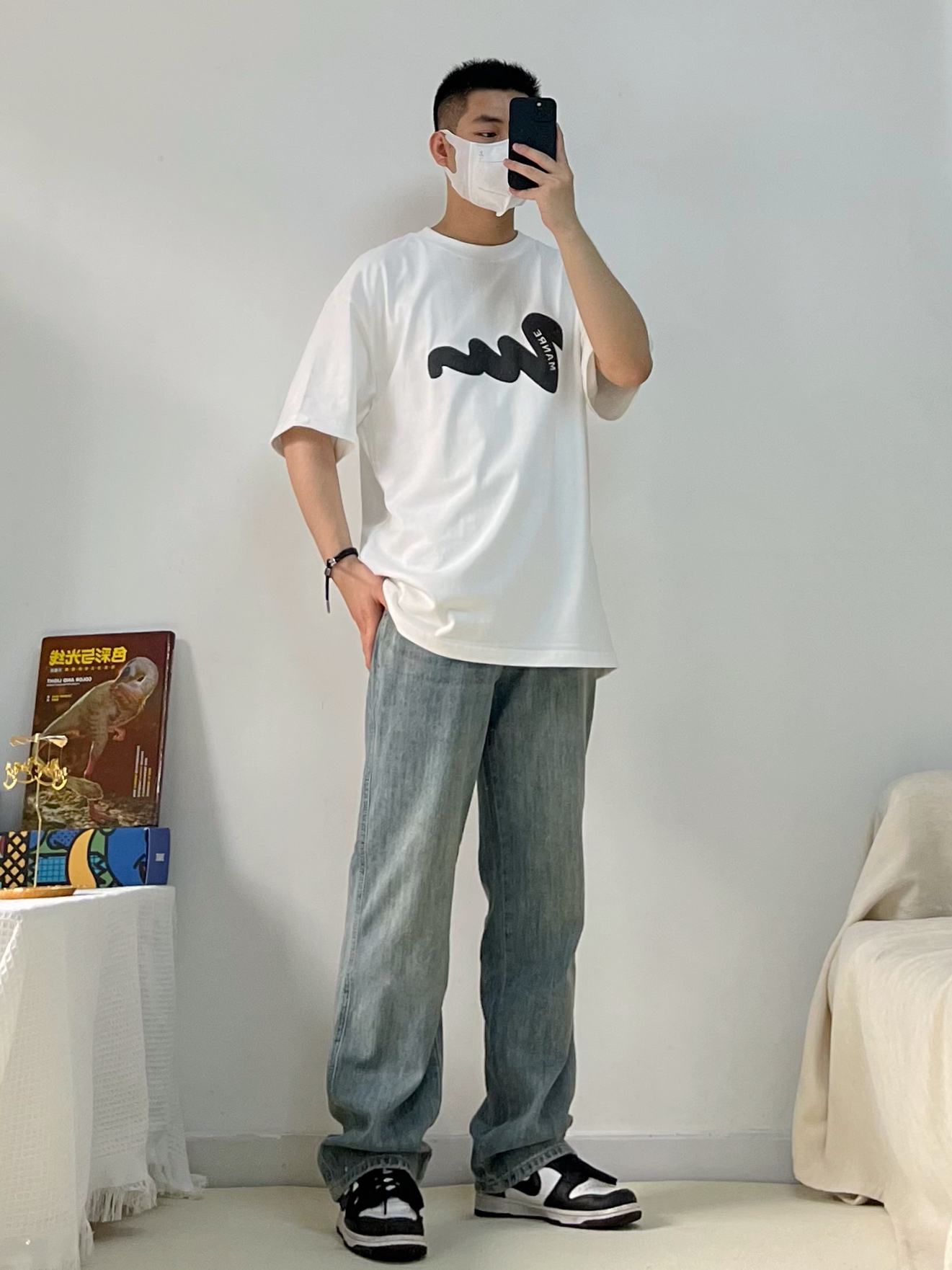 小个子男生夏季穿搭,白t+牛仔裤就干净帅气啦~ 白色宽松短袖,简约印花,搭配一条显腿长的牛仔裤,一身满满的少年感😘
