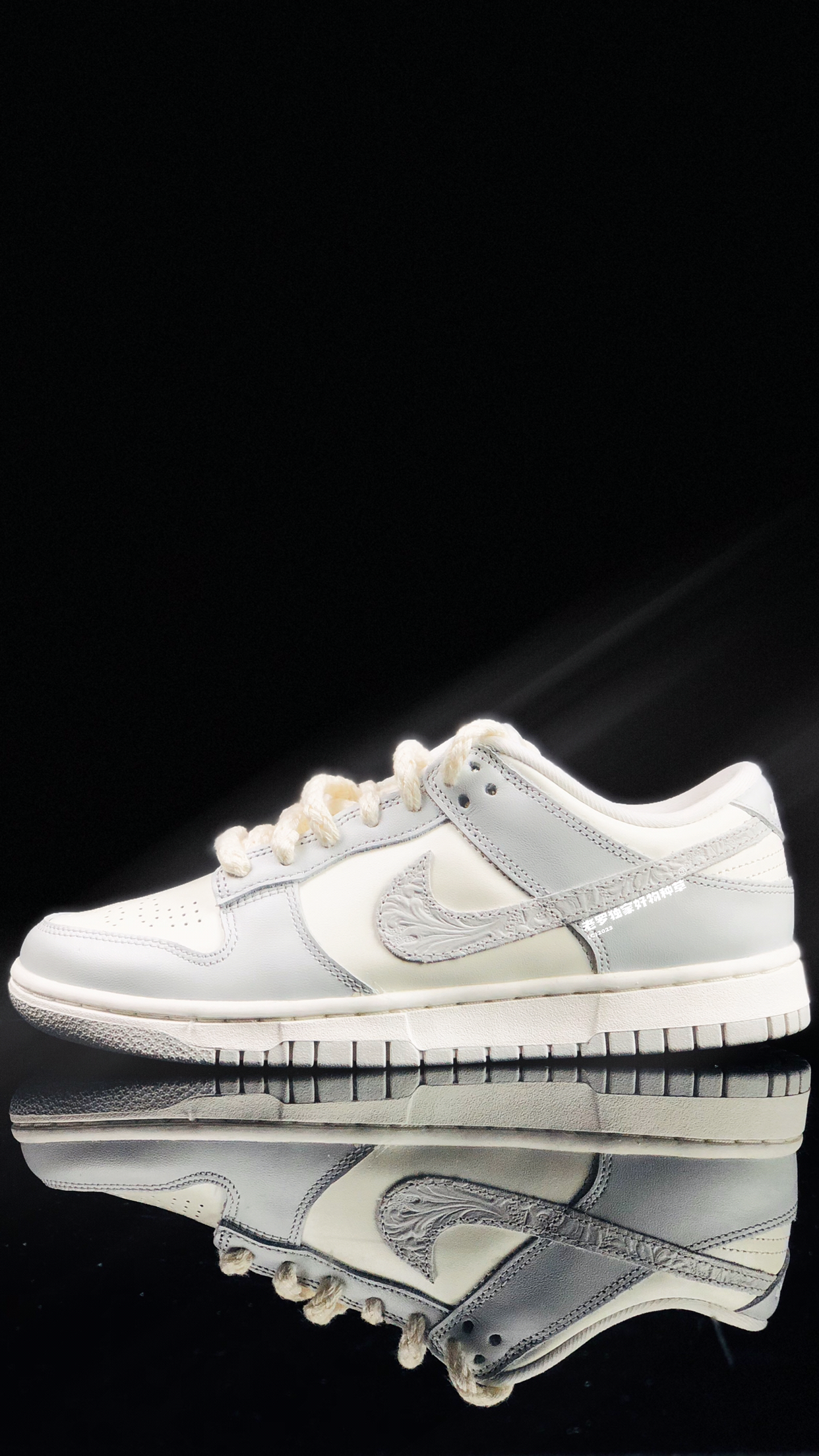 今日带来一双全新配色的 Nike Dunk Low 整双鞋采用白色为主调,辅以浅灰色鞋身框架,造型格外简约 层次分明鞋身材质以全皮革面料进行包裹,呈现出NikeDunk一如既往的质感。 鞋头透气扣区别于以往的规律排序,而是选择了全新造型点缀。侧身Swoosh加入了浮雕设计,为原本的鞋身增添了一抹奢华气质。鞋垫与后跟的Nike也进行了创新设计,同时后跟还嵌入了一颗类似水钻钉的装饰,进一步丰富了细节...