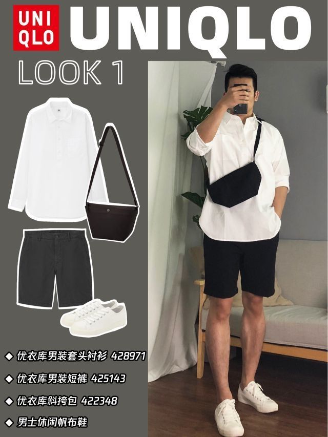 夏季的少年感穿搭适合小个子男生,清清爽爽~ 这一件宽松版白t,前简后繁,干净简约却不简单😉 搭配一条米色短裤,长度刚刚过膝,百搭款✅
