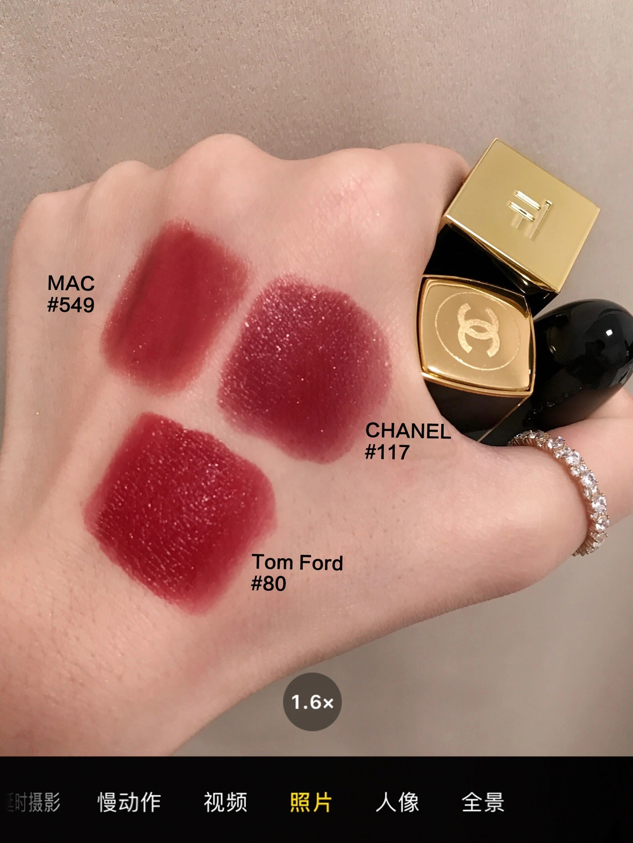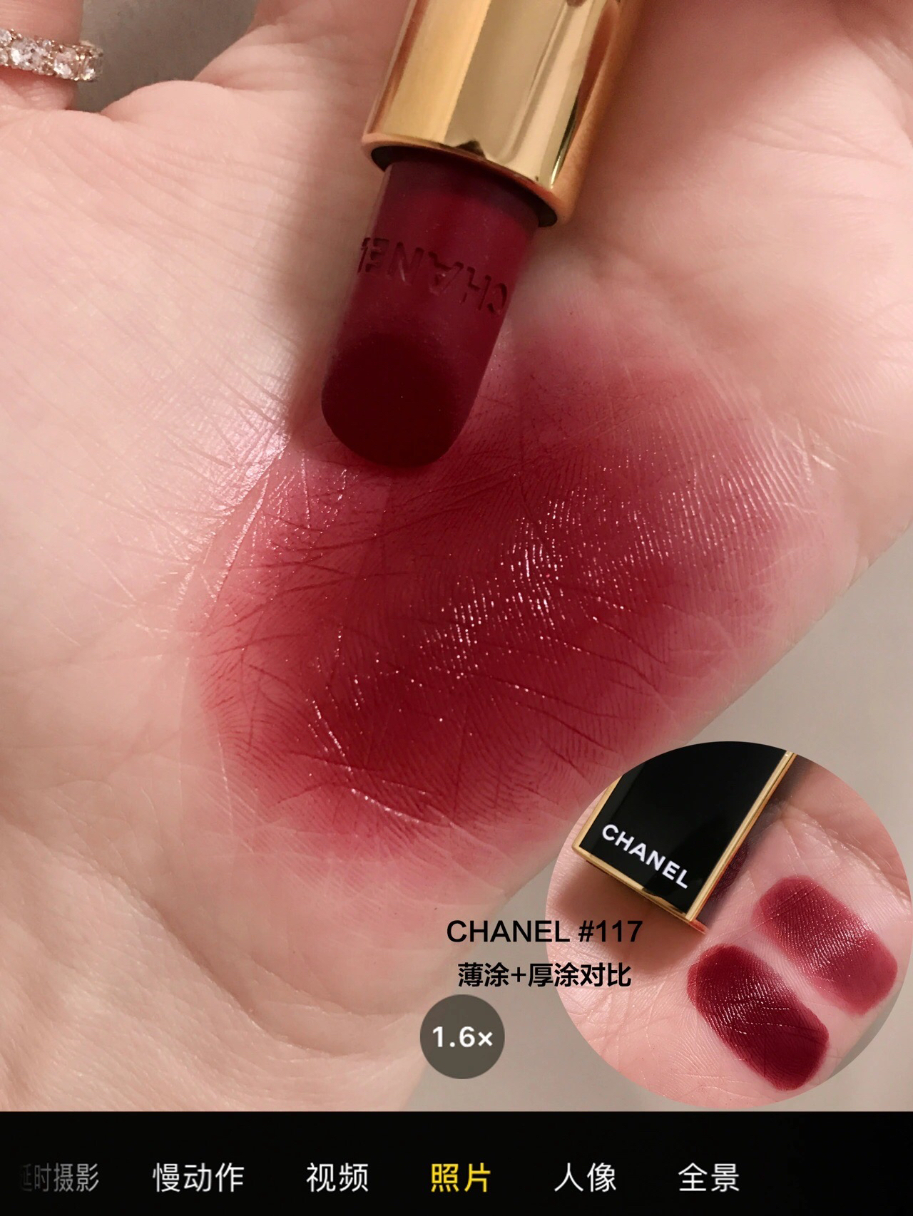 这简直是好看妈给好看开门! 好看到家了!!! P5-6手里有的3支大漂亮红棕,都好看 但117这种棕调复古砖红加入揉碎的闪,真不一样 质感上唇就很润而且肉眼可见的碎钻,叠蜜之后闪的更仙了! #无滤镜口红试色 #我的口红日记