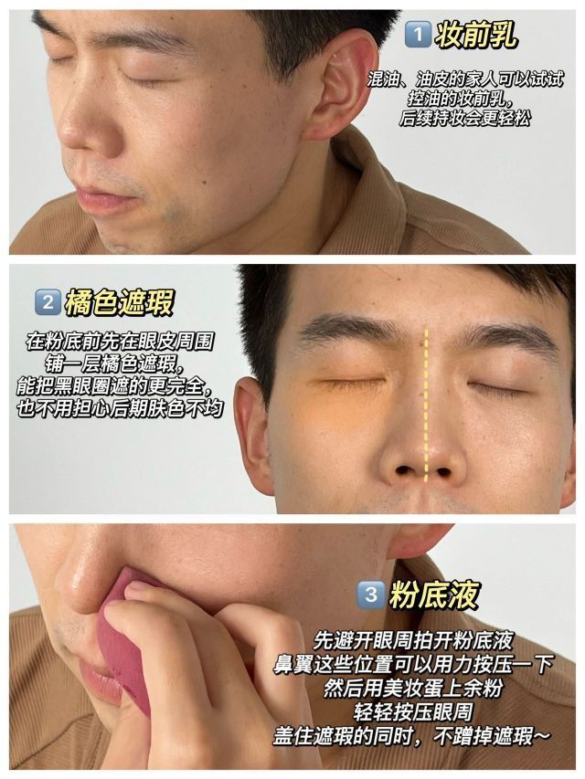 学会这个妆!你也可以像13号男同事一样显嫩10岁!! 男女都可!!重要的是思路 化完就被隔壁同事围观偷拍, 一边拍🤳一边说:妆前有多显沧桑,妆后就有多惊艳哈哈哈哈 惯例先来分析一下思路哈~ 1⃣️遮好瑕,脸部一定要干净平整 清爽学长非常需要“干净”,所以脸上是不会有大面积瑕疵的, 比如黑眼圈、痘印、暗沉这些颜色不均的色块, 一定要通过遮瑕遮住!! 2⃣️眉眼要有“粗糙的精致感” 要塑造不...