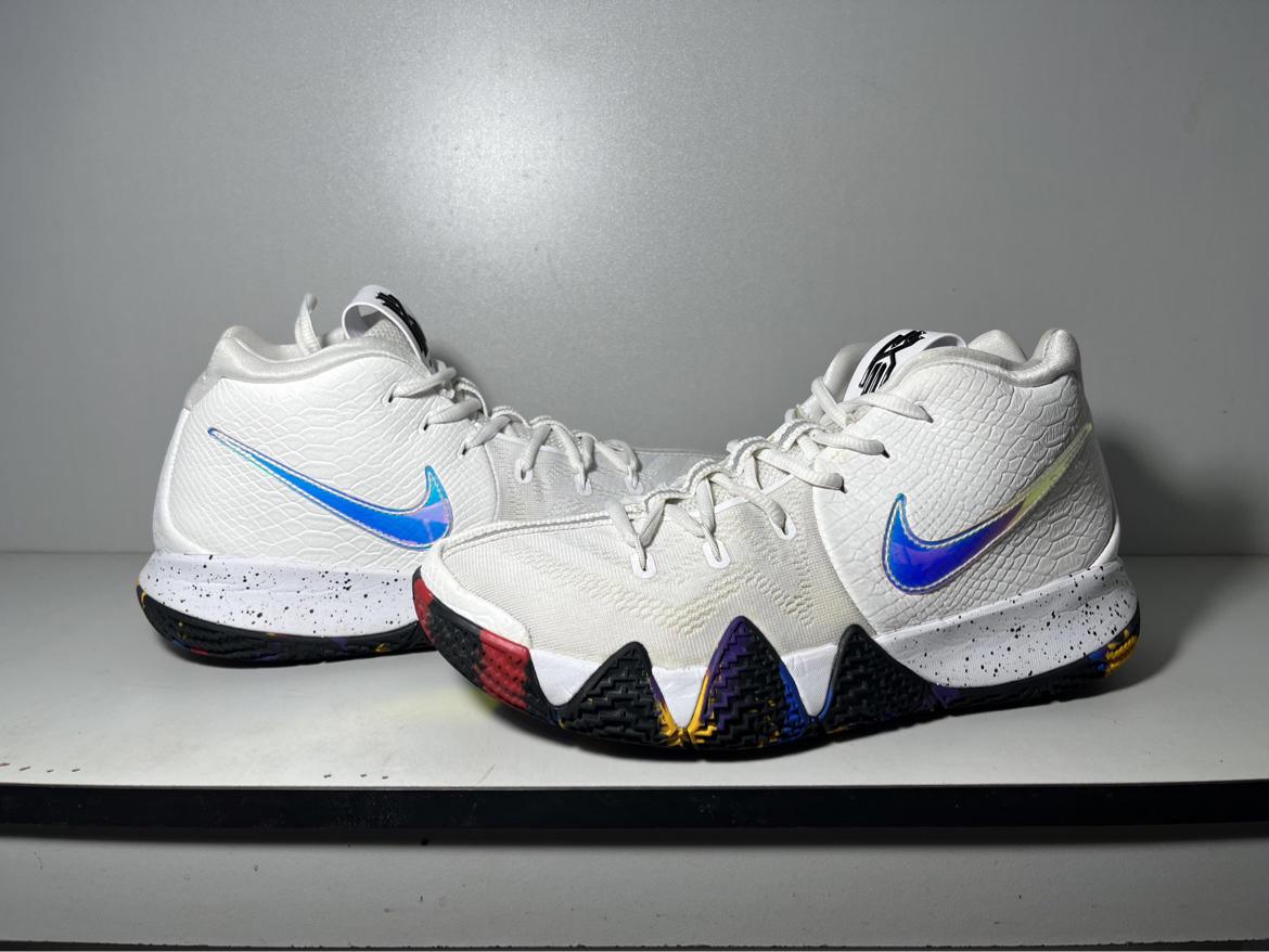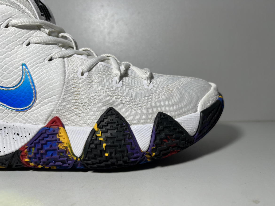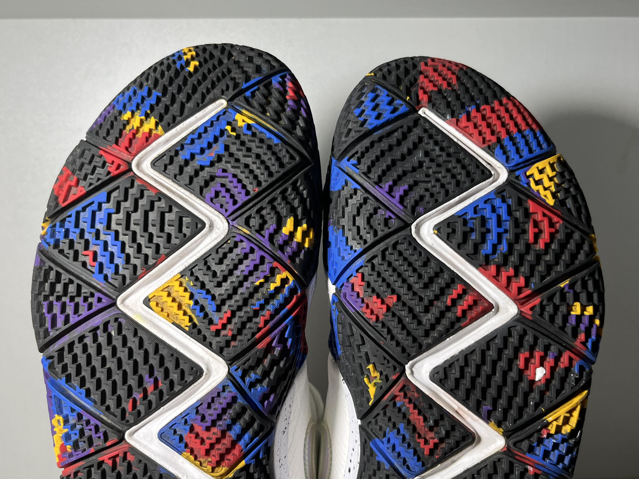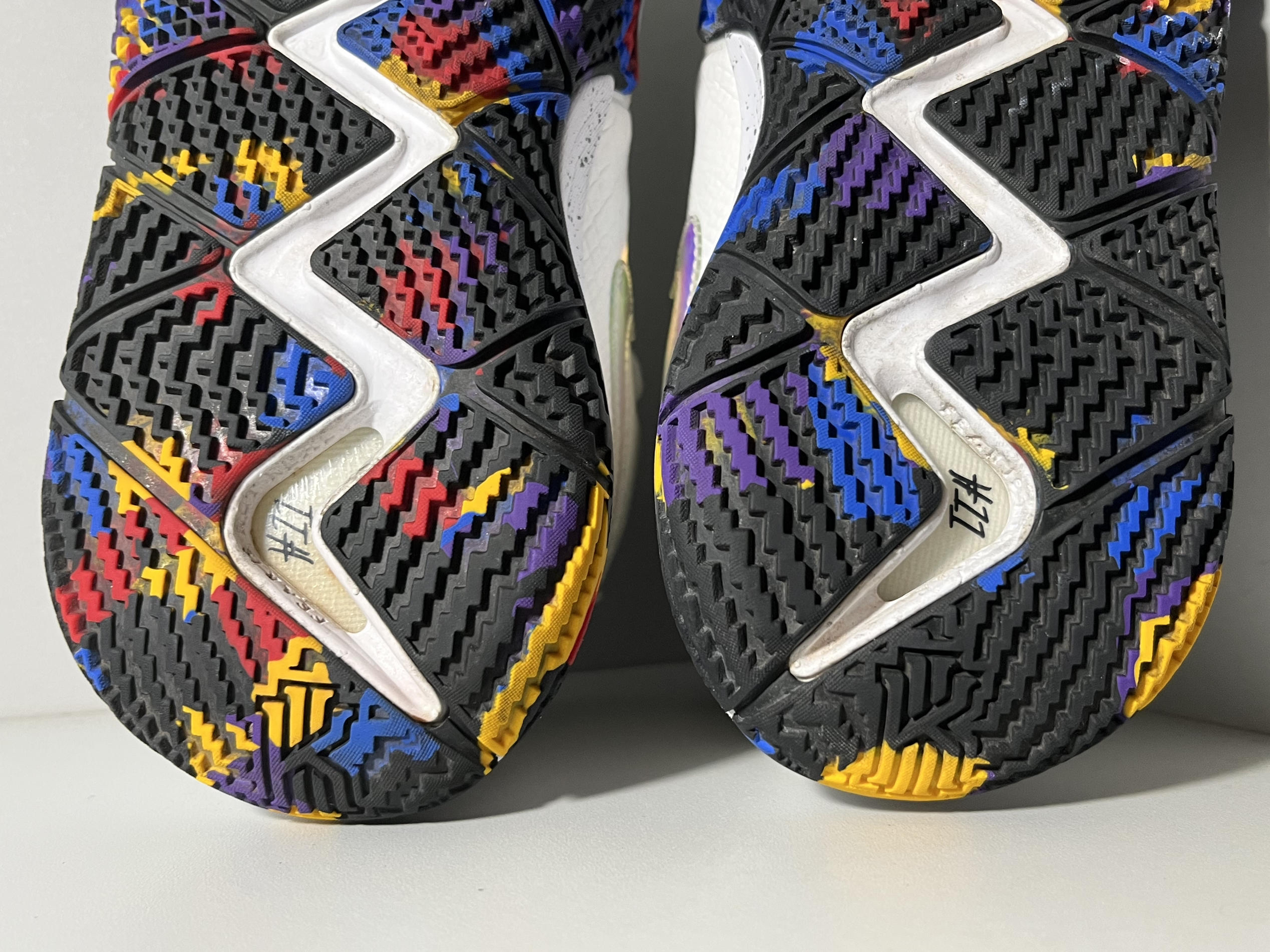 欧文在签约nike时期的实战好鞋了 本人最喜欢的便是欧文4 有幸收到了ncaa配色 采用了足弓tpu稳定片和后掌zoomzir 欧文4鞋楦比较宽 适合宽脚 本人是宽脚 鞋面是工程网布材料和麂皮 穿起来包裹十分优秀 侧面上翻的防侧翻 酷似獠牙 吸睛亮眼 就像欧文犀利的突破撕裂防守 ncaa侧面是皮质面料 鞋面有一条贯穿的反光条 炫彩的logo和鞋底 这颜值真的爱了