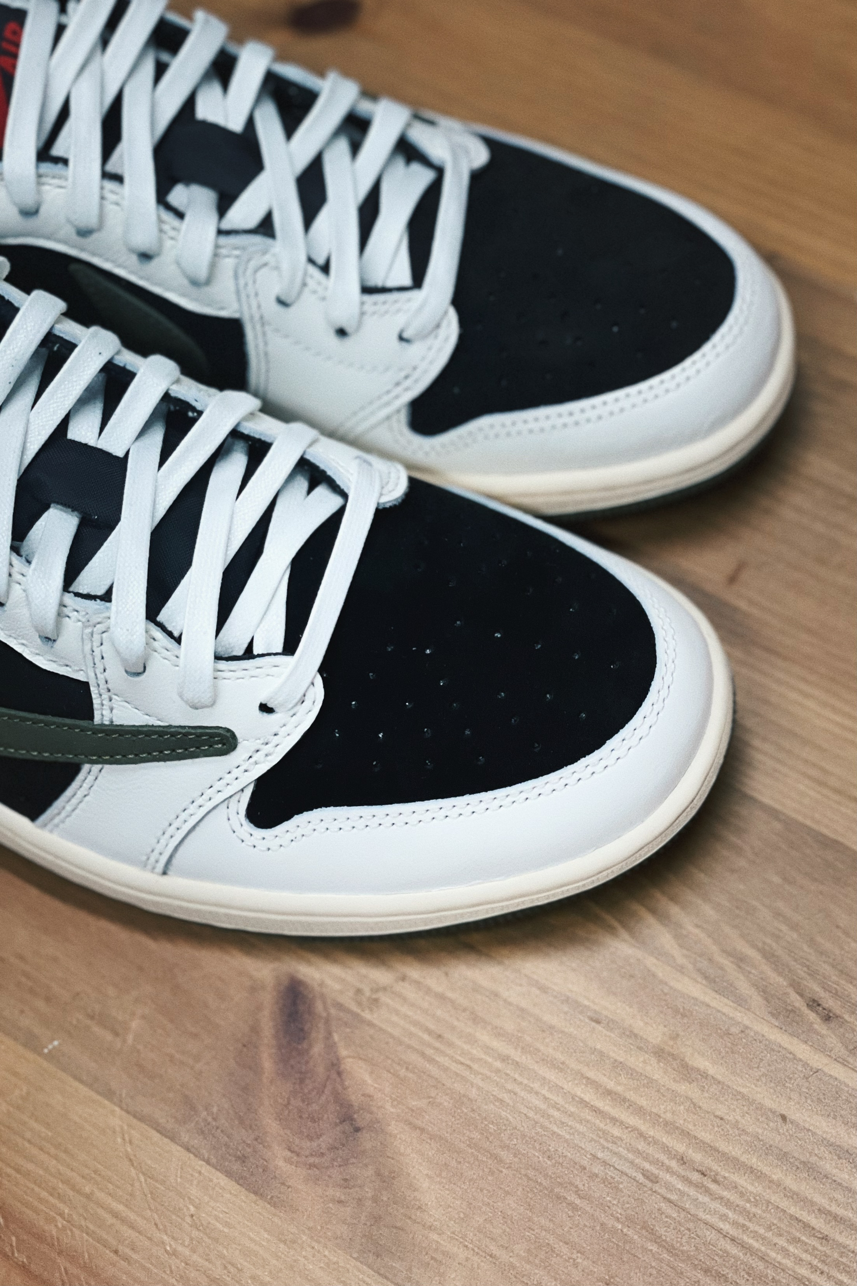 从2019年Jordan Brand携手Travis Scott合作, 以Air Jordan I 为蓝本,首次使用了「倒钩」设计手法 到2023年,双方以AJ1为蓝本,一共推出了5双倒钩 而这次,将会是这款鞋的最终章 - 这款Air Jordan I Low x Travis Scott "Medium Olive" 依旧延续着双方的「倒钩」,鬼脸等设计语言 特别之处在于这次的「倒钩」采用了橄...
