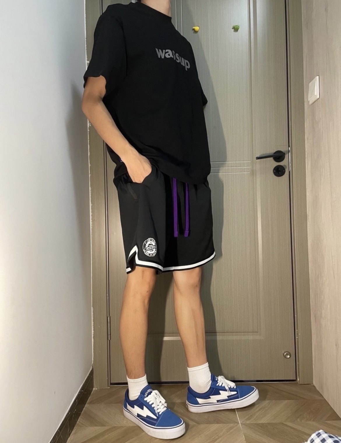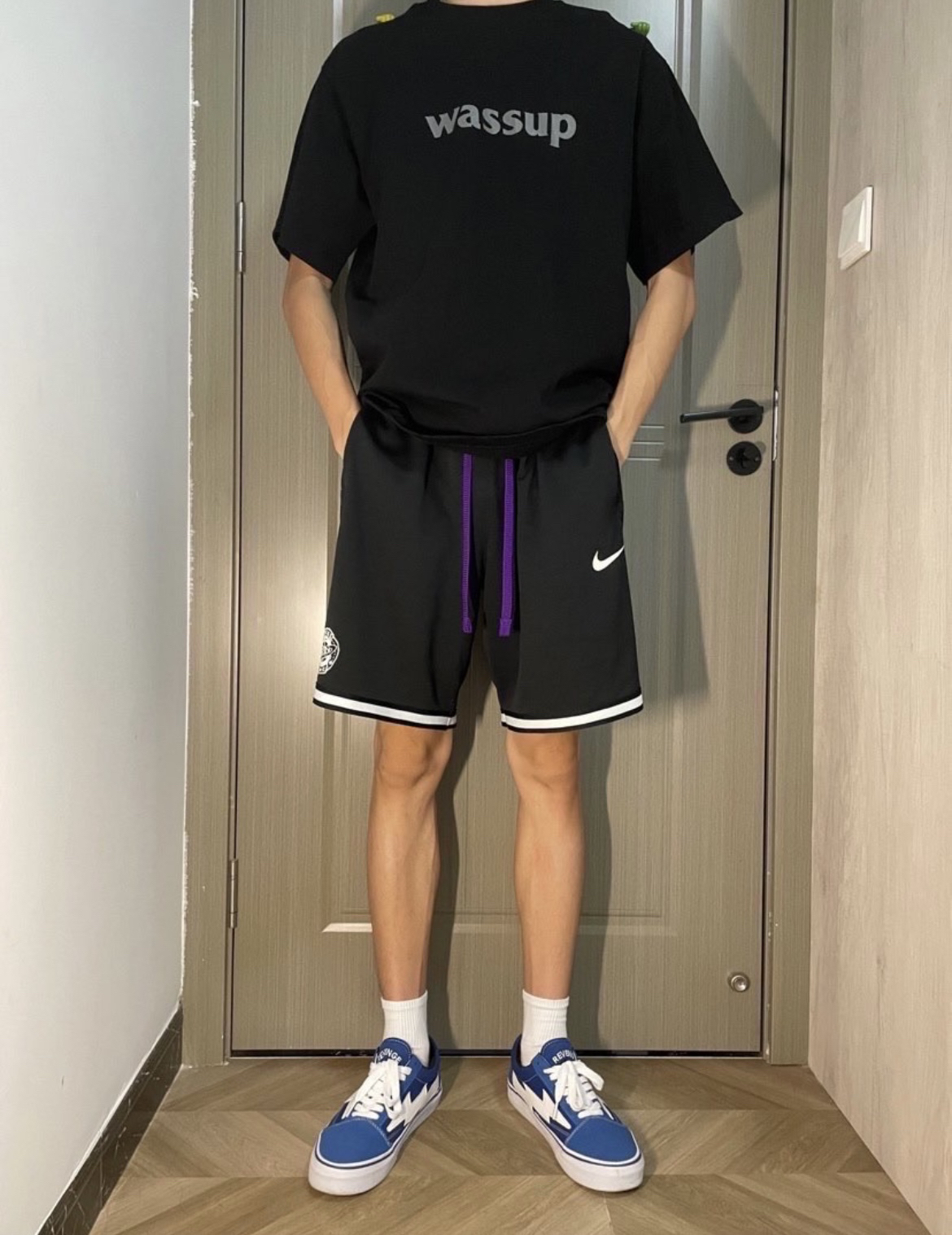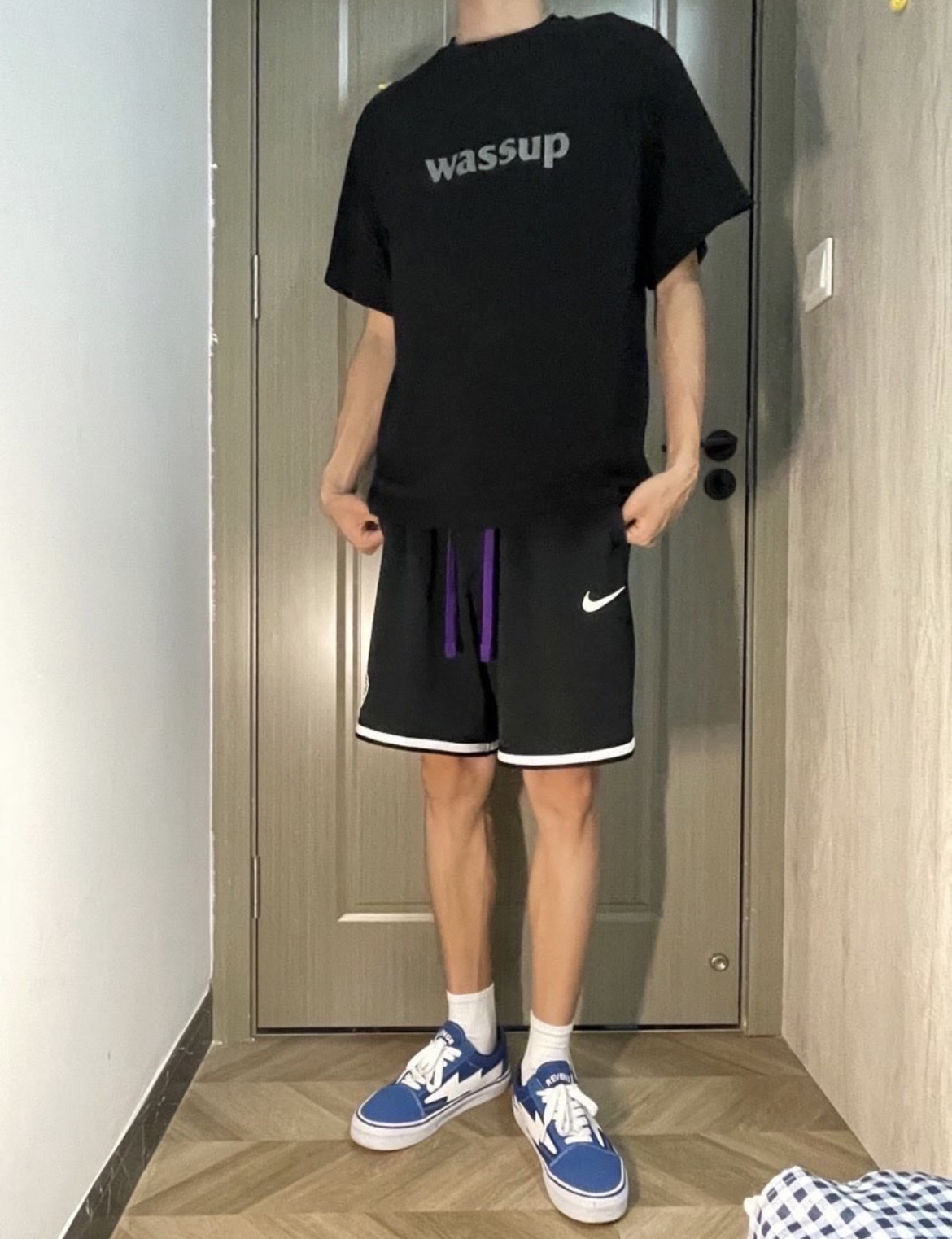 身高|体重: 🧍♂️ 穿搭风格:夏季的清爽搭配 👔 上衣:wassup 👖 下装:Nike DNA summer hoops 👟 鞋子:闪电风暴(国潮) 🎒配饰:🈚️