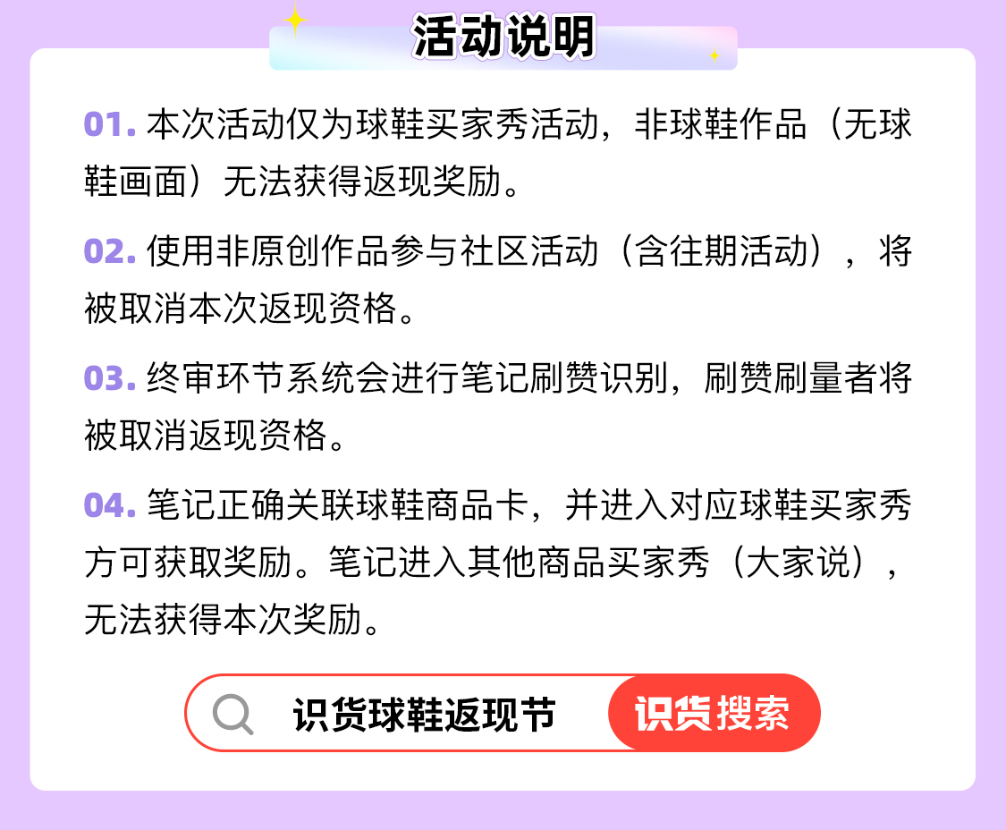 【活动规则 | 识货球鞋返现节】,由用户 识货活动官方 分享,来自浙江。这是一篇来自识货社区的真实用户分享笔记。