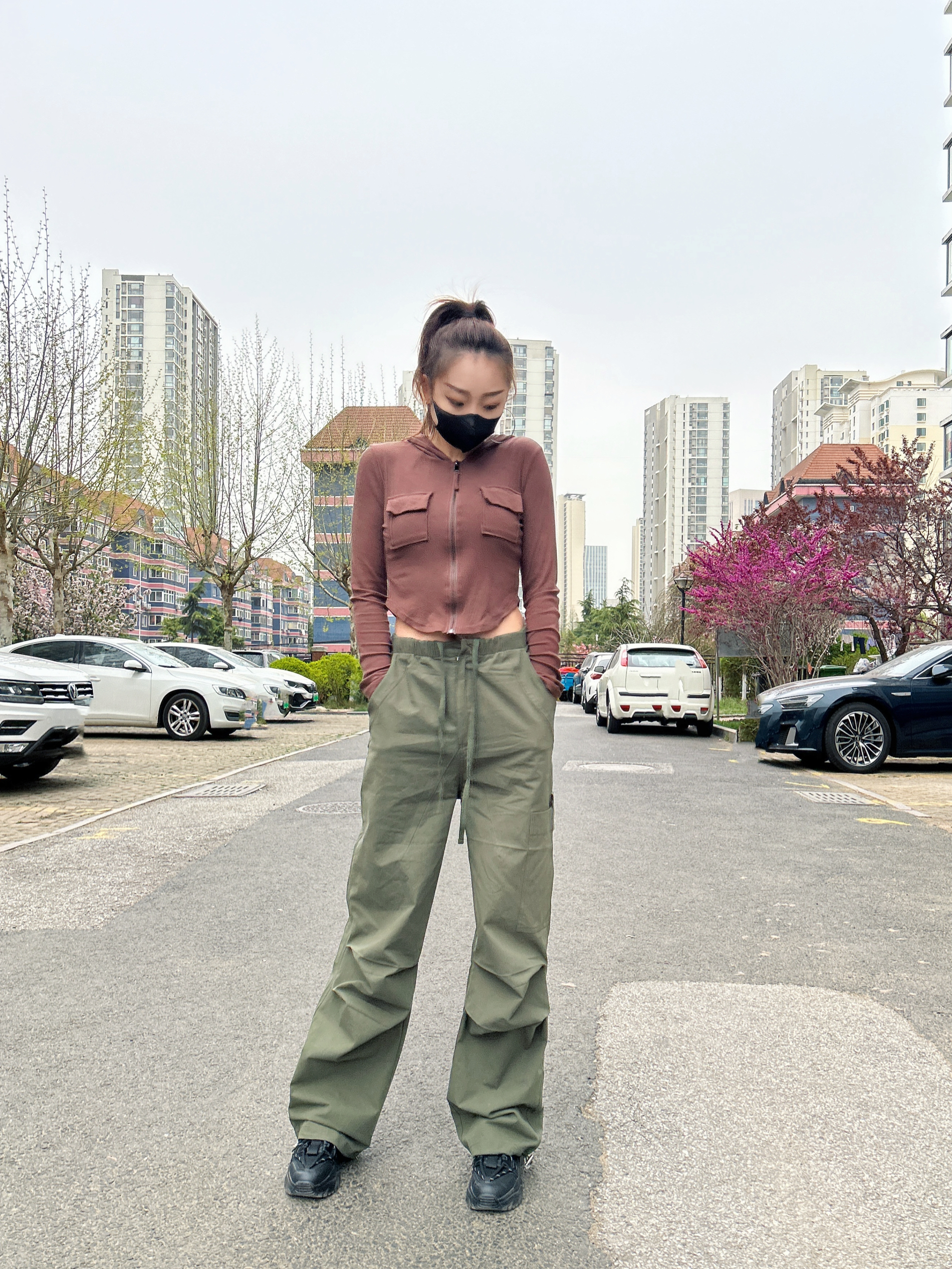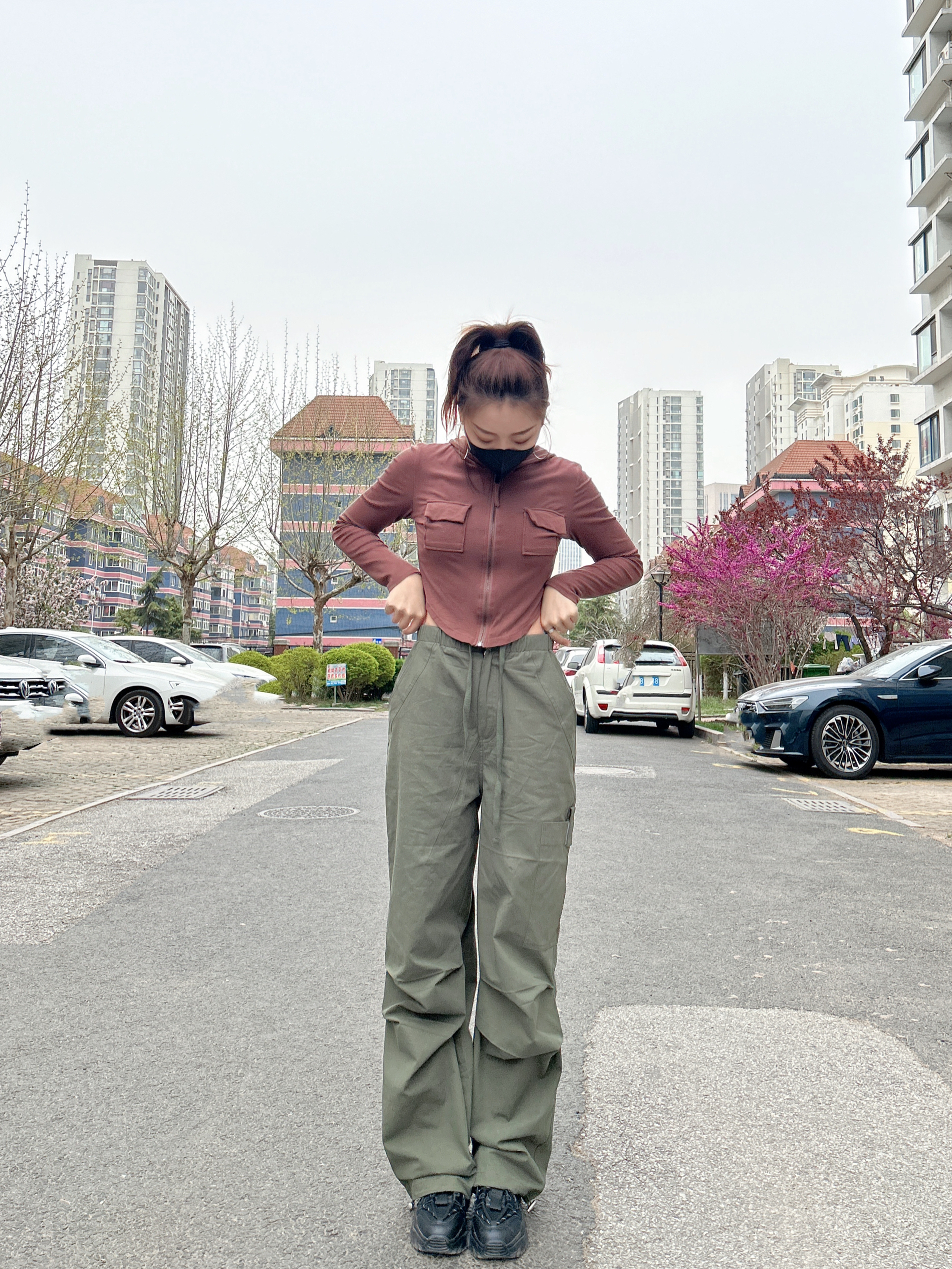 梨形身材也很适合辣妹穿搭,也就是上身瘦下身胖,那就把小蛮腰露出来,搭配一个阔腿宽松伞兵裤,不就完美了~ 工装风11Estranger家的裤子,男女同款都可以穿,版型很nice!底下穿一个厚底鞋,yyds! 喜欢美式街头风的宝子可以入了!