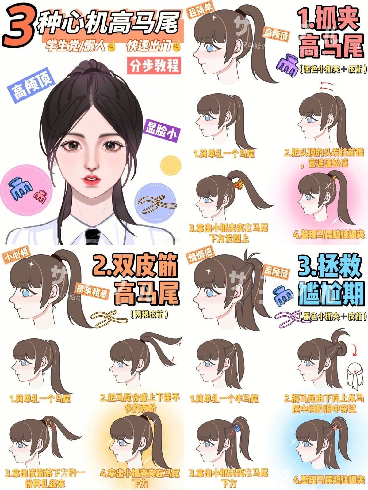 ❤️想要变美是每个女孩子的追求,谁还不想被夸是美女呀! ❤️所以这些变美小tips必须要分享给你们: — 1️⃣高马尾 高马尾加校服看起来都超有活力!给大家分享三种扎高马尾的方法,学会两分钟就能轻松扎出氛围感高马尾,整个人会显得更元气可爱~ — 2️⃣小鹿眼 经常熬夜黑眼圈都出来了,眼睛还没有神,多亏有这个眼膜,把它贴到眼下十分钟,坚持用个几次,黑眼圈和眼下的小细纹都少了很多,眼睛看起来也更有神了...