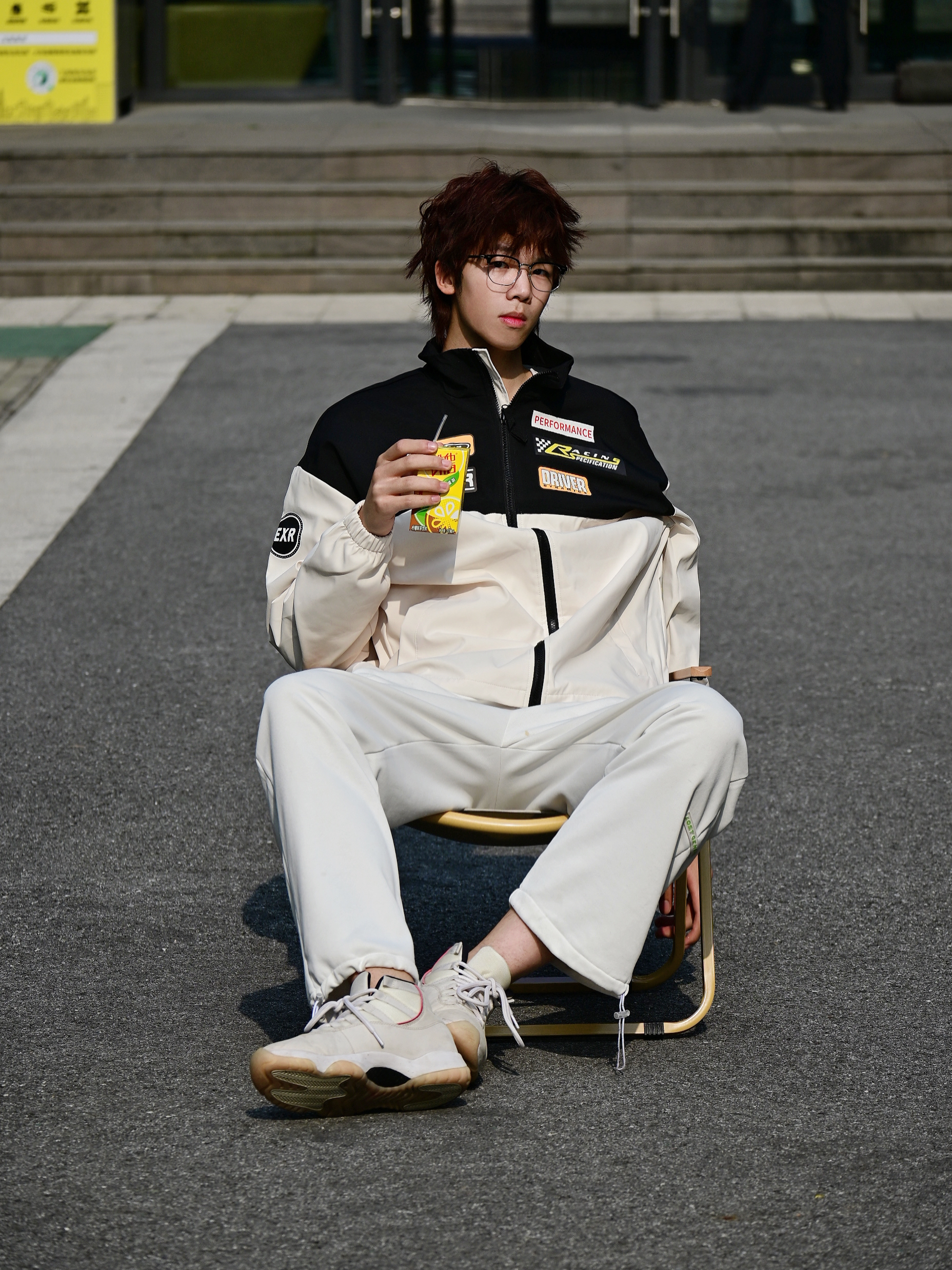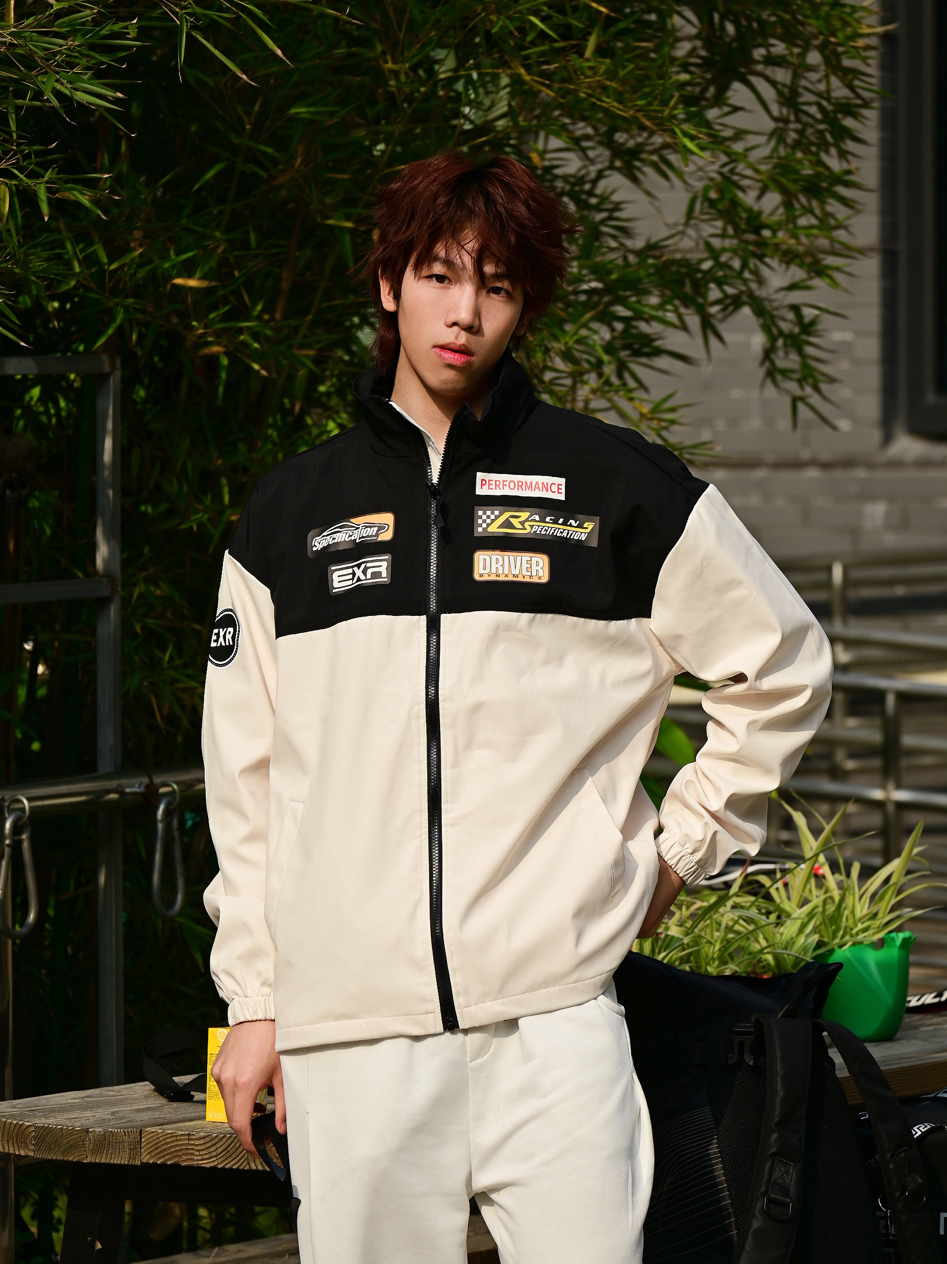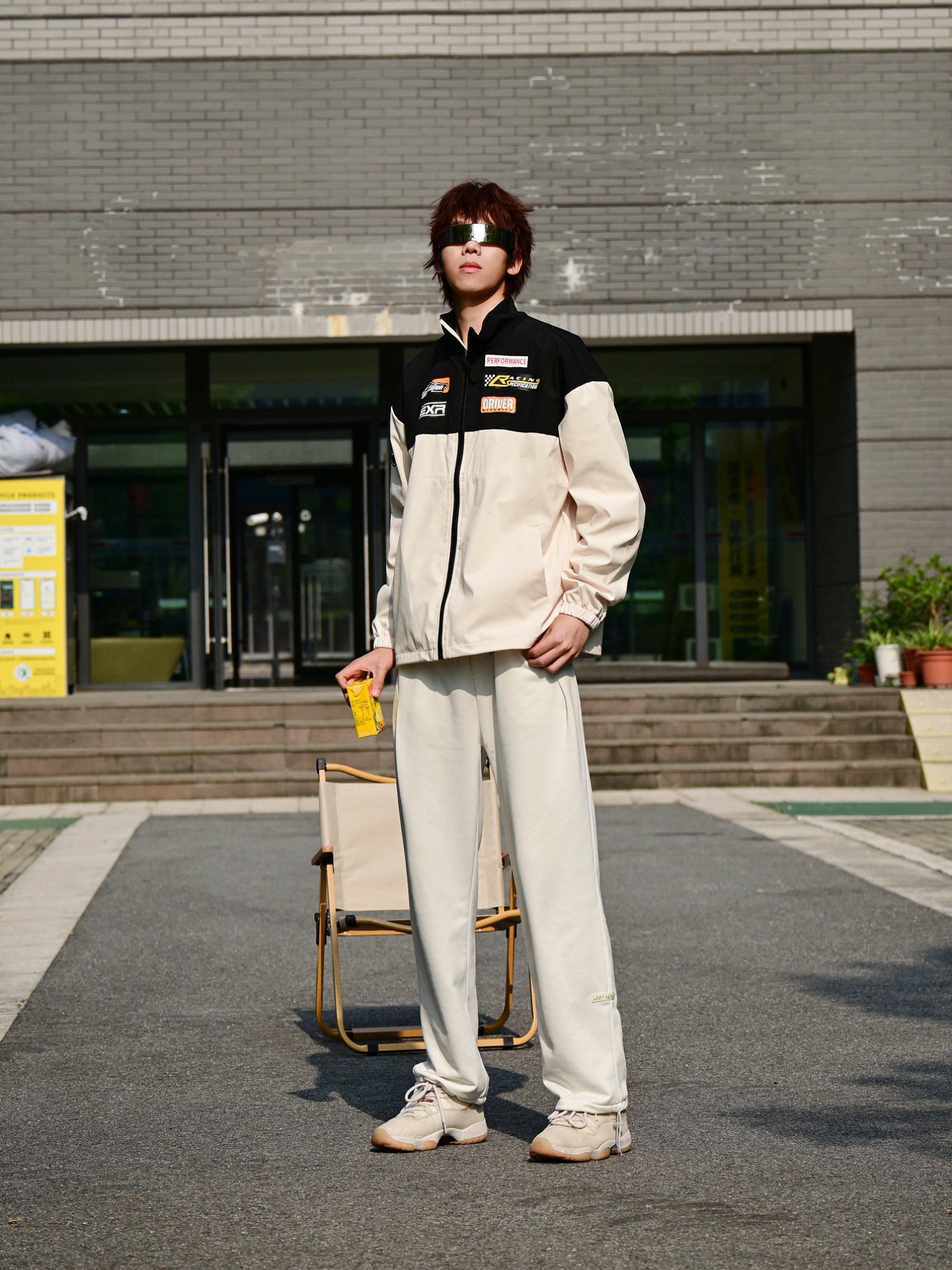 馋了好久的赛车服风格外套🧥终于到了 选择的是杏色的款式哦 上身真的会比单品好看诶 黑色搭配浅色再加上胸前的logo真的很百搭吸睛 类似防晒服厚度,特别适合春夏之交哦 版型宽松,188 67选择xl足够啦 搭配的是白色的百搭款卫裤 还有白色的aj11兔八哥 👔上衣: EXR 👖裤子:十九秋 👟鞋子:aj11 🎧配饰: CAMEL骆驼 椅子 身高:188...