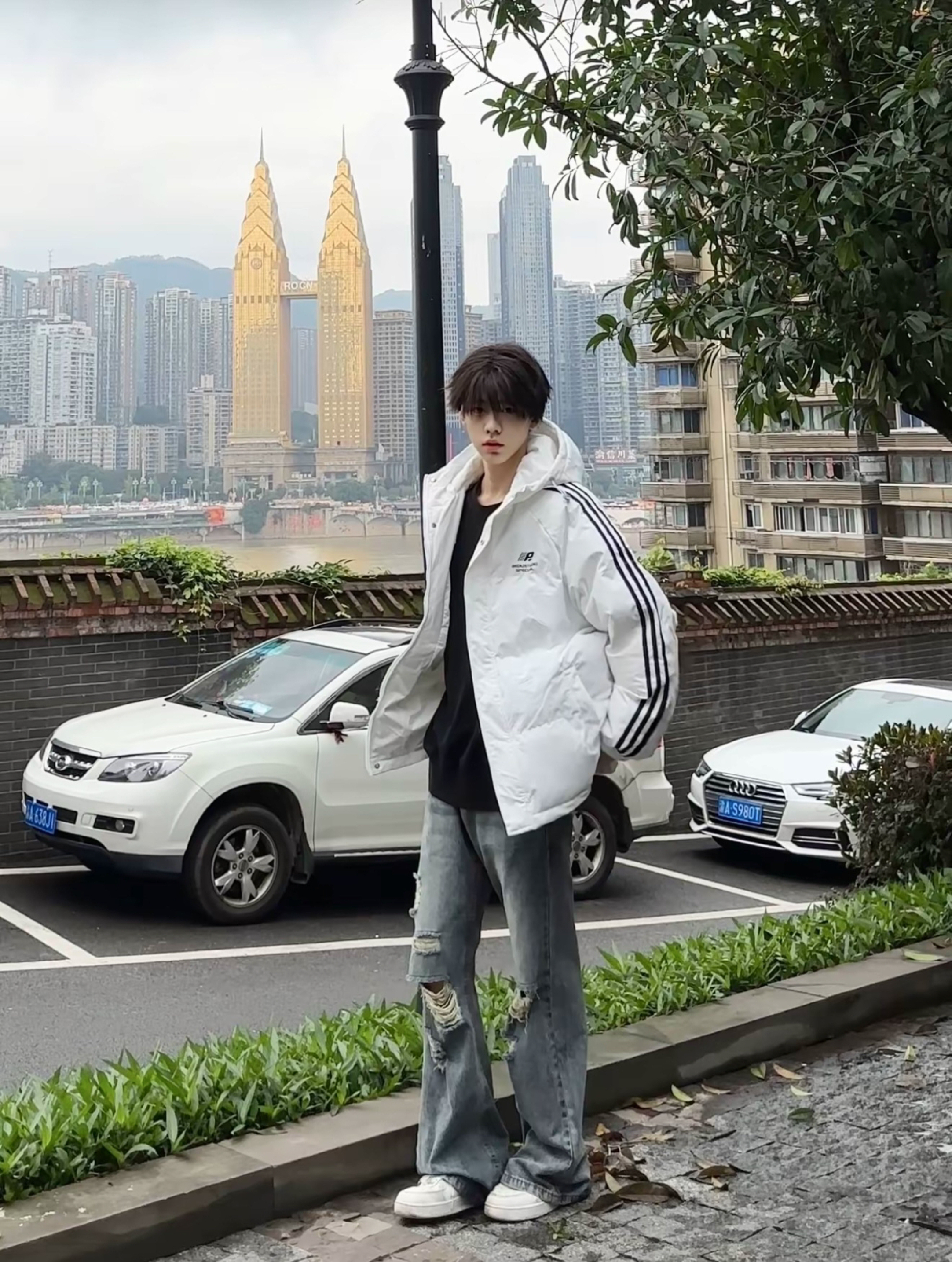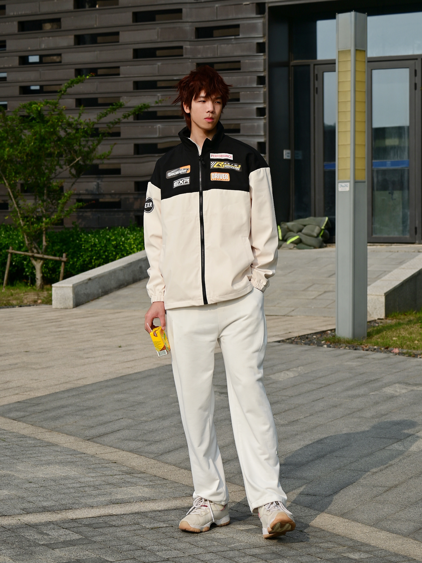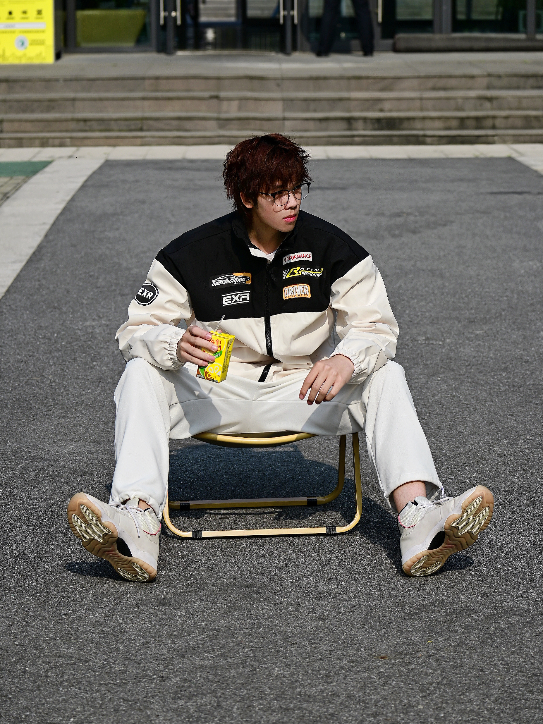 馋了好久的赛车服风格外套🧥终于到了 选择的是杏色的款式哦 上身真的会比单品好看诶 黑色搭配浅色再加上胸前的logo真的很百搭吸睛 类似防晒服厚度,特别适合春夏之交哦 版型宽松,188 67选择xl足够啦 搭配的是白色的百搭款卫裤 还有白色的aj11兔八哥 👔上衣: EXR 👖裤子:十九秋 👟鞋子:aj11 🎧配饰: CAMEL骆驼 椅子 身高:188...