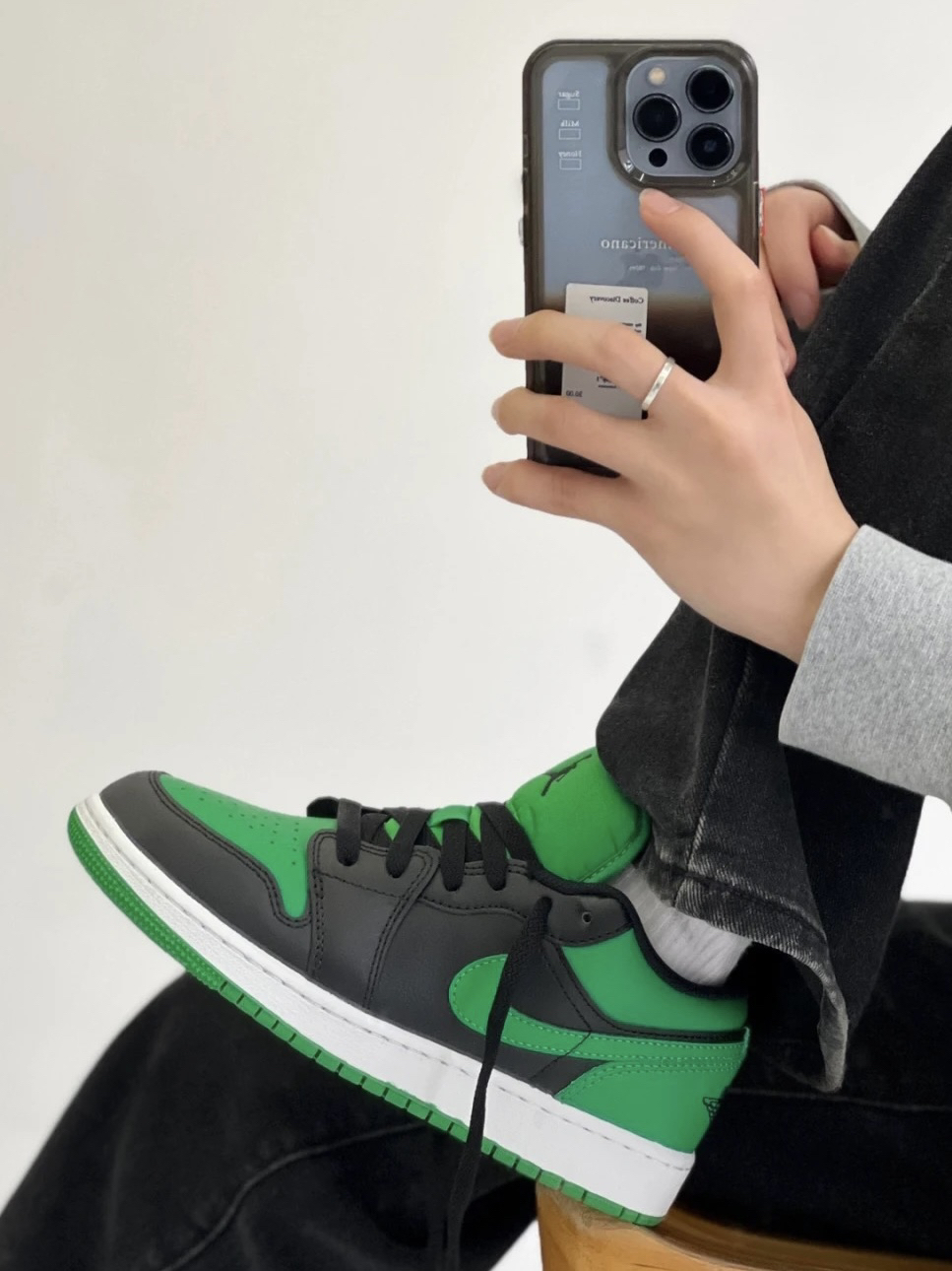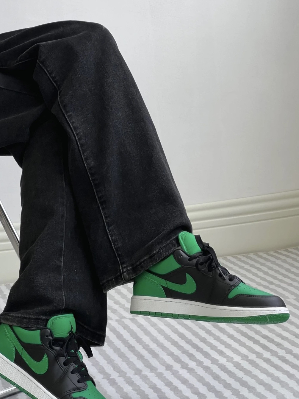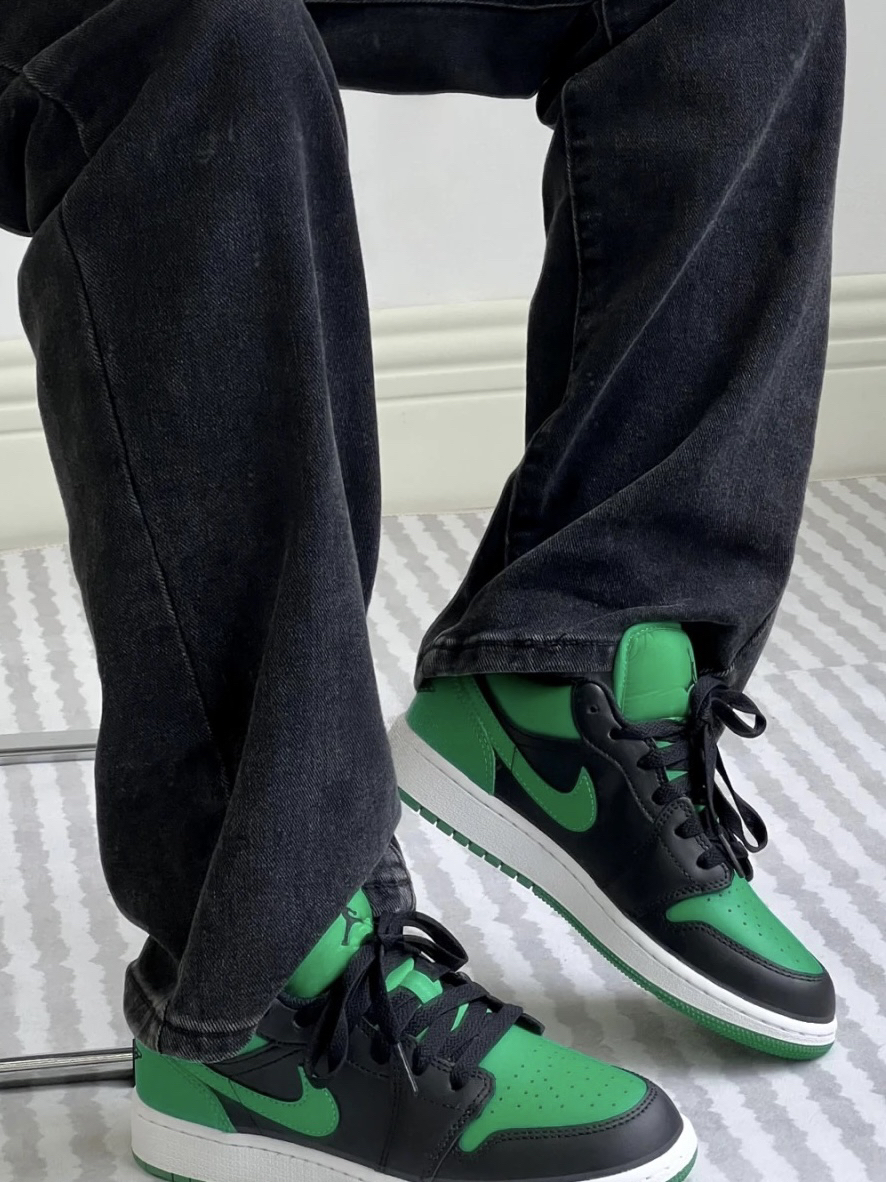 新出的 AJ1 low 黑绿配色 上脚真棒 穿的时候要漏出鞋舌 Jordan Logo 真的帅酷帅酷!!快冲
