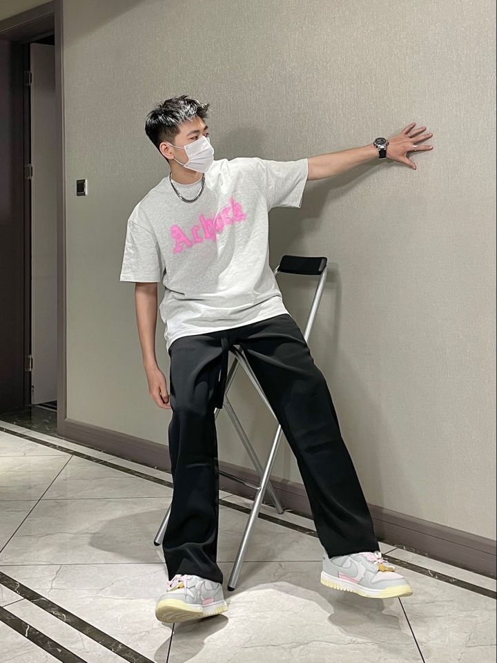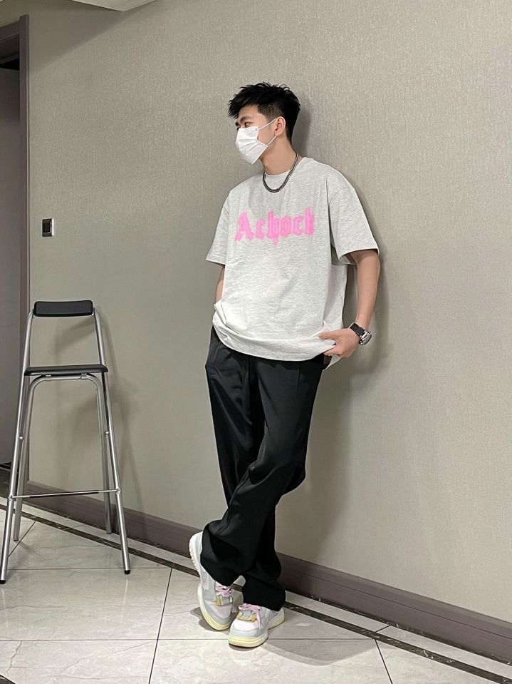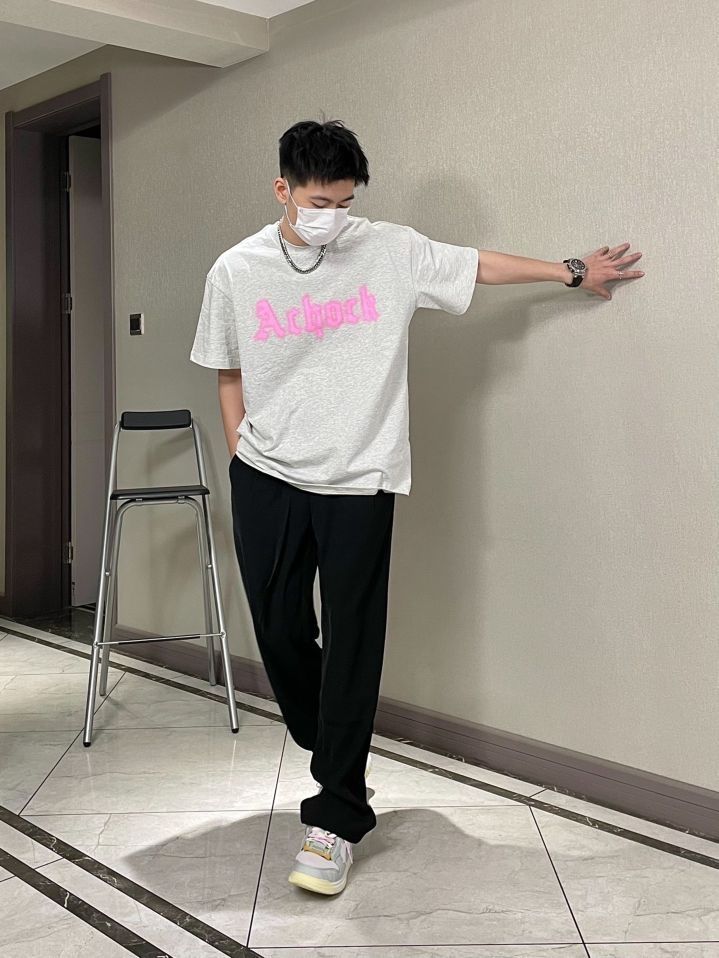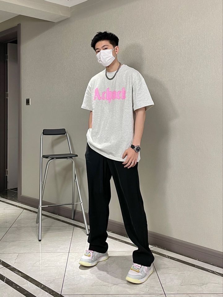 🌈灰色短袖➕黑色阔腿裤,又酷又日常的穿搭简直不要太帅喔~👏🏻 🌈自带高冷感的颜色怎么搭都很有感jio~带上粉色的字母logo炒鸡高级好看,这个配色有点爱的💓,不仅🆒还街头感十足~ 🌈搭配超有垂感的黑色阔腿裤,很显瘦~✌🏻,有点纸片人穿搭既视感~简单又随性~😎 (图片来自博主:三羊不会穿)
