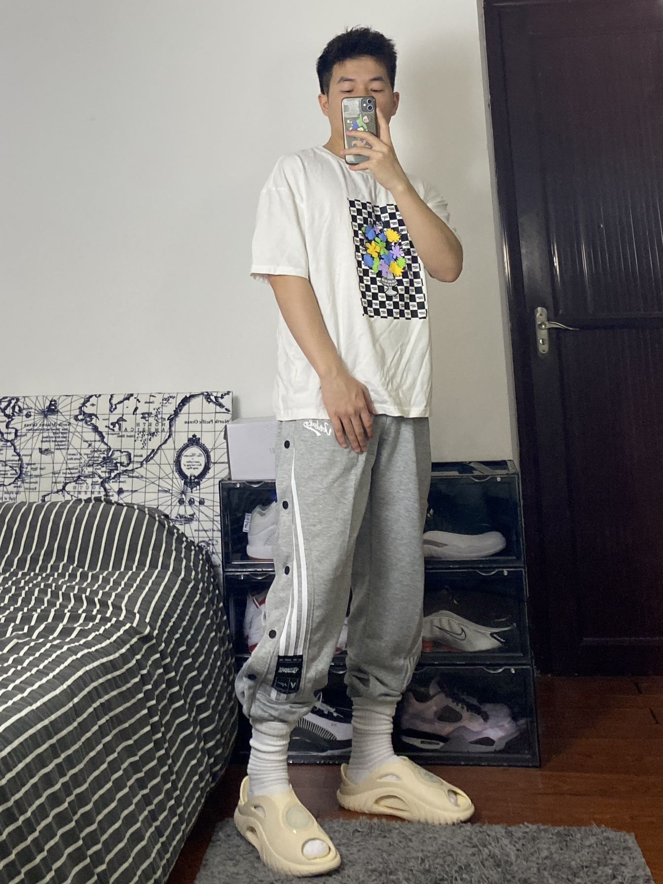 hi!这里是尼克♟ 卫裤真的买了好多条 之前买纯色比较多 最近入手一件排扣卫裤 侧边的条纹设计蛮修饰腿型 卫裤材质也很舒服