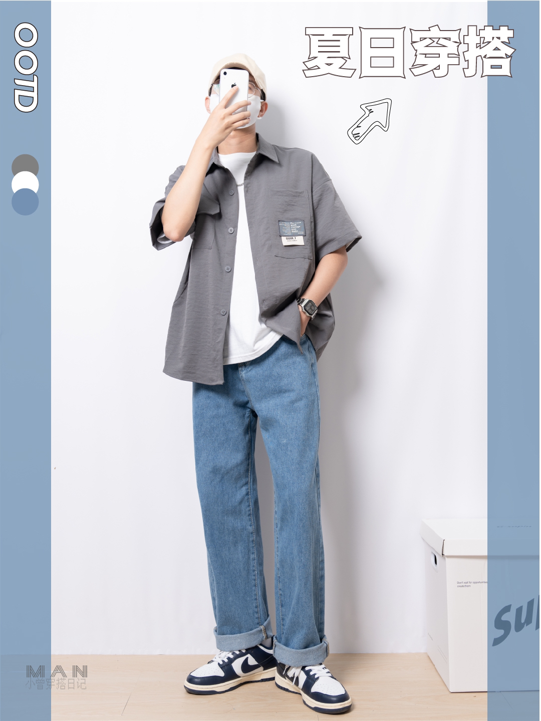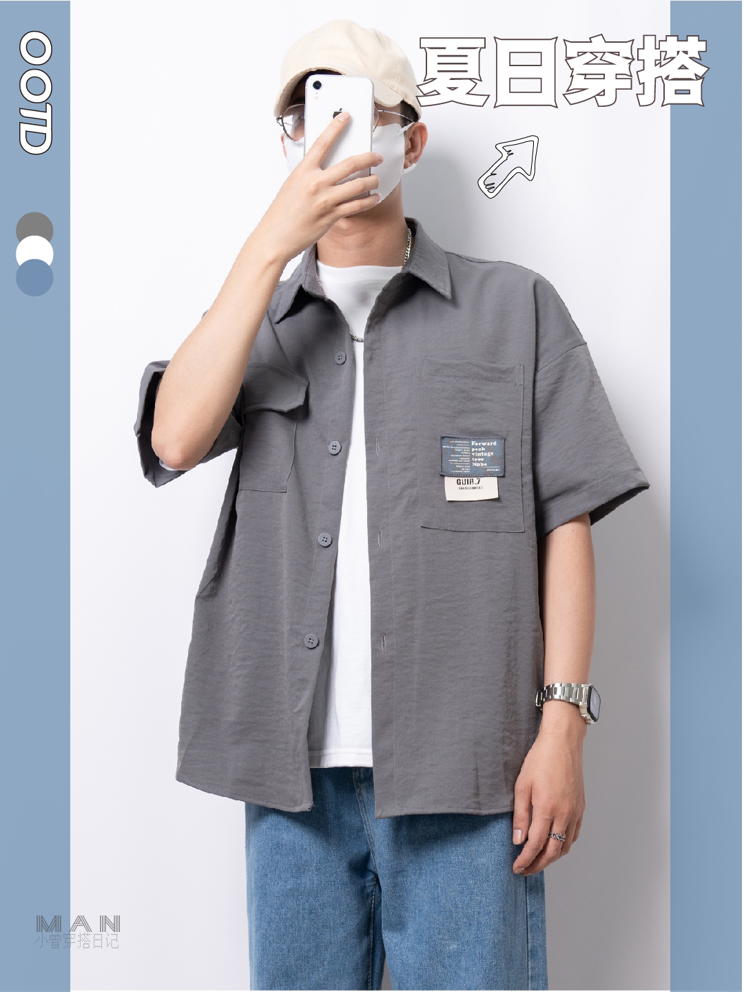 Hellohello,小伙伴们大家好,欢迎👏来到小曾的穿搭频道 - 今天给大家带来中性色的穿衣搭配 - Look-烟灰色短袖衬衫+白色短袖T恤+中蓝色牛仔直筒裤 - 烟灰色衬衫胸前口袋处有贴标设计,是设计的一大亮点 - 中蓝色牛仔裤颜色和版型适合大多数搭配场景 - 更多穿衣搭配技巧,可以互相切磋哦~ - #夏季穿搭 #男生穿搭 #日常穿搭 #校园穿搭 #...