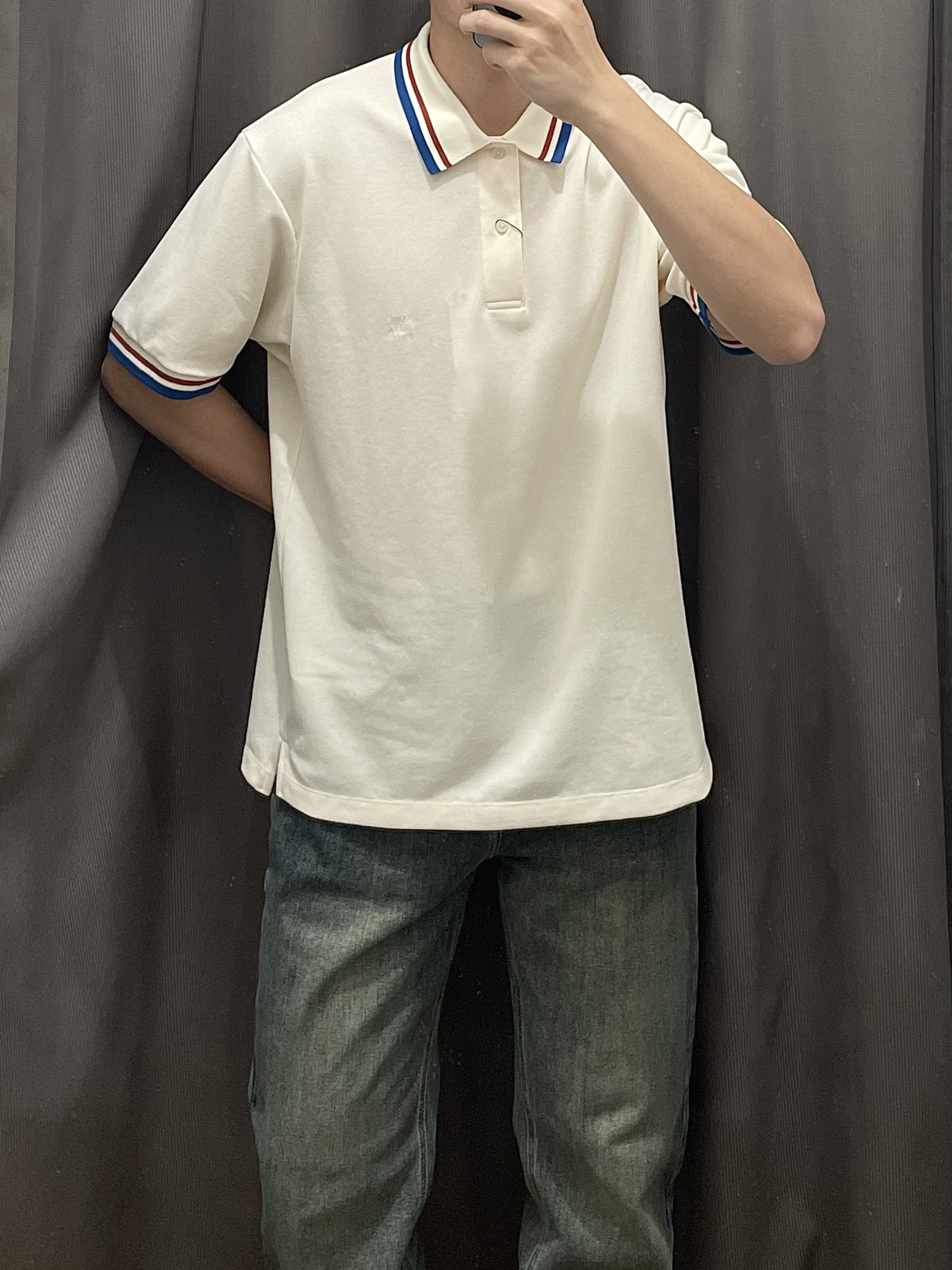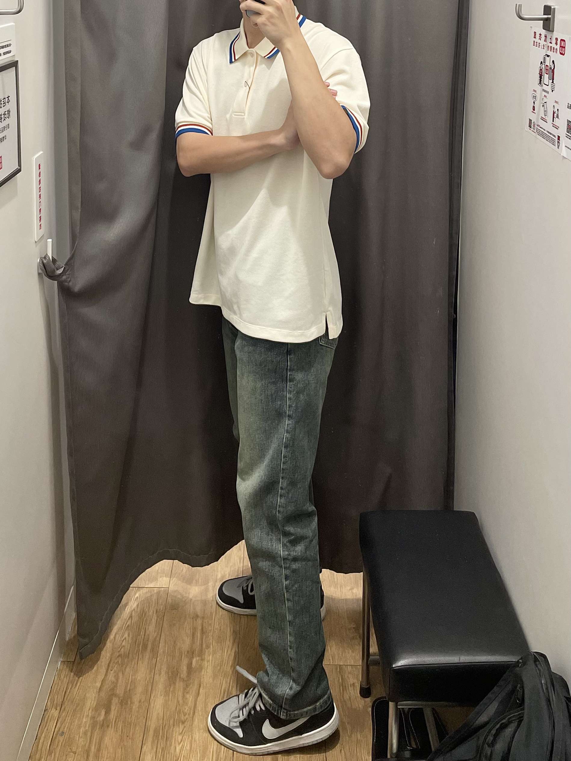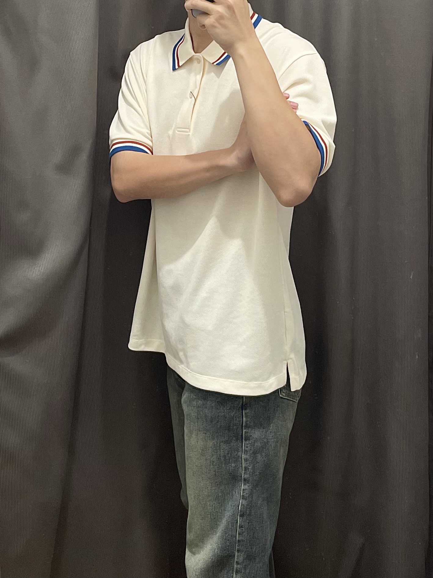 五一出行穿什么呢!!! 当然是优衣库的袖口条纹Polo短袖 米黄色的色调 不会显老! 害怕穿Polo显老的帅哥们可以看过来了‼️ 搭配黄泥色牛仔裤真的太好看了吧!显瘦显瘦腿型 绝了 夏季必备单品🍃