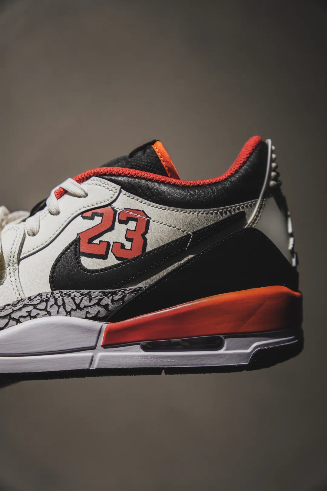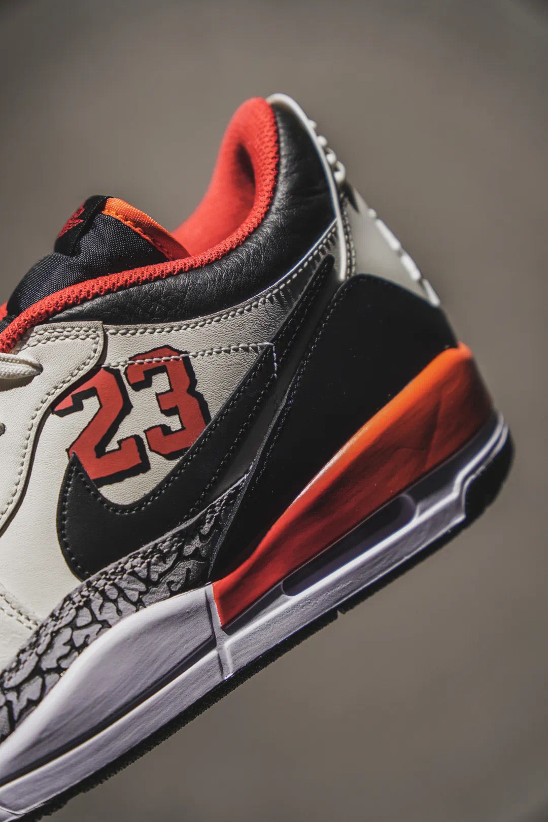 设计混搭采撷自:AJ3/AJ1/ALPHA FORCE,优质鞋面结合。中足固定带稳定贴合后跟,加入可视AIR缓震技术造就出众缓震效果。 采用中足固定带、爆裂纹细节等经典元素,旨在致敬迈克尔·乔丹篮球时代。