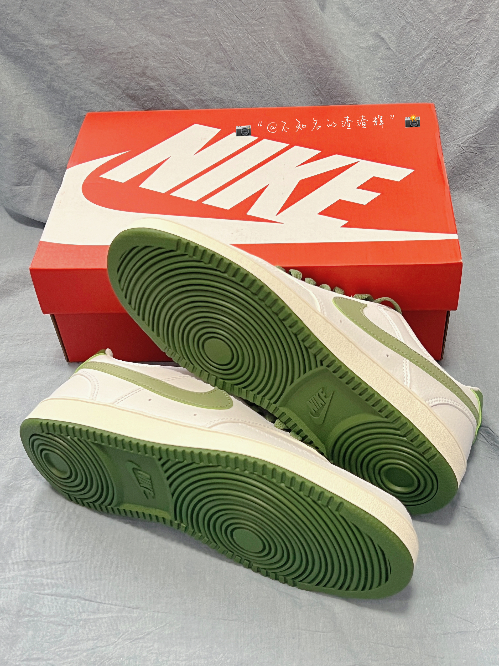 🍉:Nike Court Vision 1 防滑 耐磨 低帮 板鞋 男女同款 白绿 🍉:这双鞋子整体以白色、绿色组成,配色真的超级清新,鞋身采用优质皮革材质,质感舒适,鞋头的出气孔设计,透气舒适,更加适合夏季穿,鞋舌、后跟都有着“Nike”字样 🍉:颜值超高的一款Court,适合夏天穿,做情侣鞋也是很不错的选择 🍉:尺码推荐:正常尺码