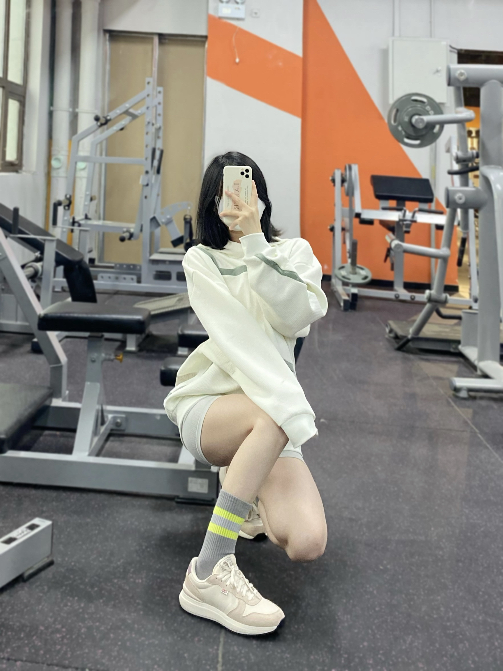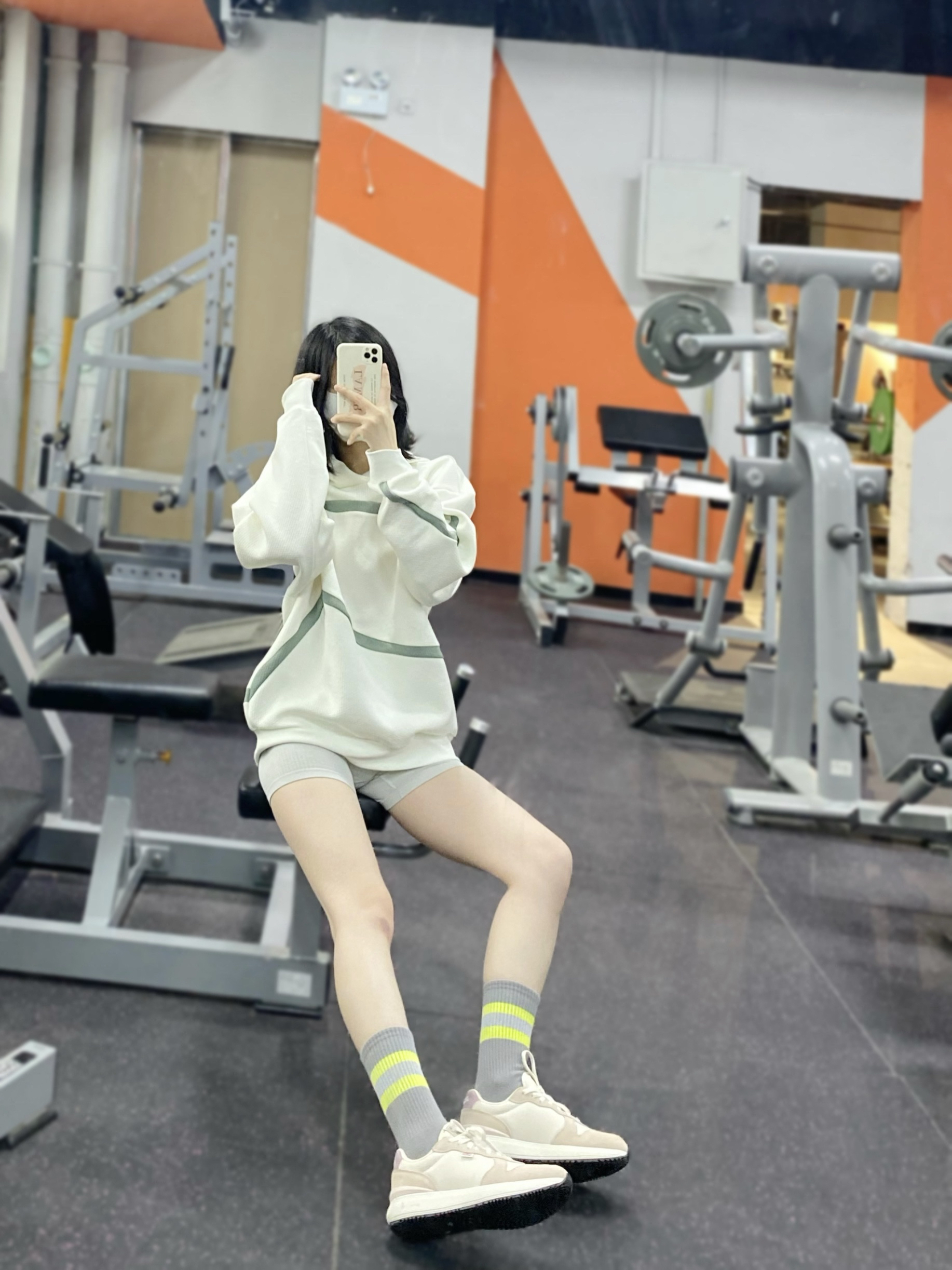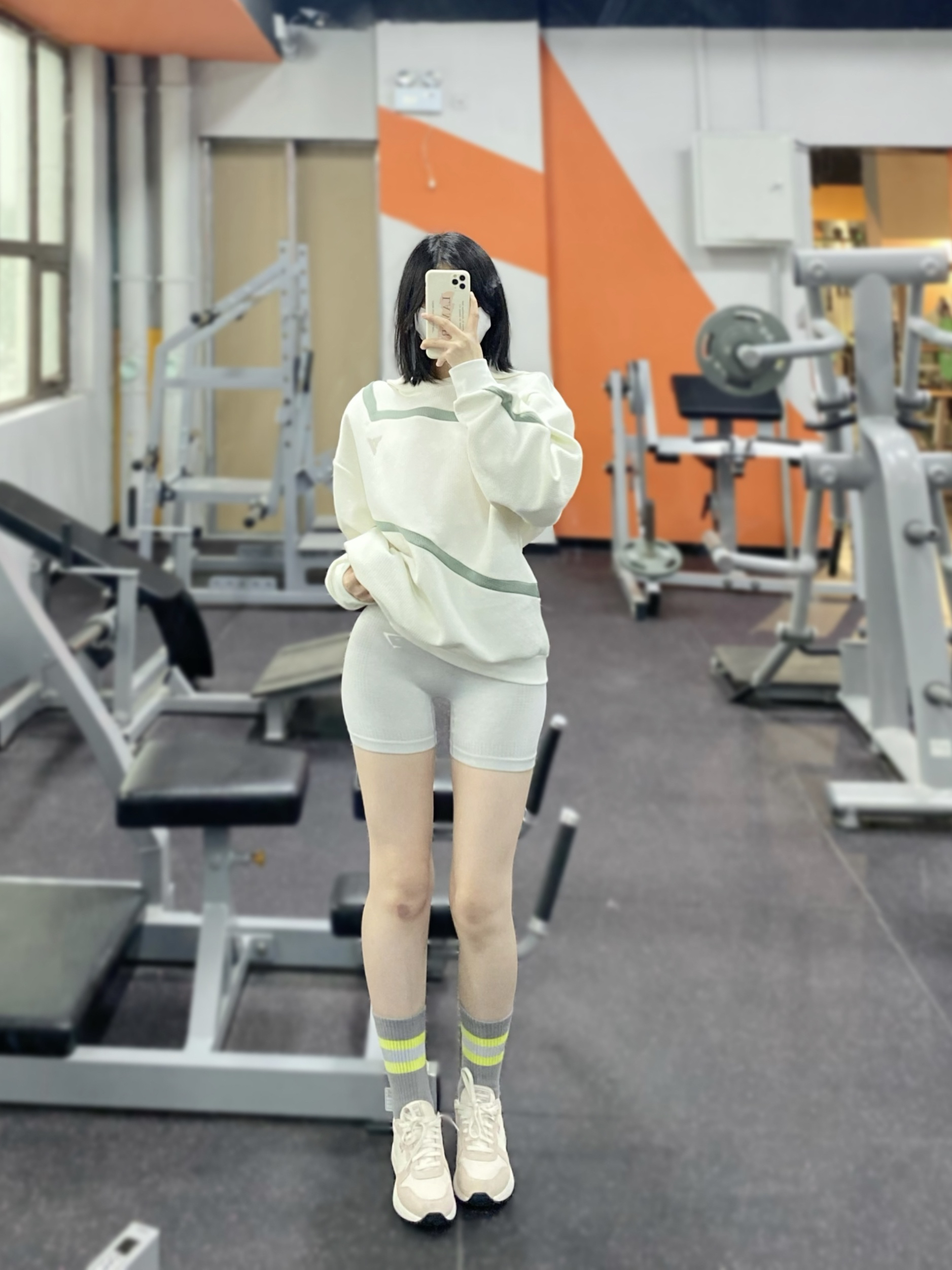 阿迪达斯卫衣配训练短裤yyds 再搭配一双斯潘迪跑鞋 整体白灰配色 干净清爽 开始做有氧运动啦