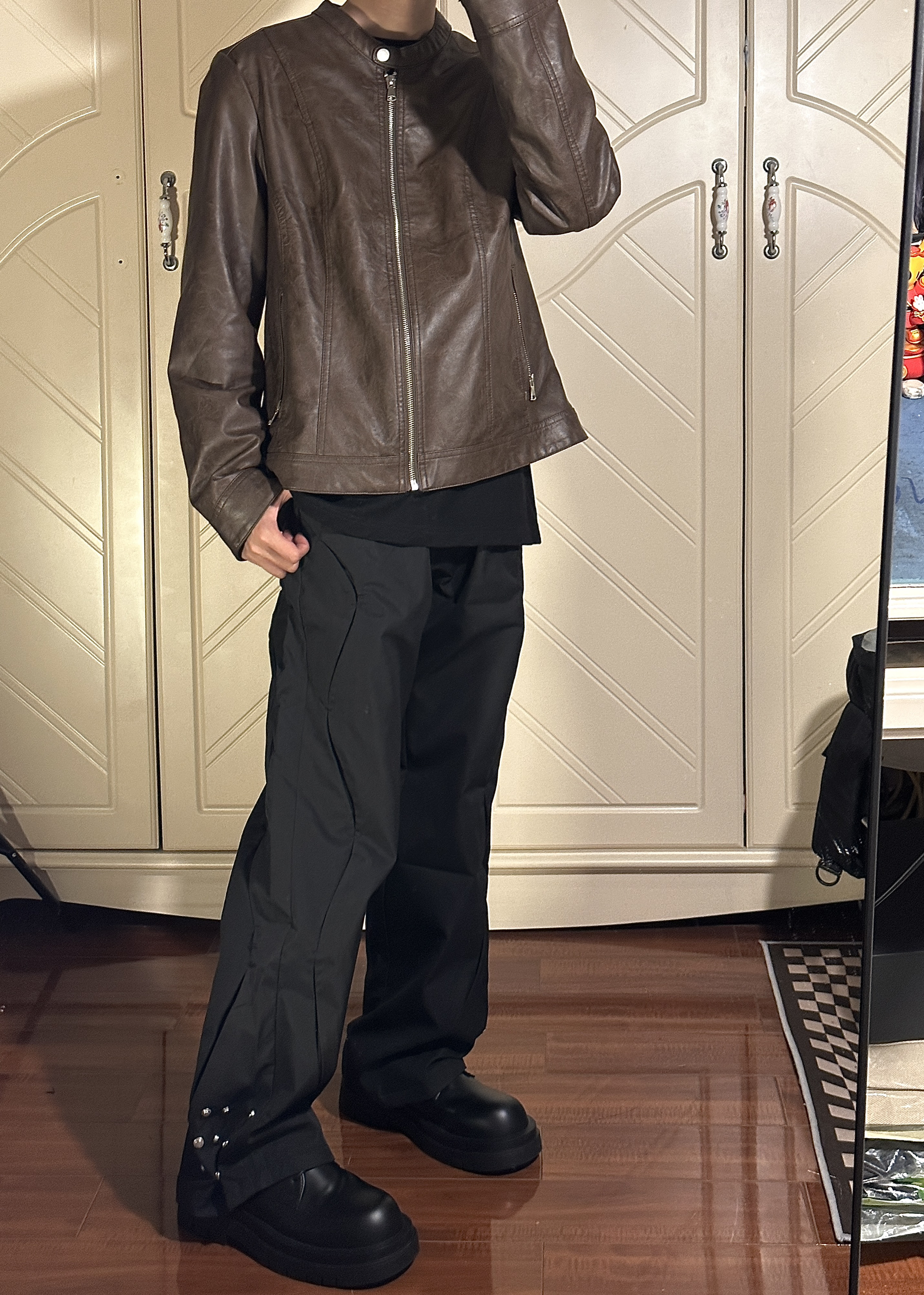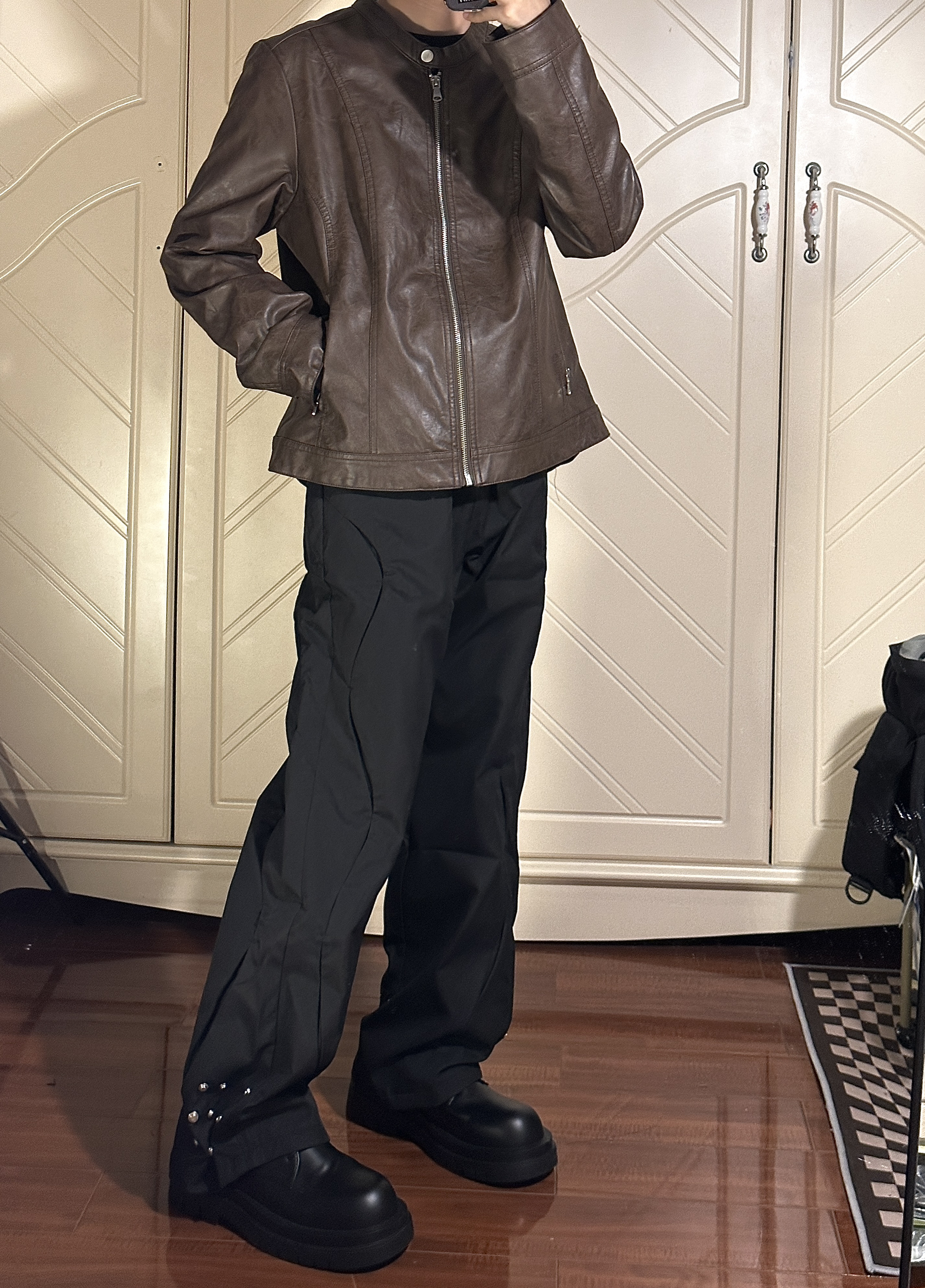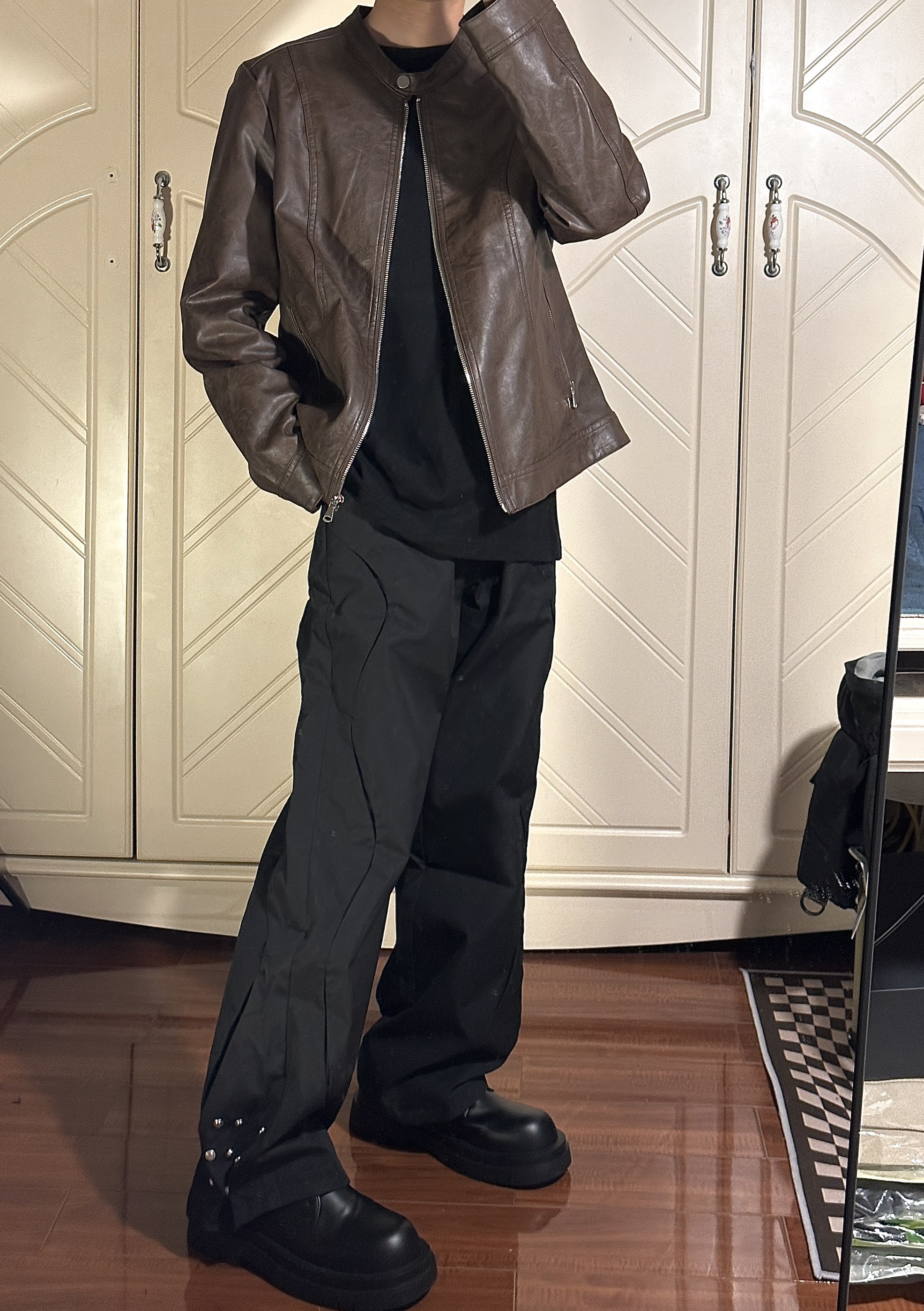质感很好,面料篇中等,版型微宽松,很好搭配! 165/45穿s码 👖:匪帮gofb