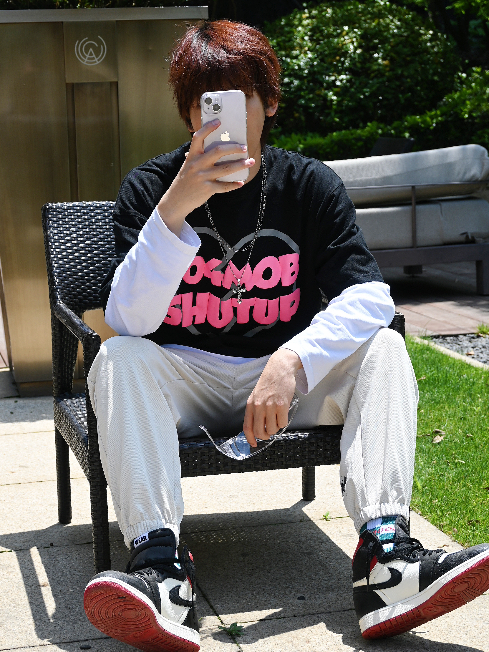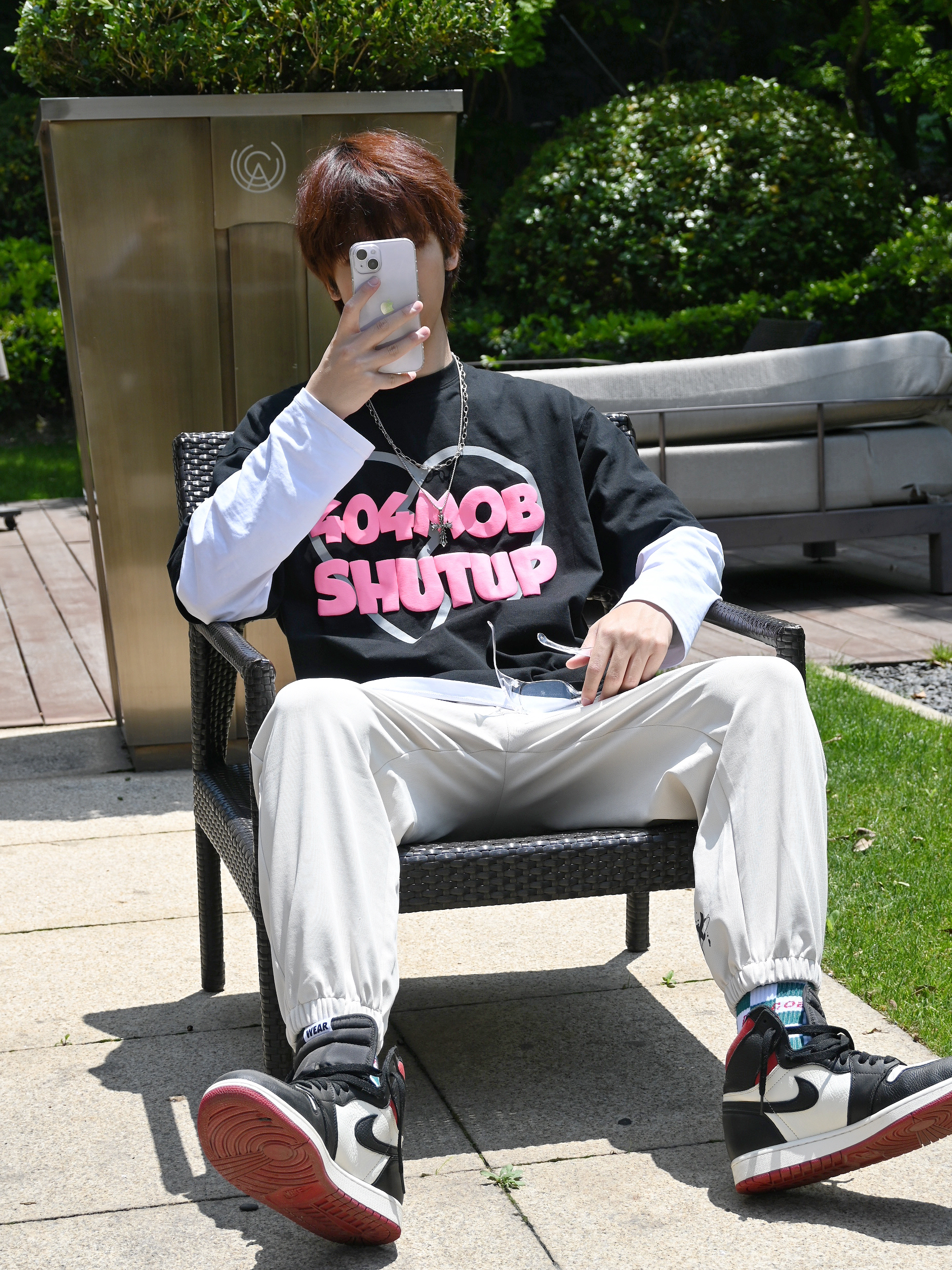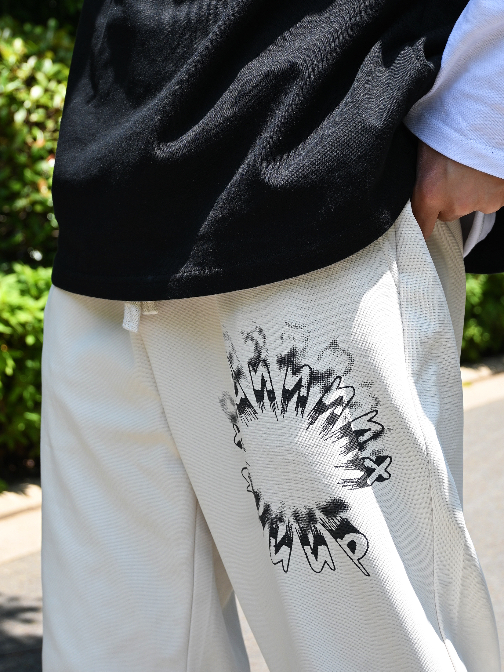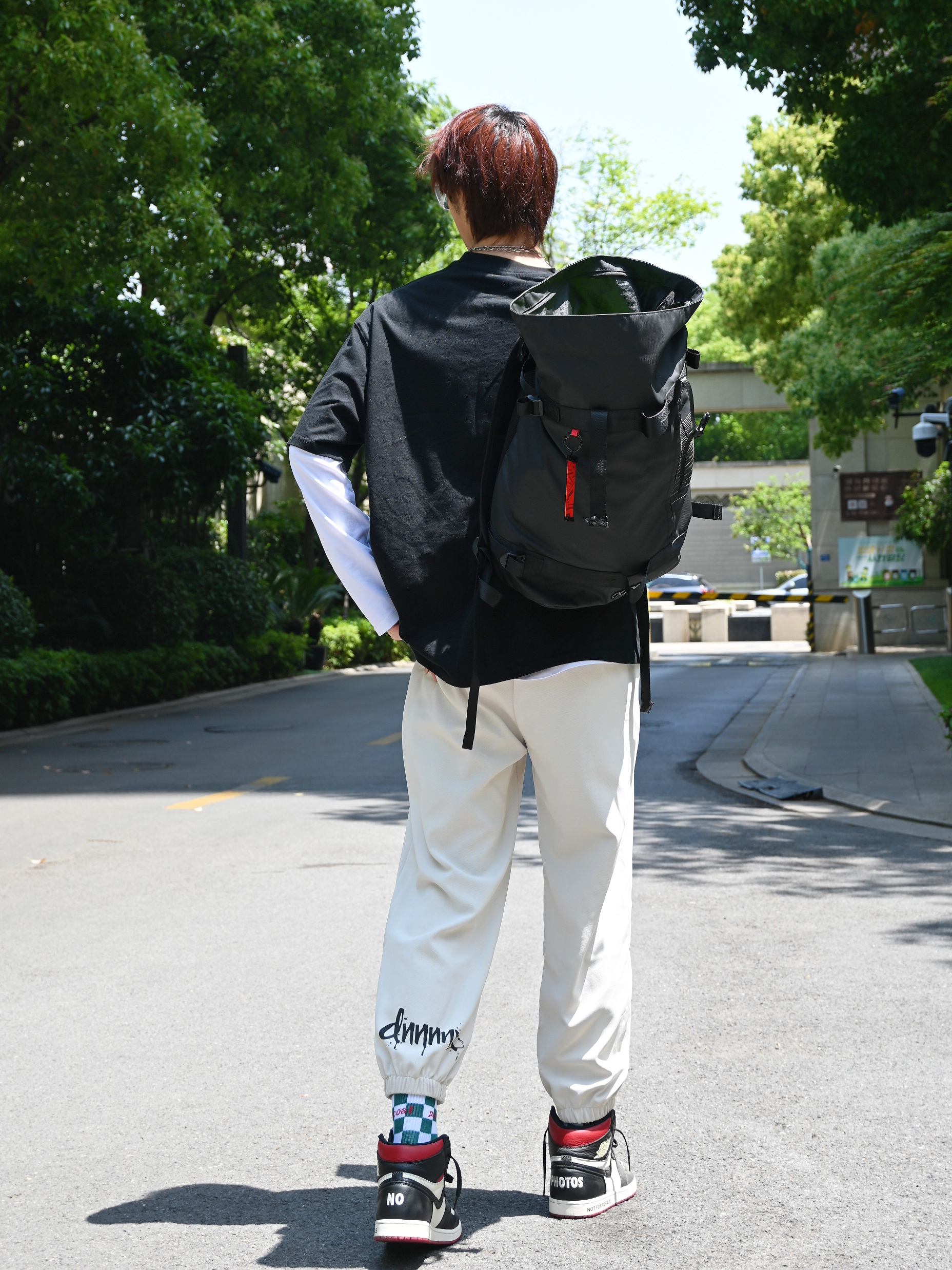 长袖T恤和短袖T恤叠穿真的超好看 白色的长袖T恤和黑色的短袖T恤超有层次 搭配的是 dnnnnx 的米白色束腿裤 学生党超级推荐来一条这种百搭的卫裤 束腿裤搭配长袜➕球鞋👟真的超级好看 这个天气☁️超级适合穿哦~ 188 67 xl合身哦~ 👔上衣: 404MOB GANG 👖裤子: dnnnnx 👟鞋子:aj1禁止转售 🎧配饰:🈚️ 身高:188...