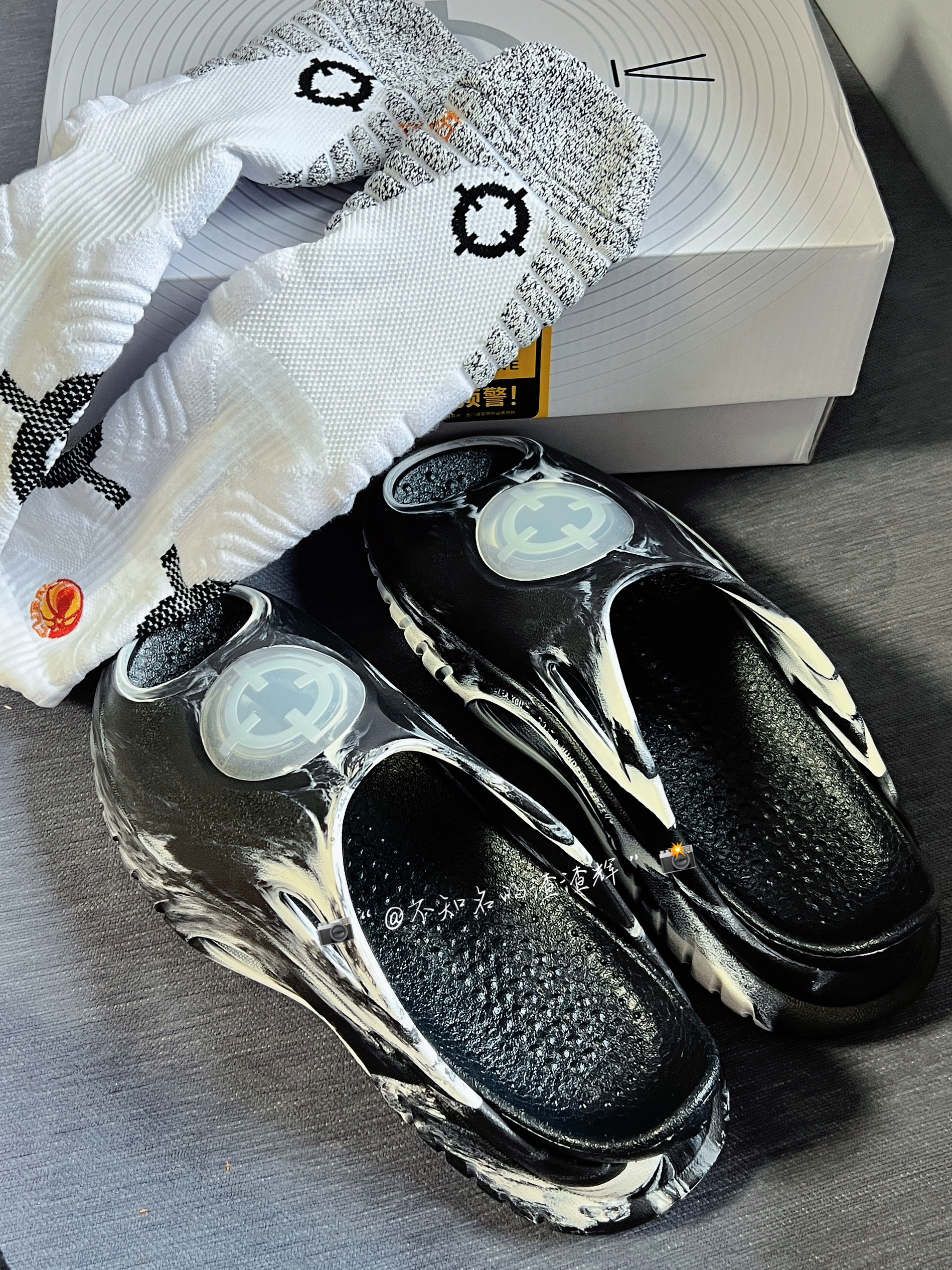 这款准者的鲨鱼鞋实物质感真的好,做工精细,最主要的是脚感真的好 搭配上这款准者专业级追云1的篮球袜🧦,透气舒适 黑白色拼接也比较耐脏 还有着很不错的增高效果!!!