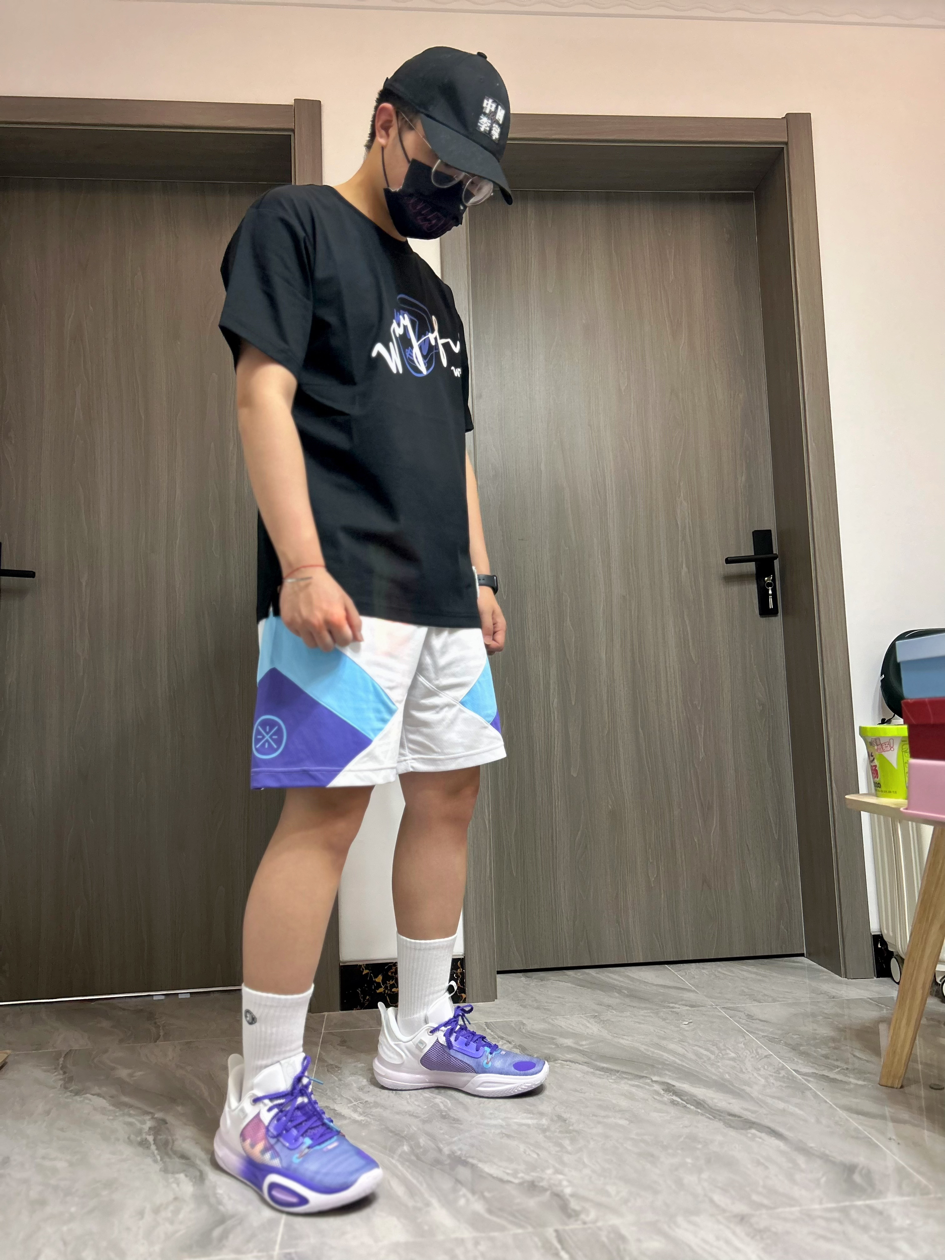 翻出一条去年买的球裤,和脚下的这双全城11雪城可以说是非常呼应了,我那会还管这条球裤叫黄蜂配色呢,今天就改名吧。另外,我建议配一双纯白的中长袜就可以了,效果还不错。