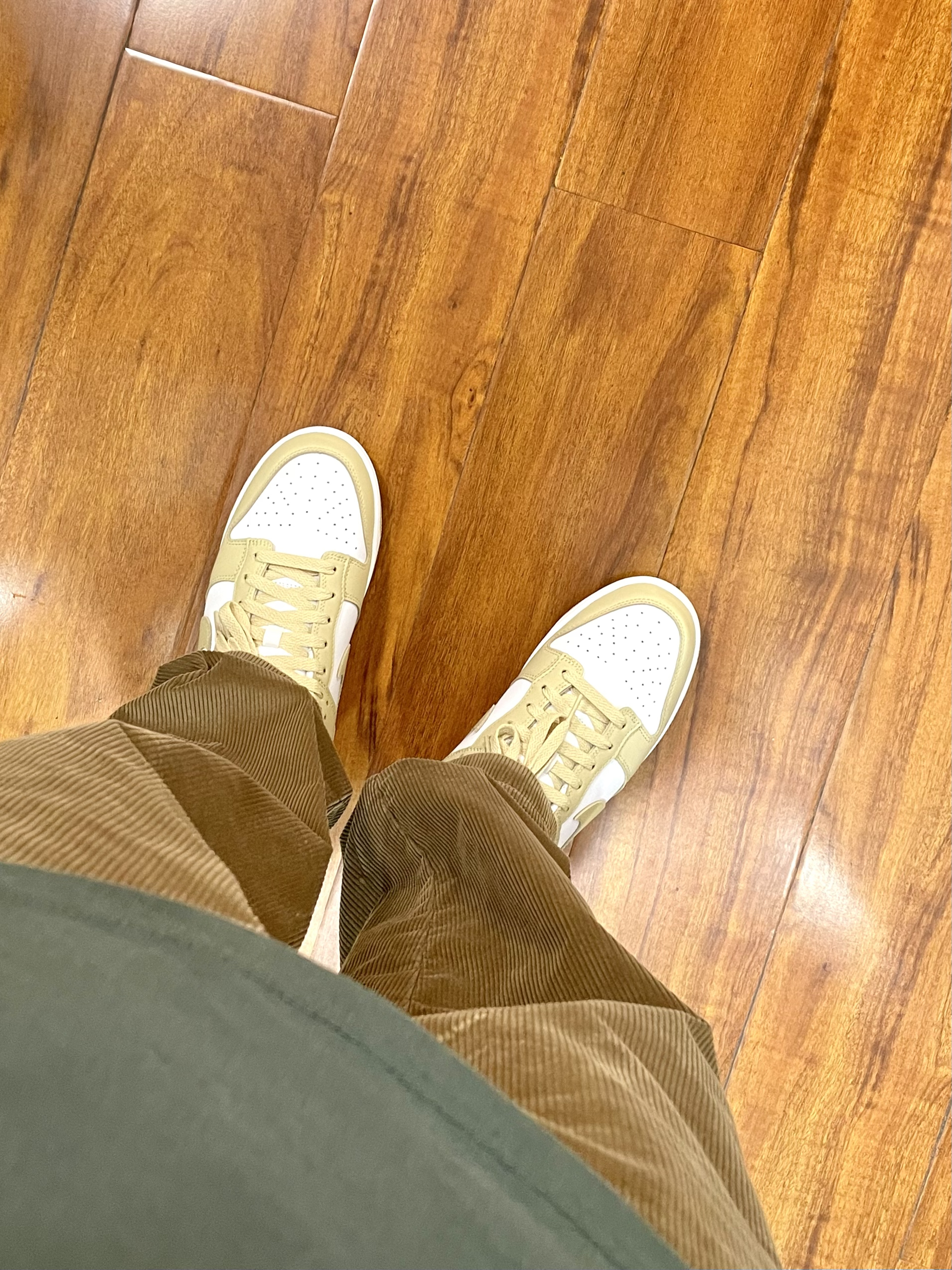 本篇笔记关联了Nike Dunk 板鞋 经典复古百搭 米色/白色、NOTHOMME 复古字母图案针织圆领套头短袖T恤 男女同款 23T033 灰绿、UNIQLO 灯芯绒松紧九分直筒休闲长裤 451320 驼等商品,为用户提供真实的使用体验和购买参考。