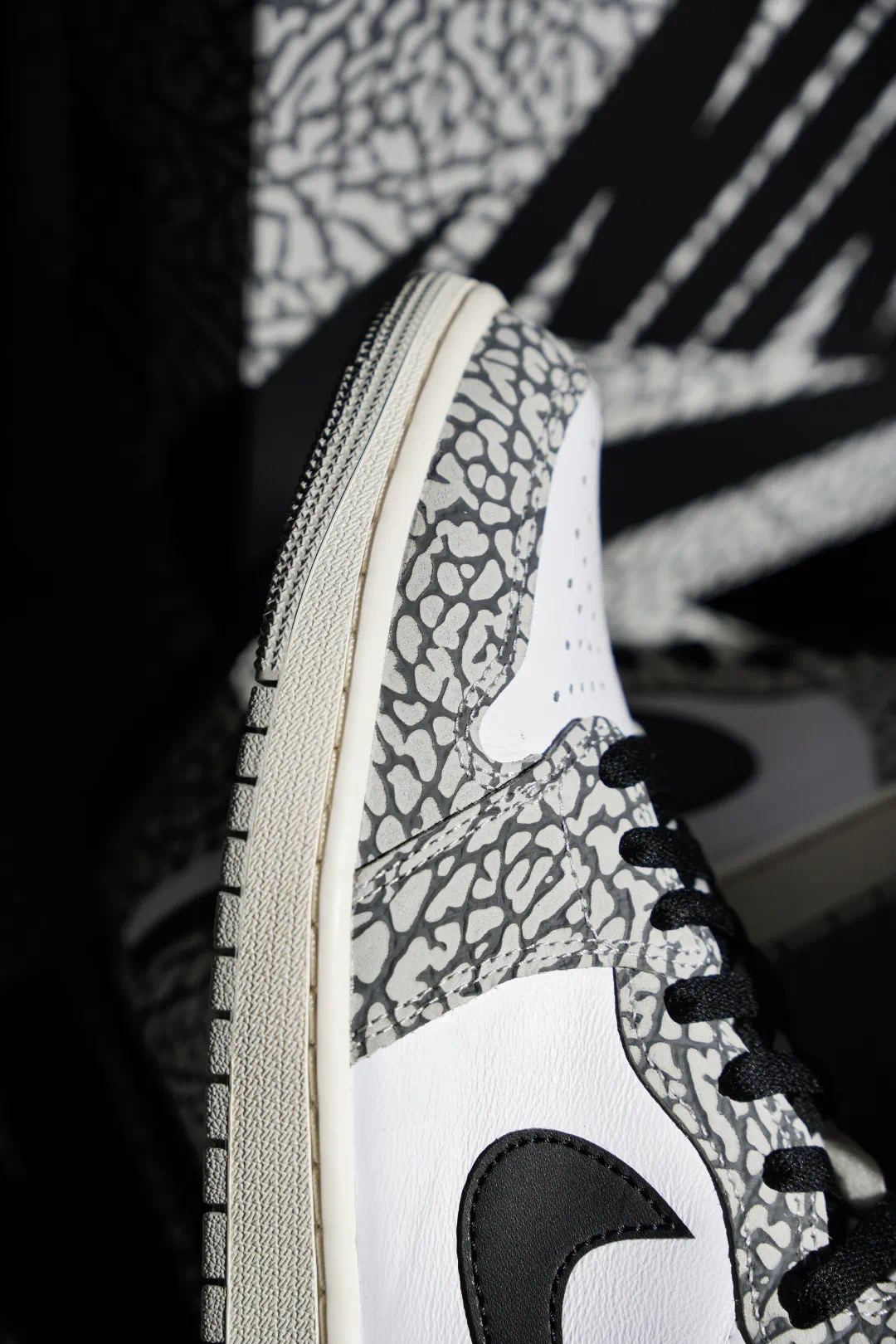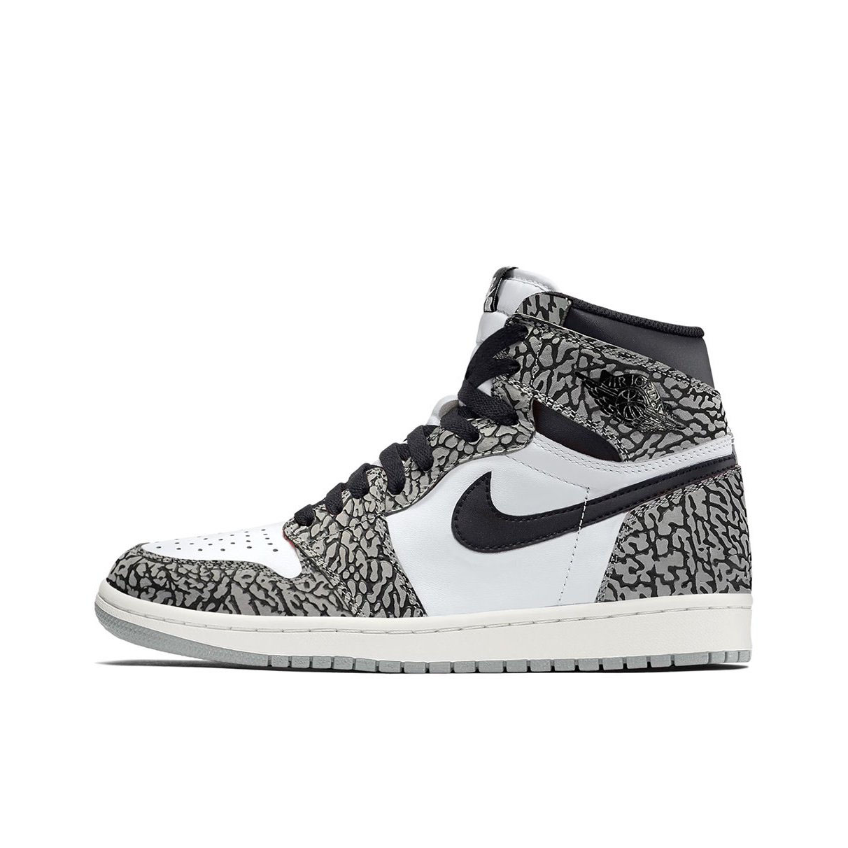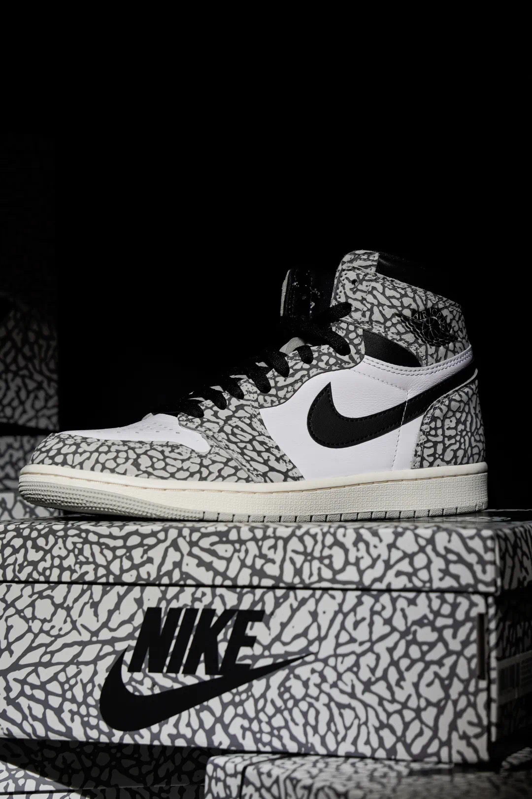 这款 Air Jordan 1 Retro High OG White Cement 使用了白色、灰色以及黑色进行呈现,带来十足经典感受。同时,这款鞋的鞋面上还加入了大面积爆裂纹元素,Air Jordan 系列对于爆裂纹如此大面积使用,还要追溯到 Air Jordan 3Lab5,而这双鞋在当时也受到了球鞋爱好者强烈的追捧。就连这款鞋的鞋盒也和最近随鞋款配色而改变的 Air Jordan 1 鞋盒...