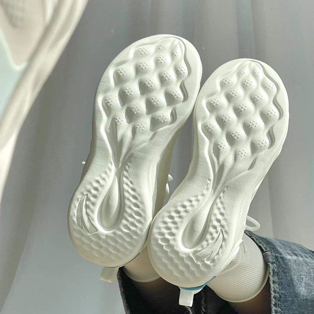 颜值:踏子的白紫色就从来没让我失望过,很合适女孩子,青春淡雅的配色很讨人喜欢。 性能:亮点就是鞋底的科技,性能如其名,非常软弹,很适合女孩子日常的通勤,跳绳和跑步。 性价比:二百出头的价位很香,颜值和性价比在这里,有喜欢的小伙伴可以冲哦!😎😎😎