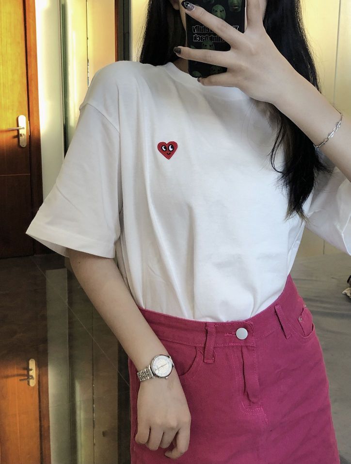最近这个爱心T恤真的心爆了!我也入手了一件。 衣服很厚实不会透,上身后版型也很好,宽松显瘦。 胸口前经典的桃心logo,简约又不失格调,满满的高级感。 还可以作为情侣装也超合适的。