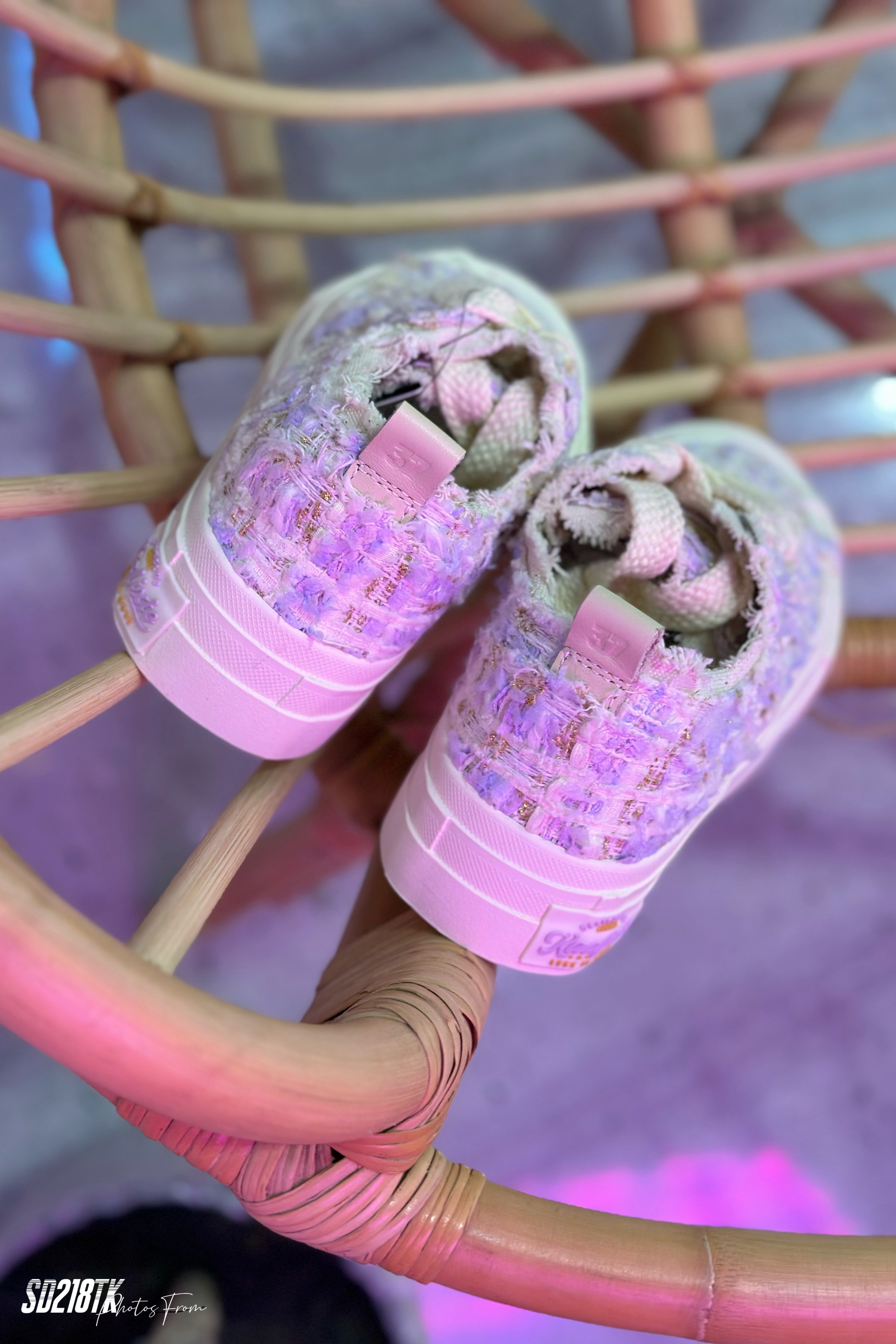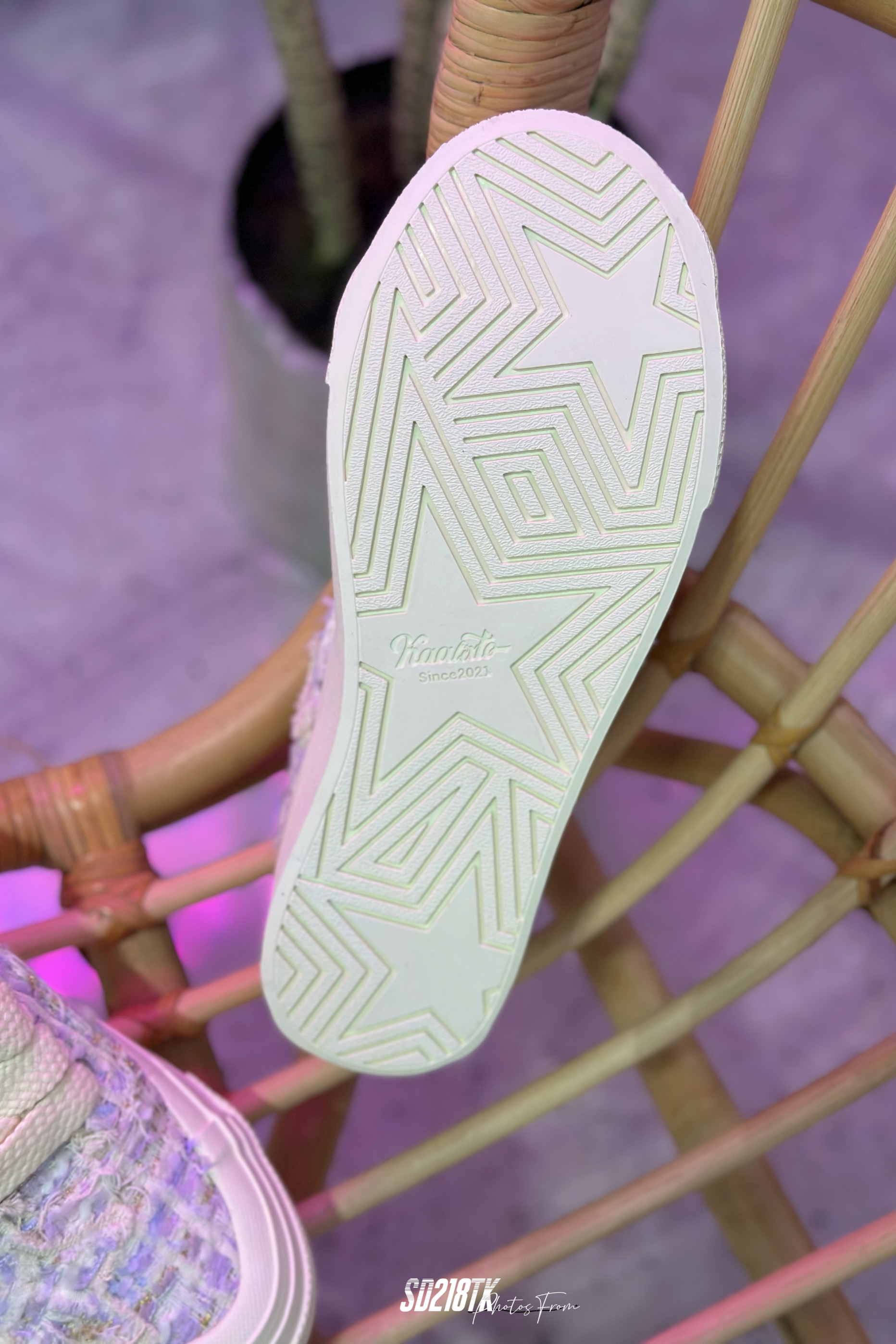 🎆球鞋设计 Kaalixto星星板鞋采用不同面料随意拼接的呈现方式,打破消费者原有对鞋子的刻板印象,让人耳目一新。 1️⃣鞋面特点:粉色星星元素小香风布布料设计做工细致,配合透气孔,舒适的穿着体验。 2️⃣侧身大底:采用小香风材质制作贴合鞋面,穿着感好,有隐形增高效果。 3️⃣元素展现:鞋体运用小香风和米色大底元素在鞋面相互呼应。 🎇尺码推荐 按日常穿着尺码选择,...