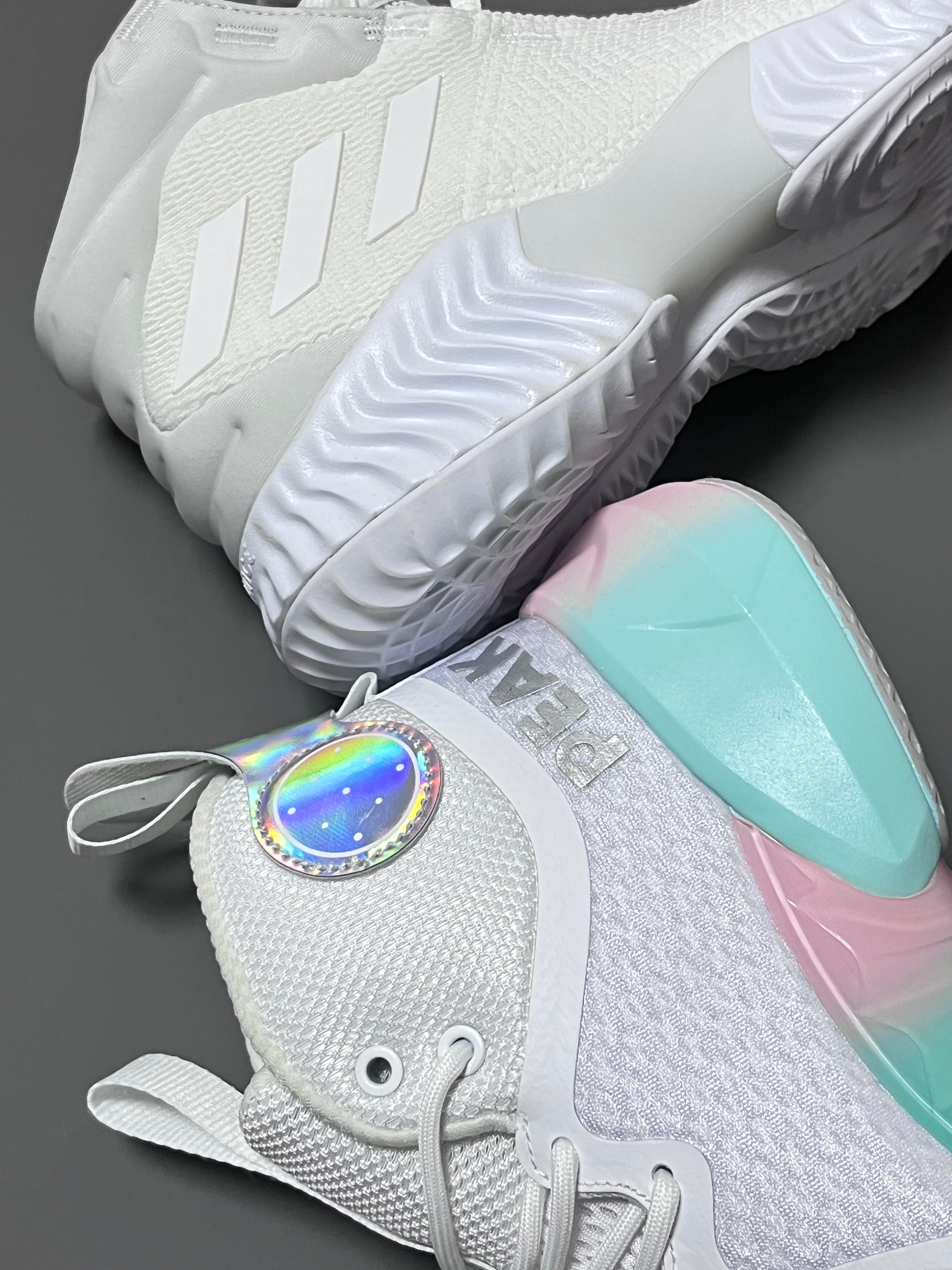 halo 阿迪来了,本期为大家带来两双百元左右的“学生党”实战篮球鞋,分别是这双匹克的骑兵“白冰淇淋”和这双adidas Pro bounce! 首先,我们来看看这双匹克的“冰淇淋”整双鞋配色的篮球鞋以白色为主色调!采用透气网面的设计!也不会闷热,上脚效果很好!而且鞋子包裹性也很好!编织鞋面搭配热熔压胶,侧向支撑也不错! 最后,全掌的态极魔弹后掌缓震极限很大,穿到 200斤以上都没有问题! 中足...