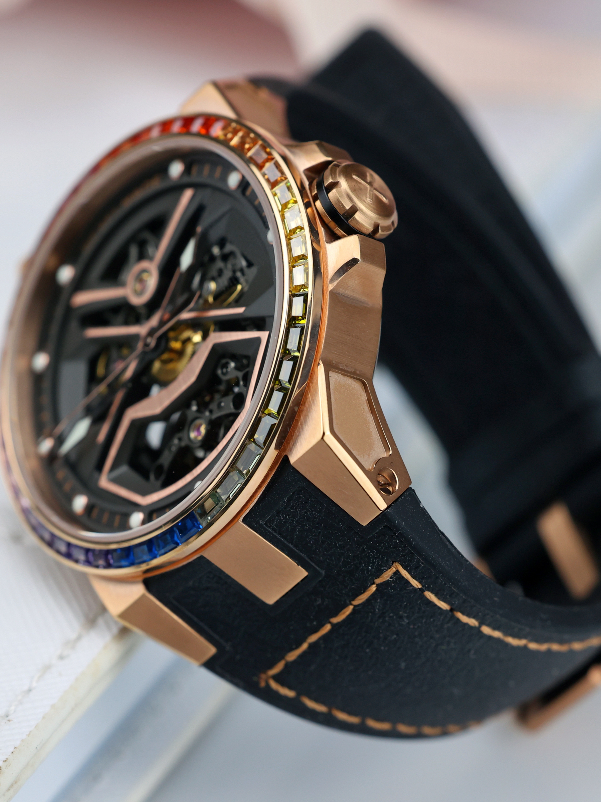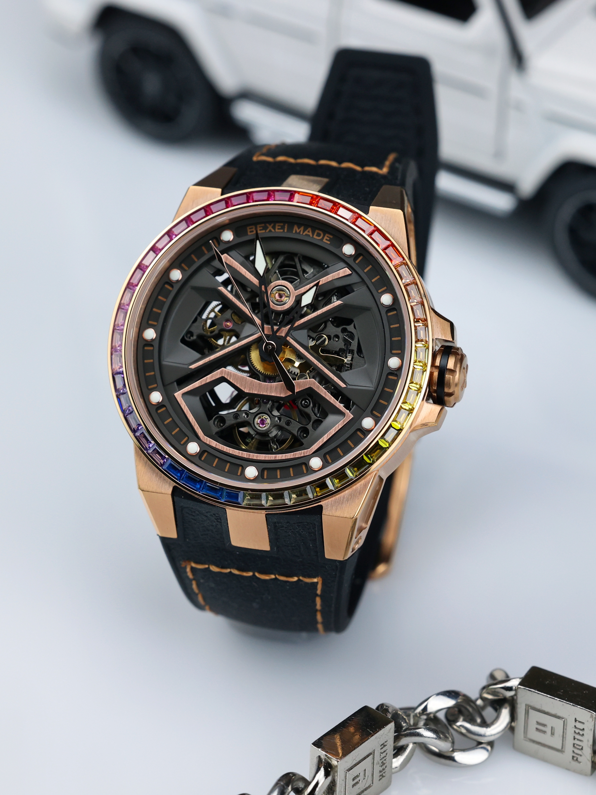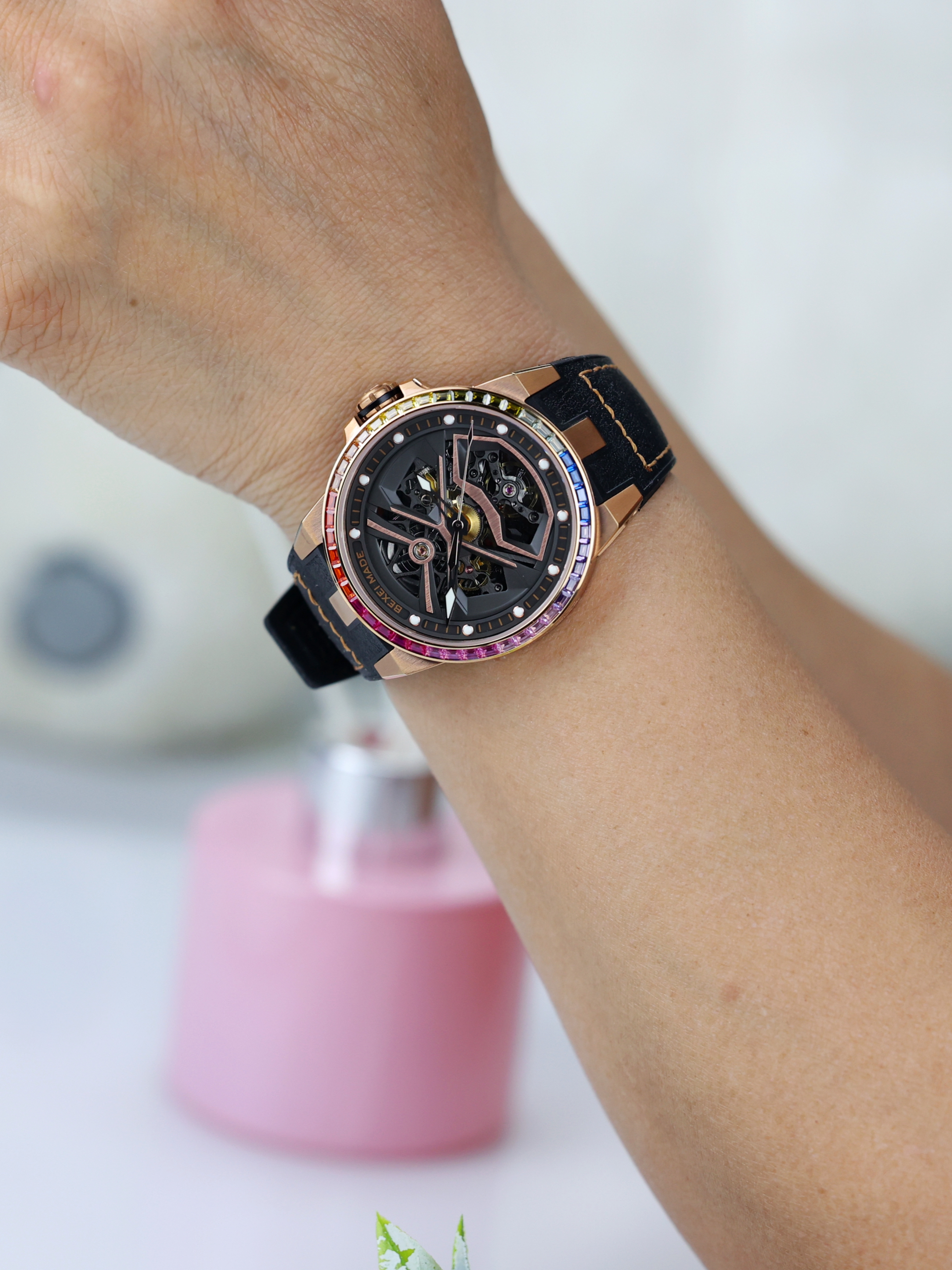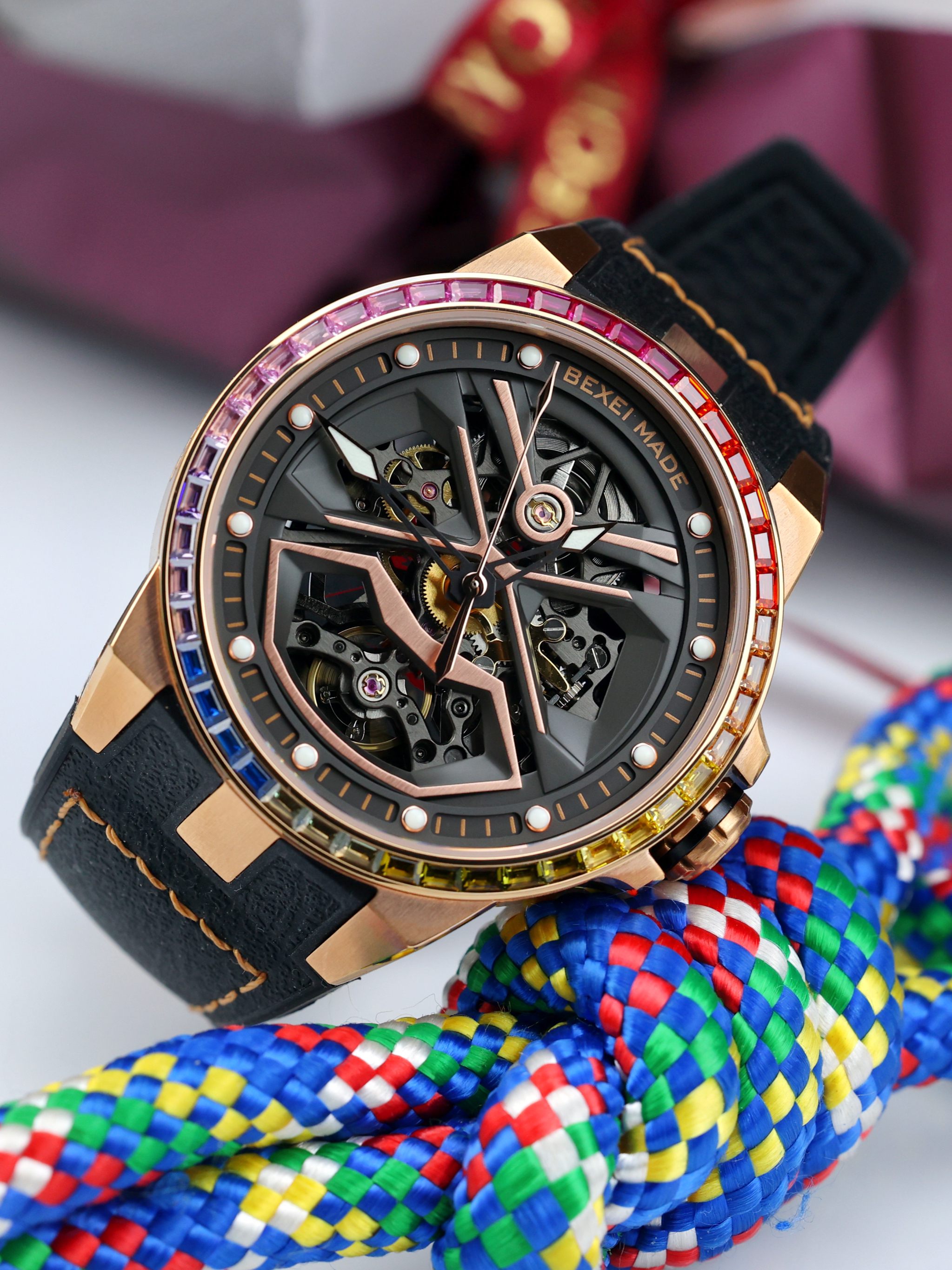 520到来之际,给大家分享一款 BEXEI 流浪地球联名的机械表,因为表圈带有布灵布灵的七彩宝石,因此又被称为“彩虹圈”~ 手表给我的感觉就是炫酷,并且属于男生女生均可驾驭的那种,比较适合休闲逛街穿搭。 手表双面镂空,可以清晰看到机械的运转,而且3D立体感还是蛮不错的,看着挺有视觉冲击。 我个人认为,这在520送礼倒是一个不错的参考~