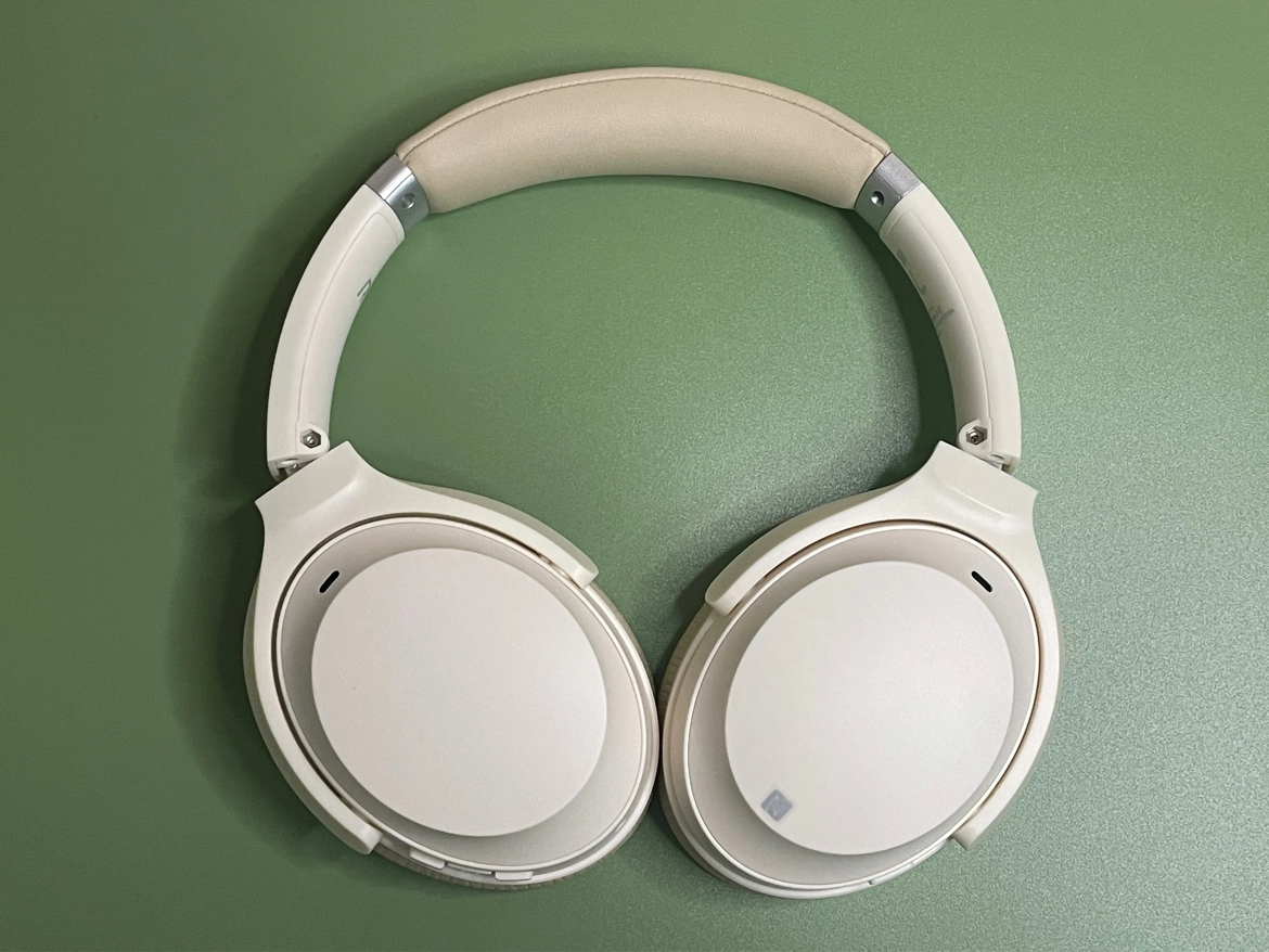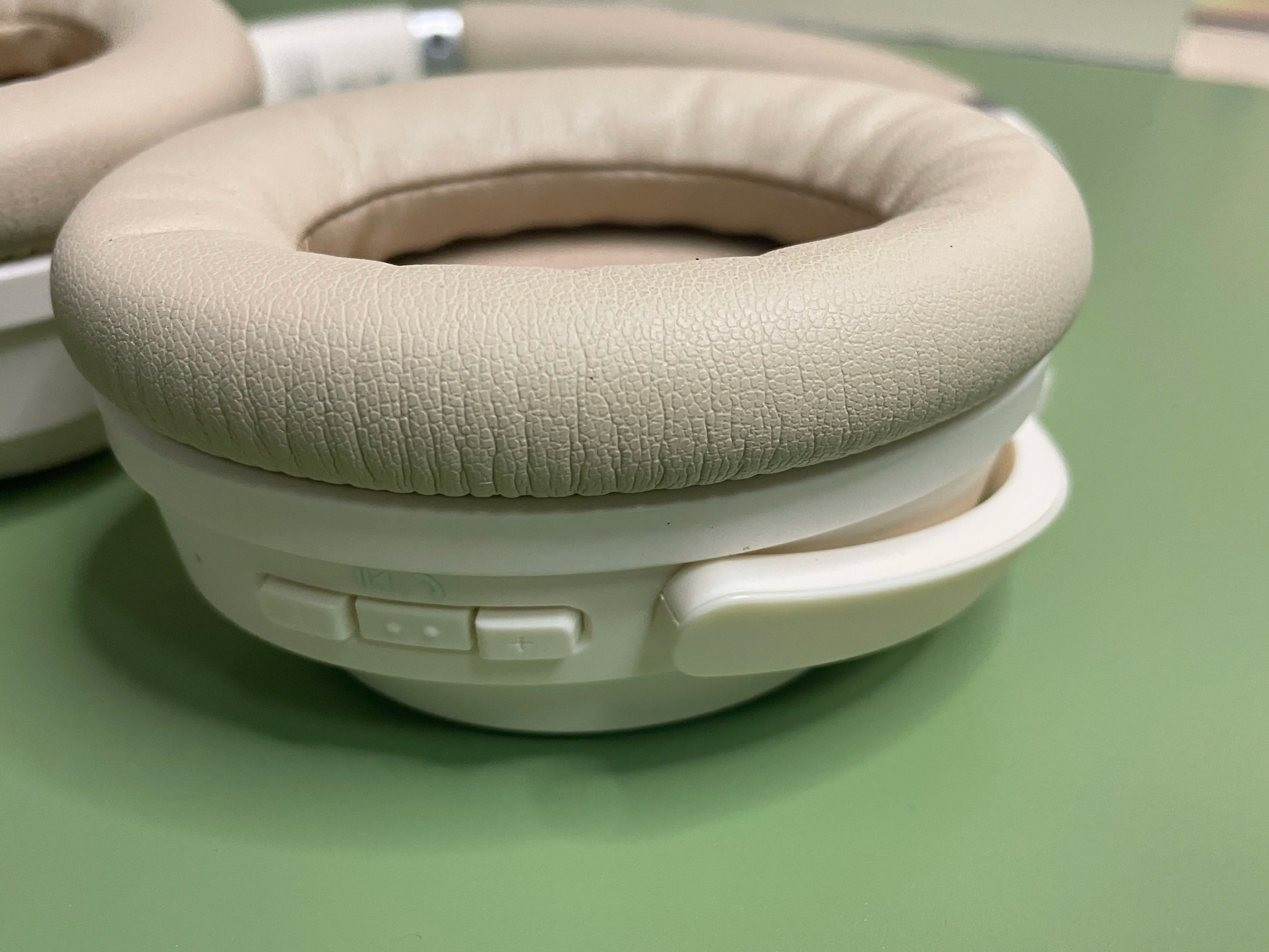 耳罩采用了优质蛋白皮耳罩,内部填充高弹性的记忆棉,佩戴起来很透气也比较软,长时间佩戴耳朵也不会闷汗,感觉有压力。头梁处同样采用了海绵包裹,左右可以进行伸缩调节,我的头算是比较小的那一类,所以不需要调太多。如果日常出行不方便戴在身上想把它装进包里,可以对耳机进行向内的180度弯折,耳机弯折贴近头梁,会节省很多收纳空间。