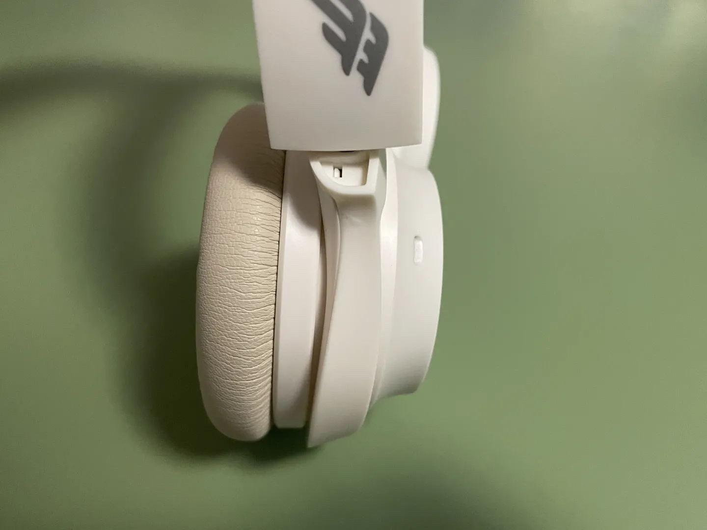耳机整体配色采用比较温柔干净的杏色和白色,非常适合搭配浅色系的衣服,外观简洁时尚。在头梁两侧,分别印有汉字羽的字样,这也是西伯利亚羽系列的logo,很像一对伸展而开的翅膀,内侧面l和r两个字母则代表了耳机方向,平时可以看开机键来判断方向佩戴