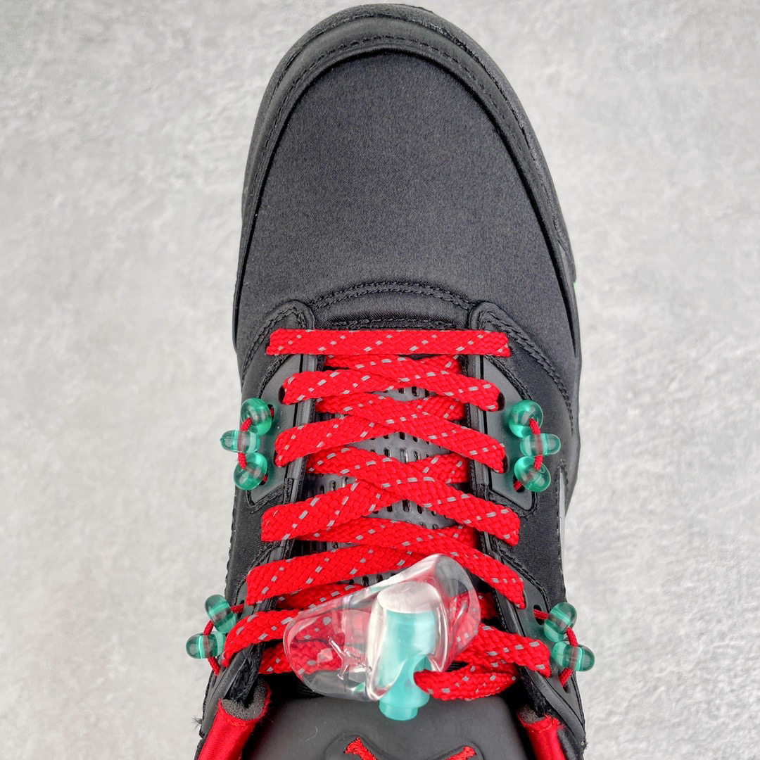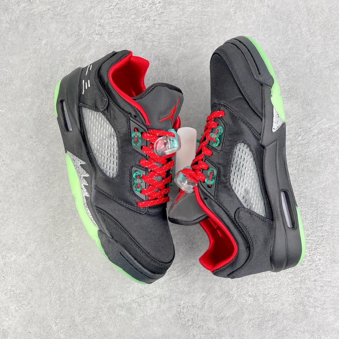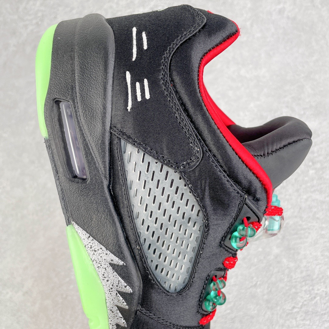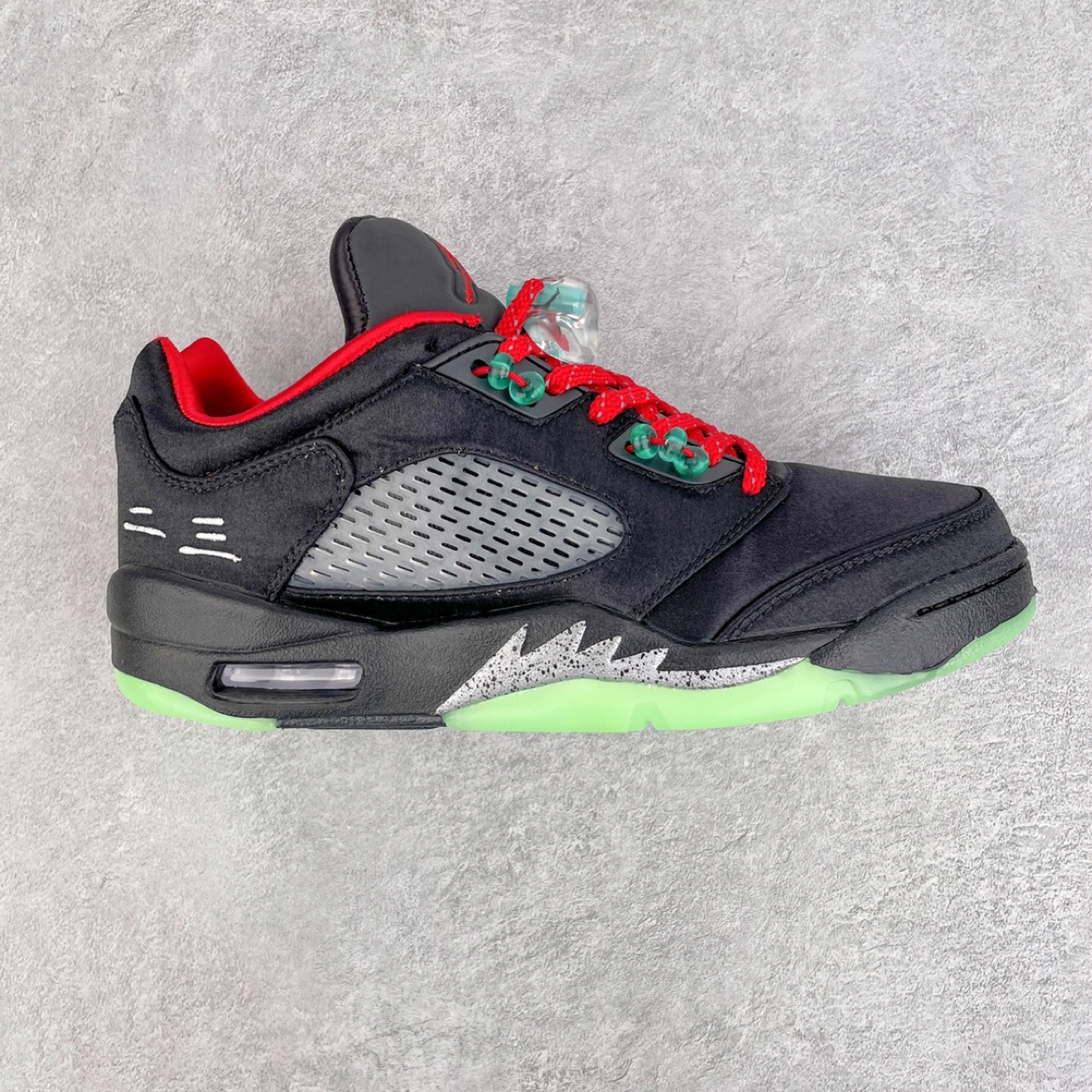 Clot x Air Jordan AJ5 Retro Low"CNY"中国年黑红丝绸翡翠夜光撕撕乐 DM4640-036 整双鞋采用黑红为主调 搭配绿色的鞋带扣、鞋侧透气网等细节 突出了 CLOT 的中国玉主题 鞋面类似丝绸的质感 也是 CLOT 标志性的设计 鞋身后侧刺绣的汉字「二三」字样 以及特殊的鞋盒鞋垫 无不体现着联名的身份