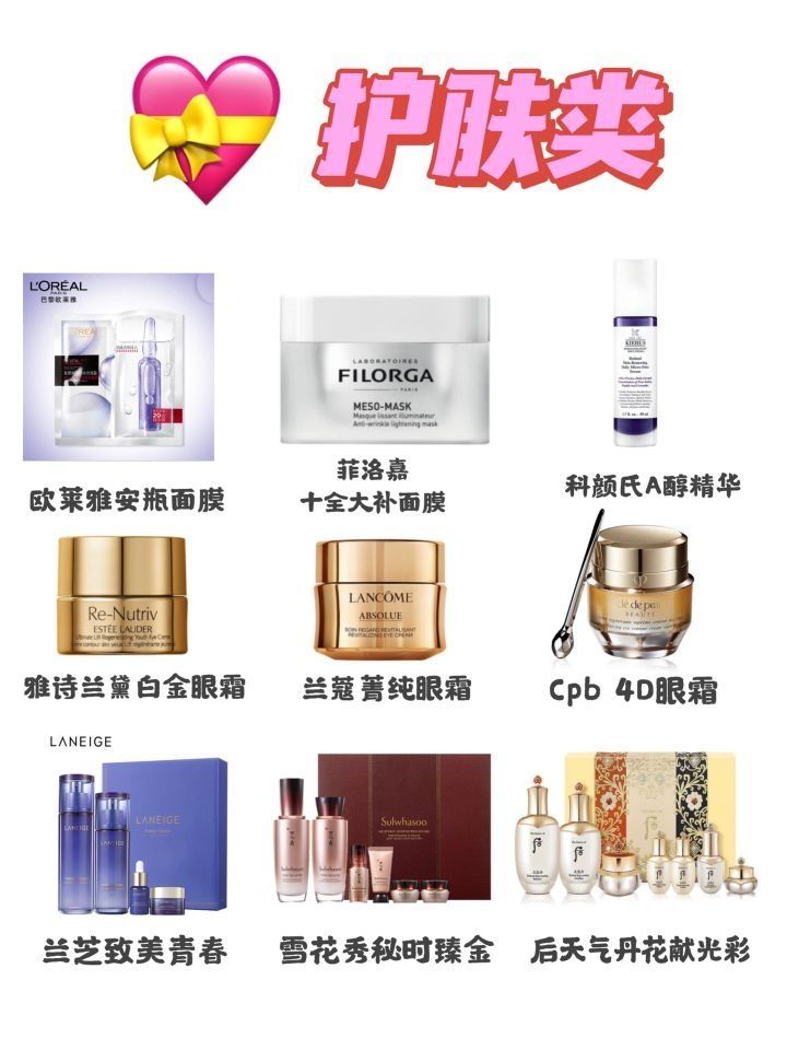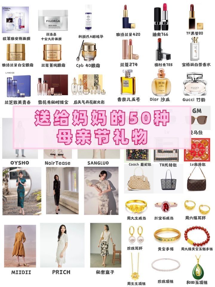 母亲节礼物清单|送给妈妈的50种礼物💕 《请回答1988》里说:“听说神不能无处不在,所以创造了妈妈”!不说了,为母爱疯狂打call!👏💋 用心挑选了各类礼物清单,各个价位的都有,让我们一起开启花式宠妈模式吧!‼️ 1️⃣护肤类🧡 面膜:欧莱雅安瓶面膜/菲洛嘉十全大补面膜/科颜氏A醇精华 眼霜:雅诗兰黛白金眼霜/兰蔻菁纯眼霜/CPB4D眼霜 护肤套盒:兰芝致美青春/雪花秀秘时臻金/后天气丹...