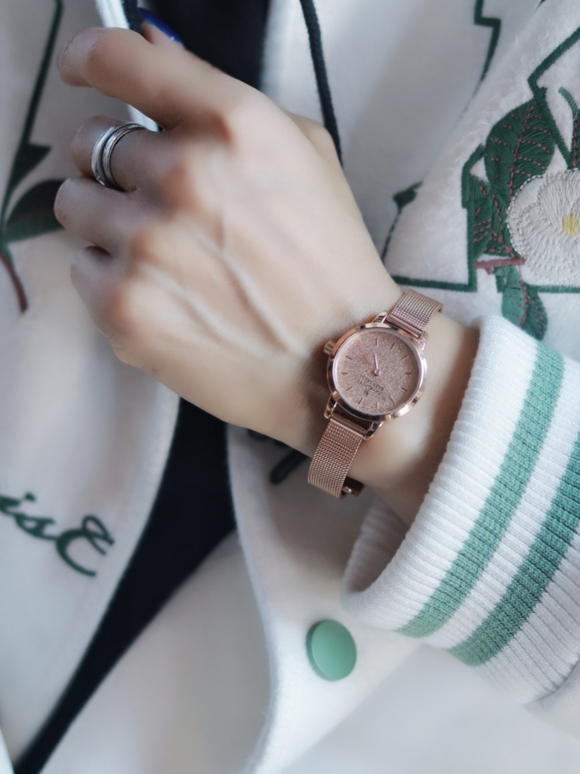 嗨~这里是【😷鹿】为防护代言😎 🌟 \【163 / 48 KG】 开学季,有仪式感的的装备莫过于🎒和⚾️服了 学院派的穿搭离不开棒球服,今天就给家人们分享这件清爽不油腻的⚾️服 👔 \ rickyisclown 🕐 \ 夏洛特 👟 \ 魔鬼一号 极简的白色棒球服,用浅绿色刺绣做点缀,茶花的设计,上身挺有女人味的,让中性风格的棒球服多了一些不一样的味道; 夏洛特满天星玫瑰金颜色的腕表,搭配上今天...