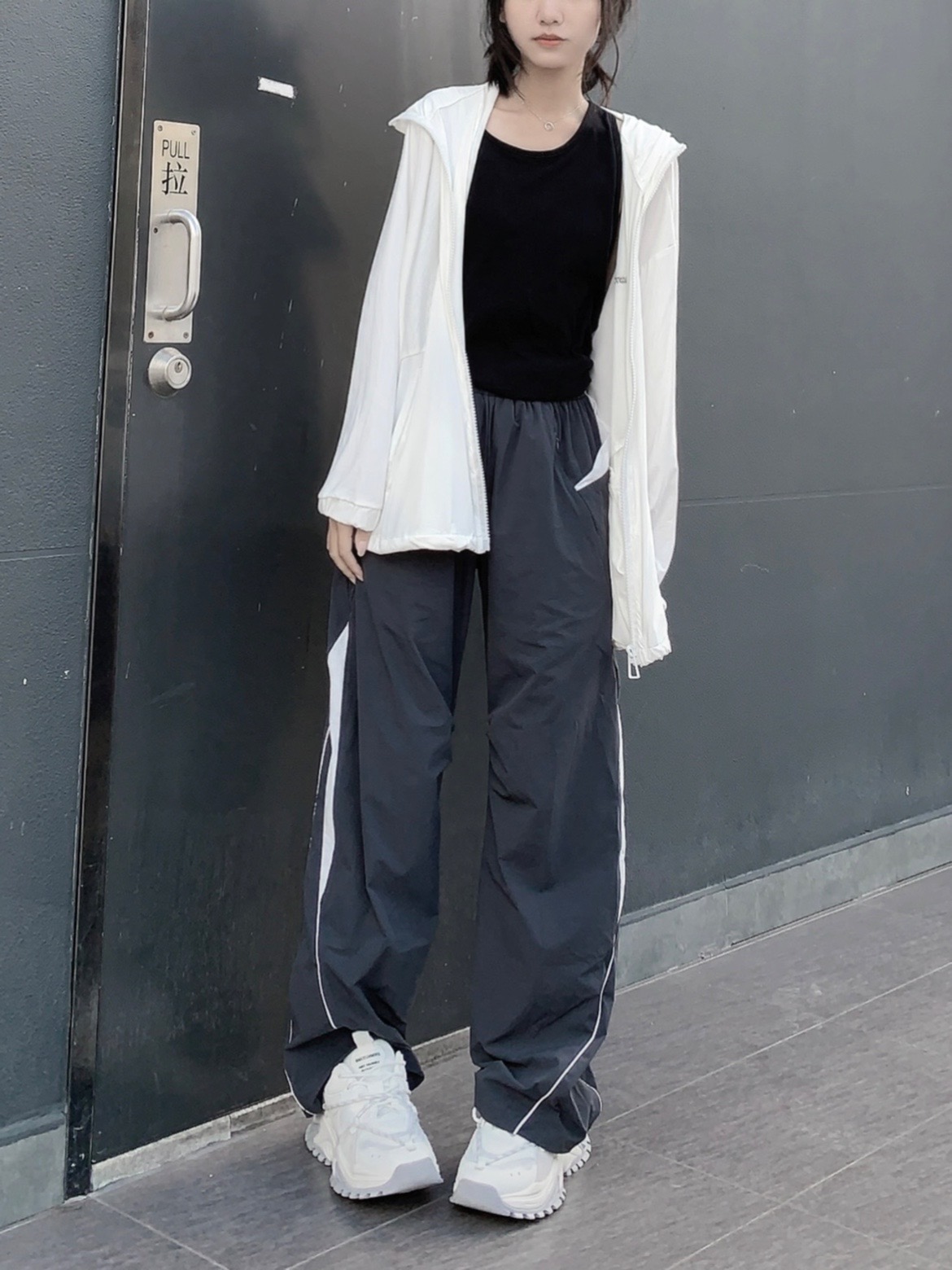 防晒衣也能穿出高级感! 休闲酷酷风女孩~ 同色系老爹鞋不能少 #用穿搭开启夏天 #防晒分享防嗮